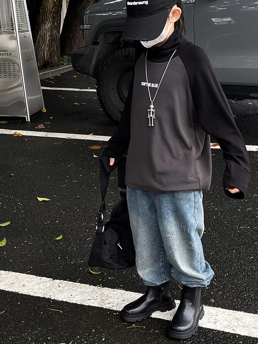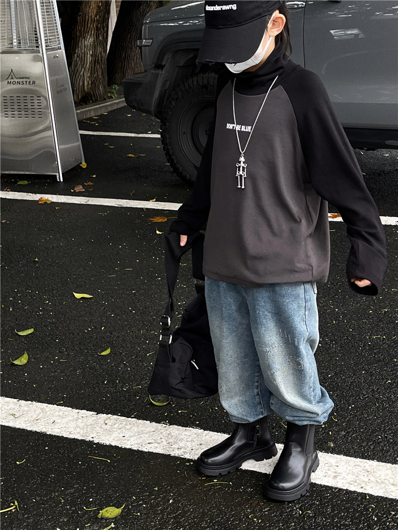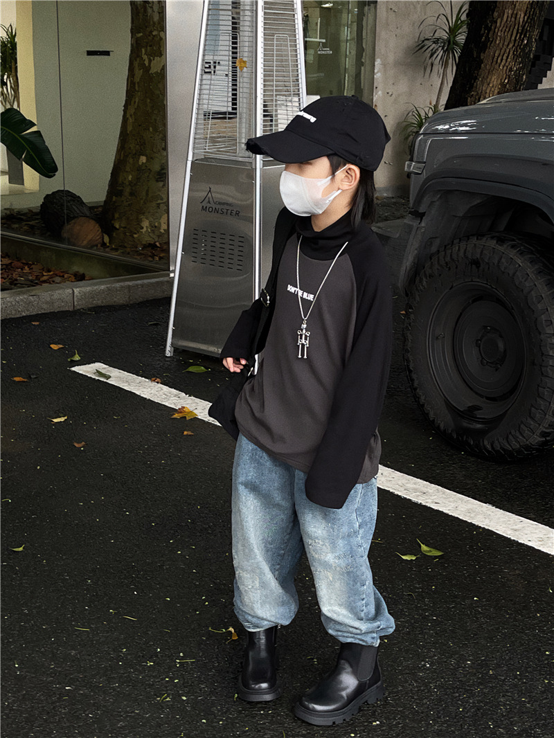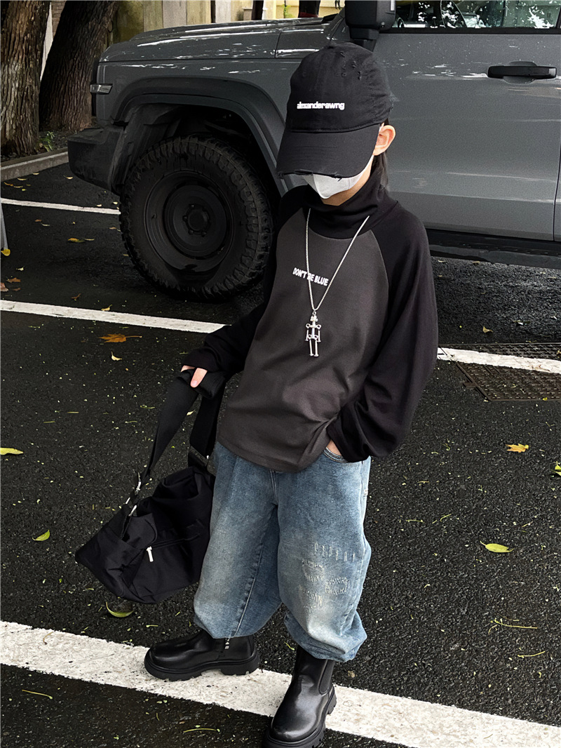 Baoduo 아동복 남아 가을과 겨울 양털 베이스 셔츠 새로운 어린이 겨울 한국 스타일 하이 칼라 긴 소매 내부 티셔츠 유행스토어 가기