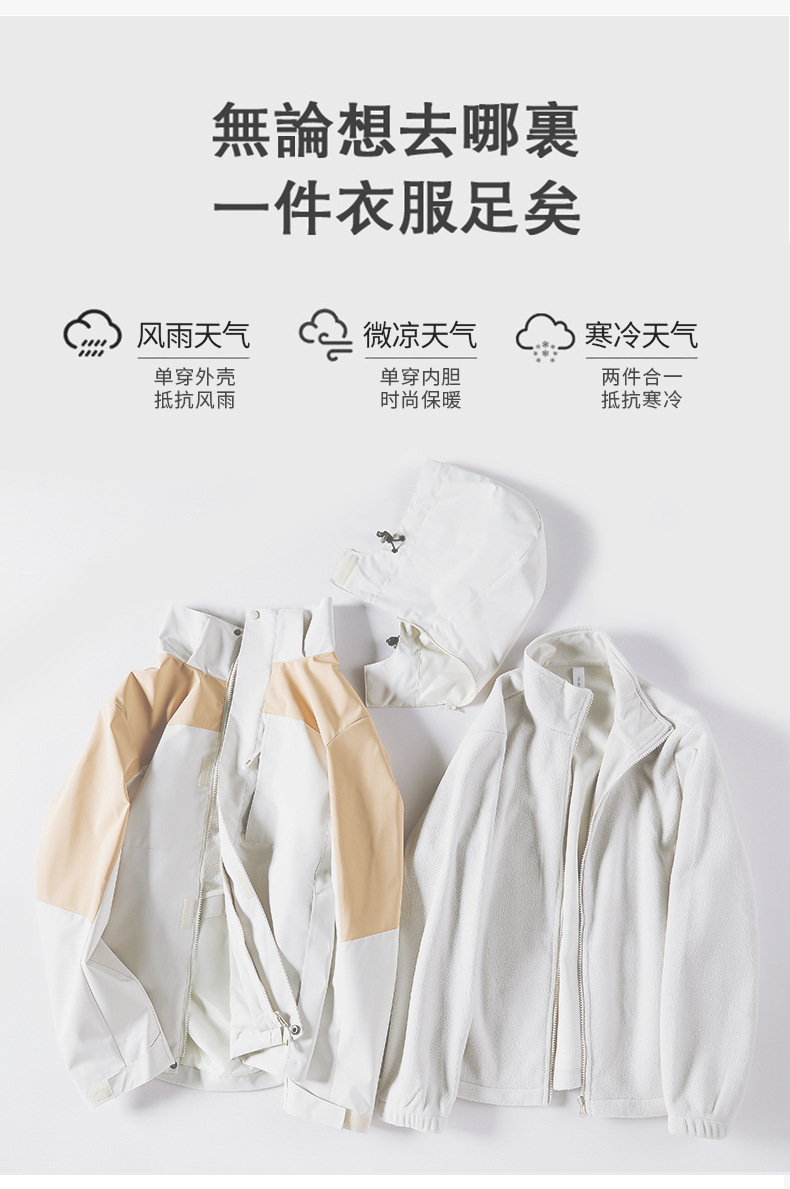 Diyu Shenlong 충전 옷 3-in-1 분리 야외 1990 노스 페이스 같은 후드 재킷 남성과 여성 등산 세트