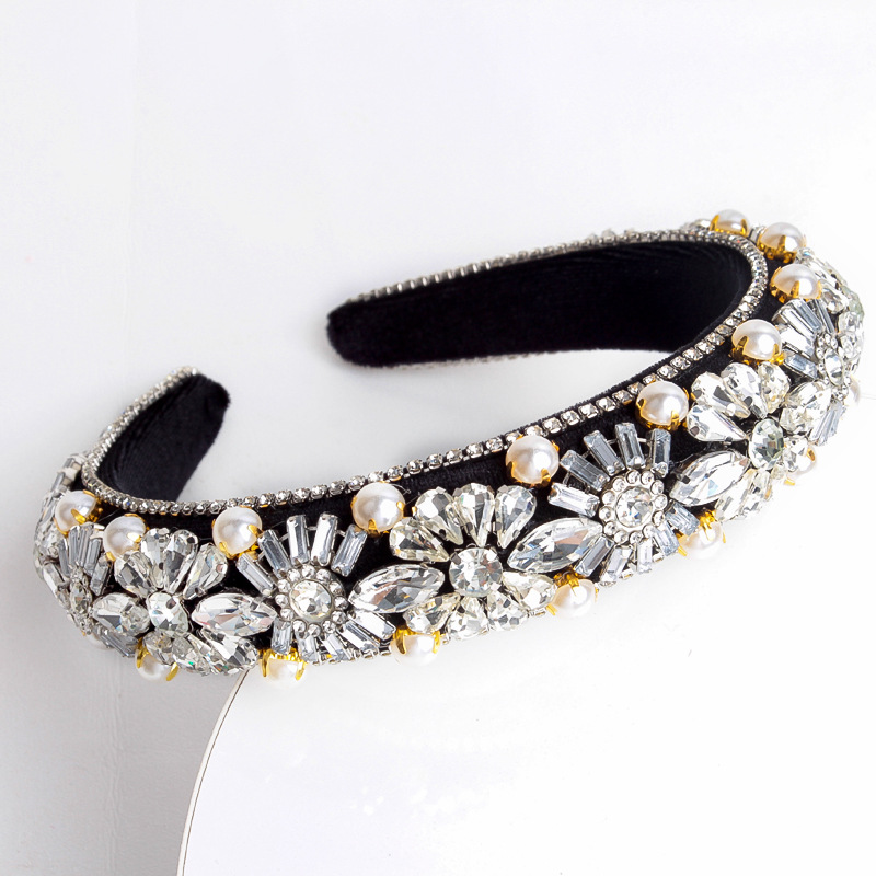 새로운 풀 다이아몬드 머리띠 바로크 빈티지 라인 석 모자 수제 머리띠스토어 가기