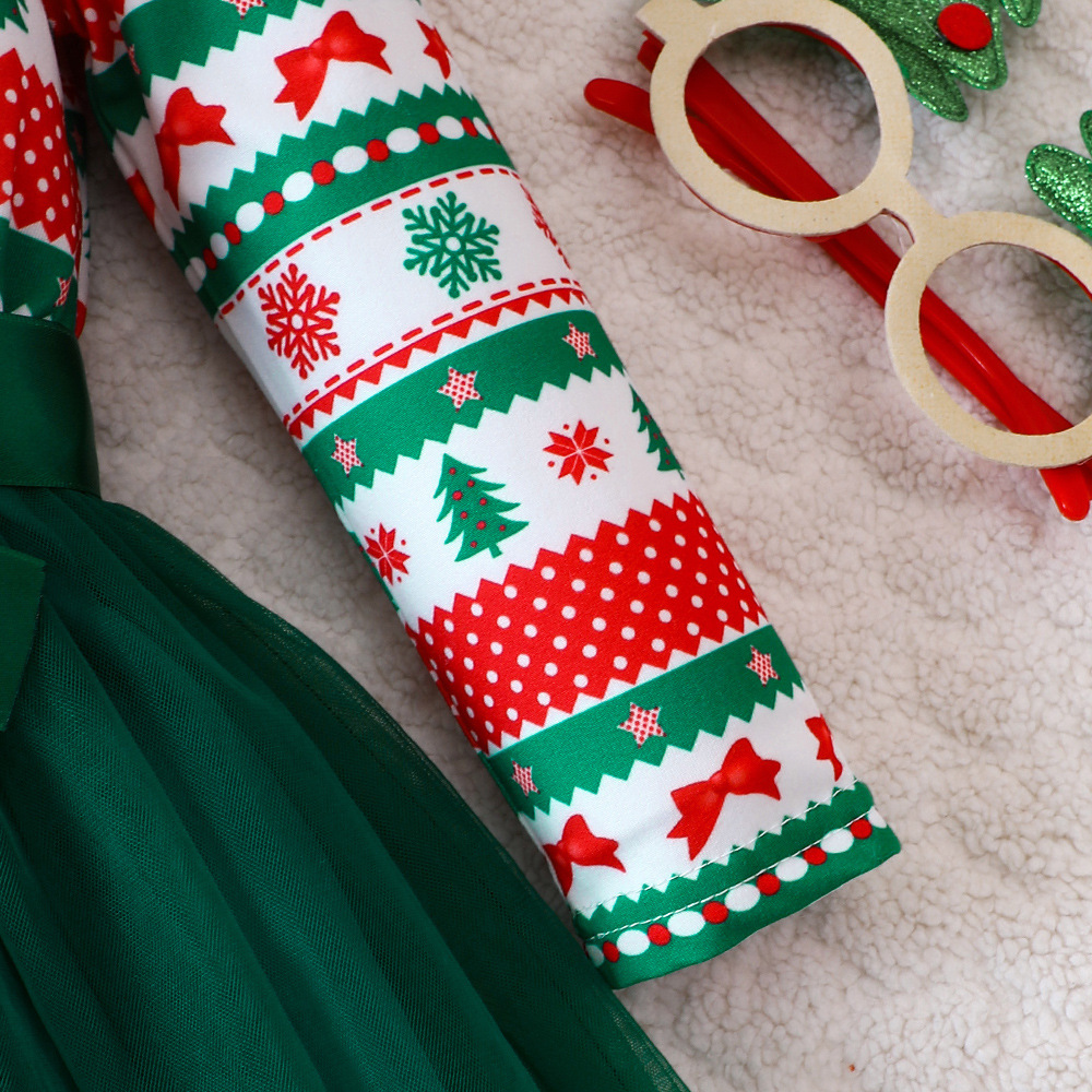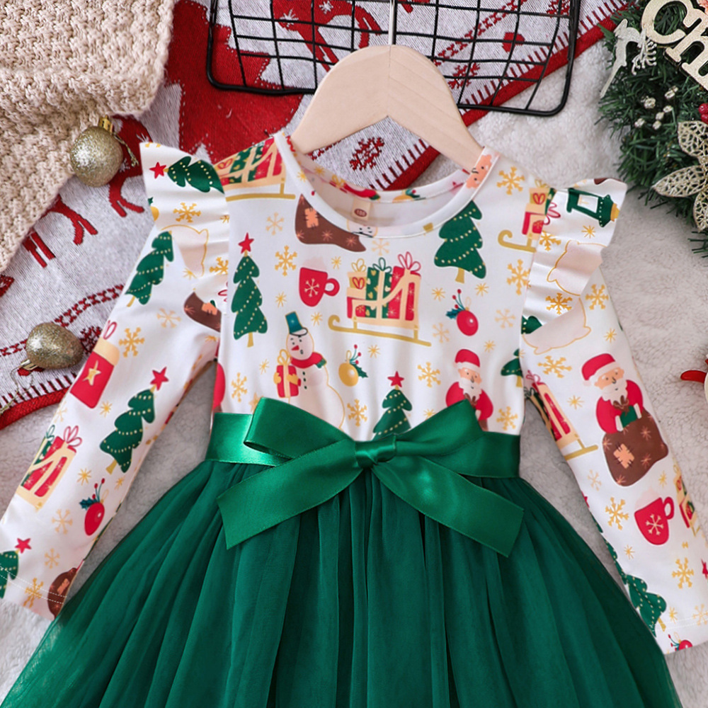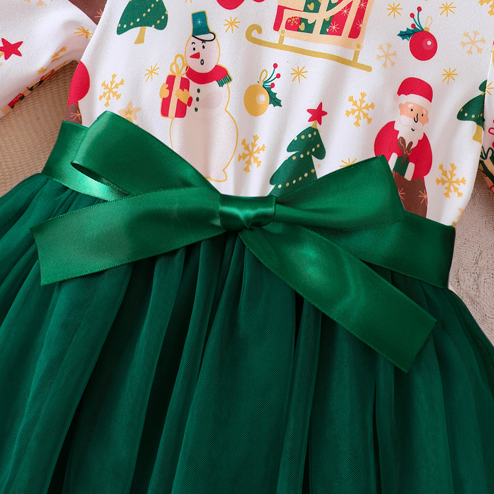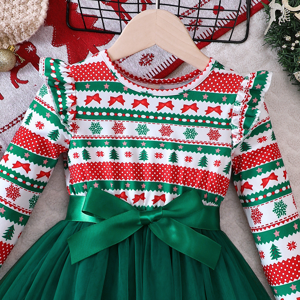 EW 외국 무역 아동복 소녀용 신상품 가을 겨울 크리스마스 망사 긴팔 원피스 Q1582-A