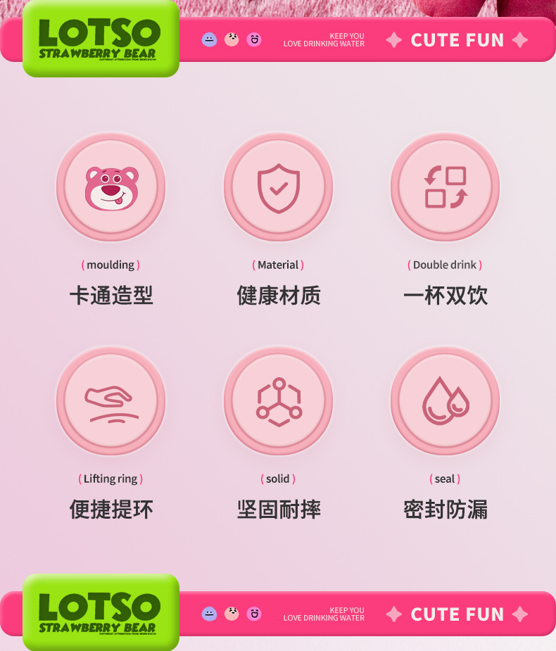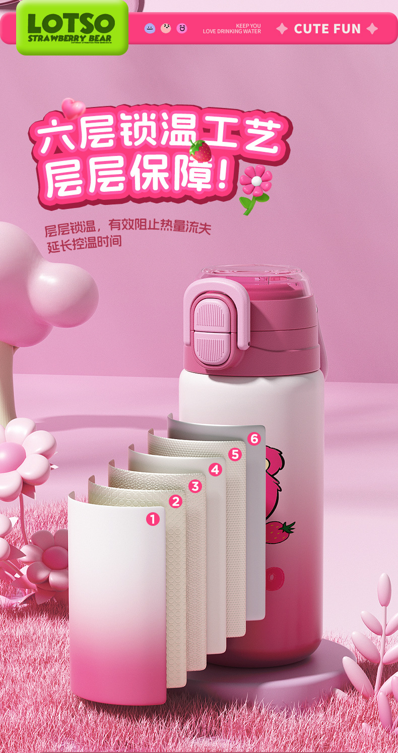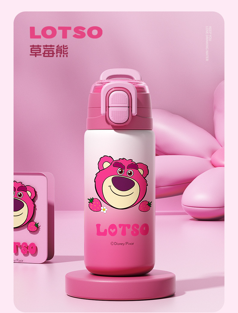 딸기곰 정품 인증 어린이 보온병, 멋진 디자인의 남녀 공용 듀얼컵, 귀여운 학생용 빨대 물병