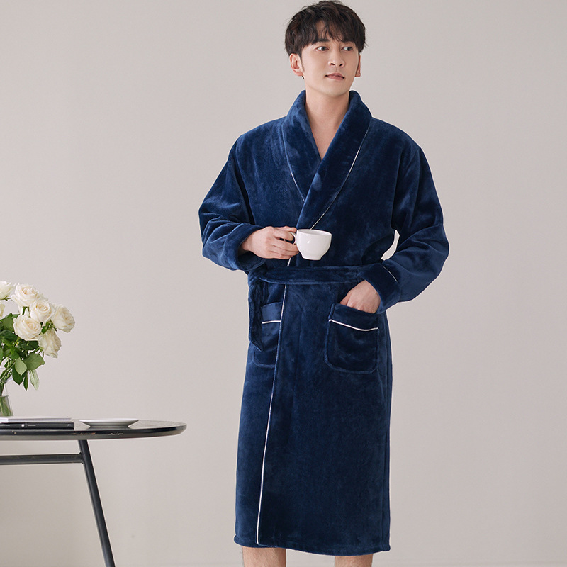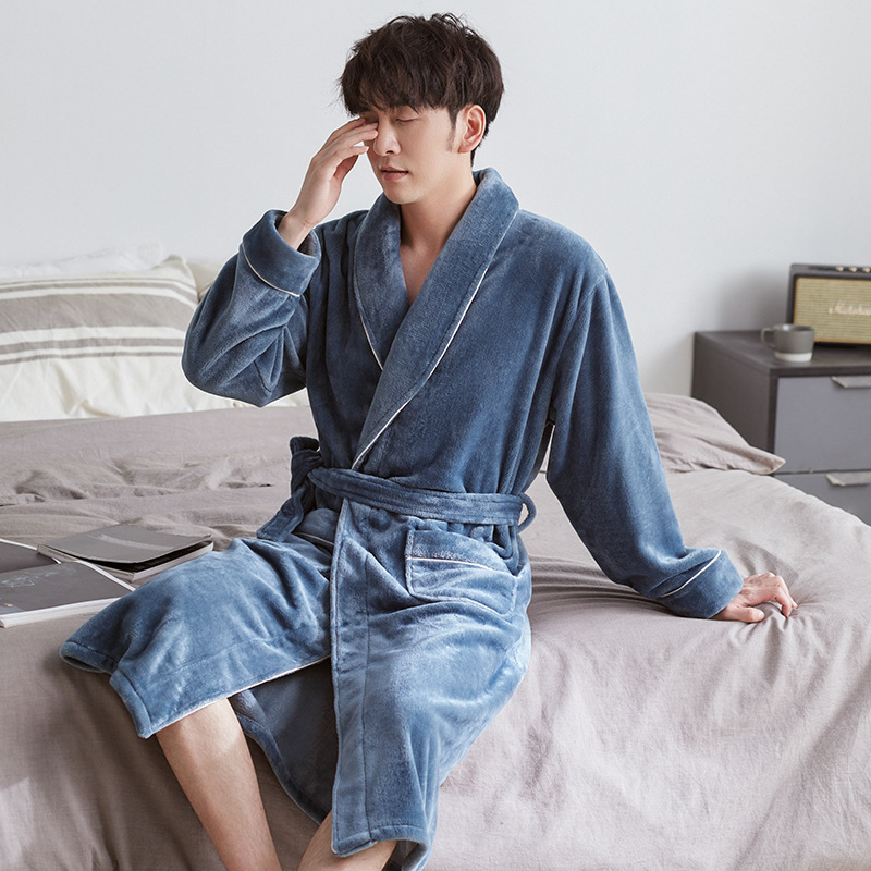 남자의 잠옷 겨울 산호 벨벳 따뜻한 두꺼운 긴 잠옷 가을과 겨울 플란넬 초대형 목욕 가운스토어 가기