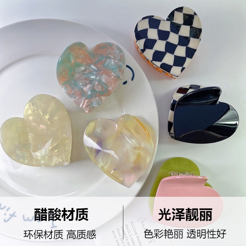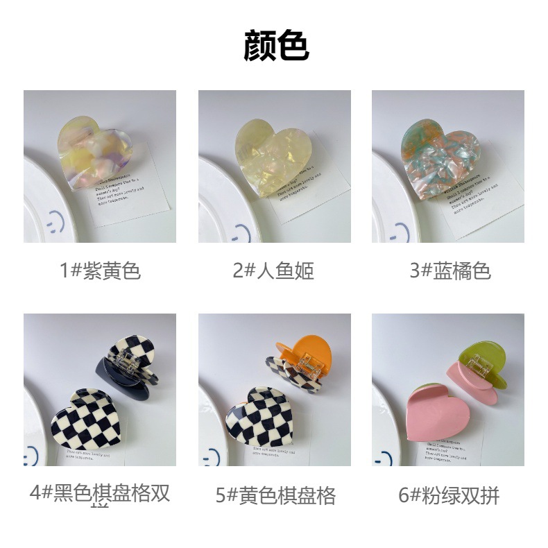 새로운 더블 스펠 러브 그랩 클립 틈새 디자인 체스 판 아세트산 머리핀 고급 감각 헤어 샤크 클립 여성용 헤어 액세서리스토어 가기