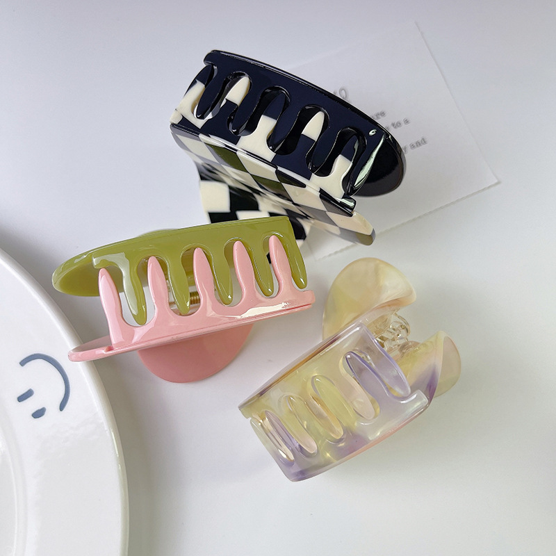 새로운 더블 스펠 러브 그랩 클립 틈새 디자인 체스 판 아세트산 머리핀 고급 감각 헤어 샤크 클립 여성용 헤어 액세서리