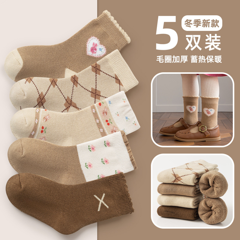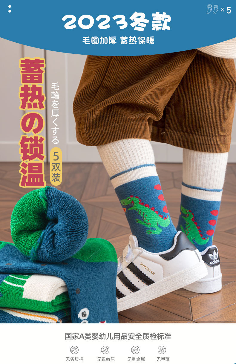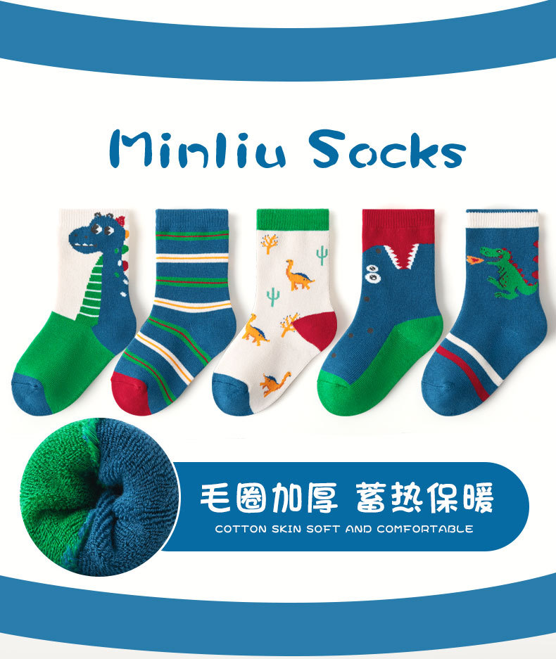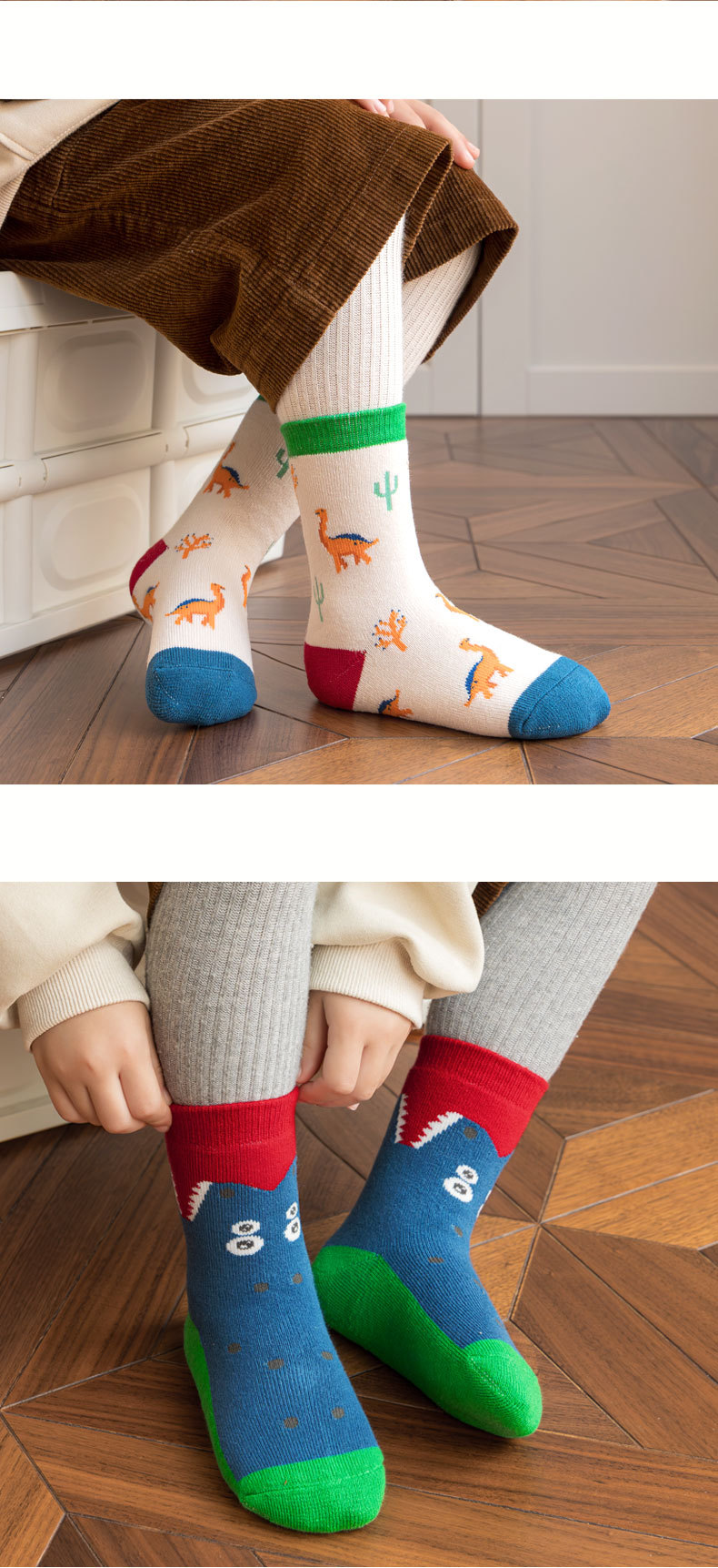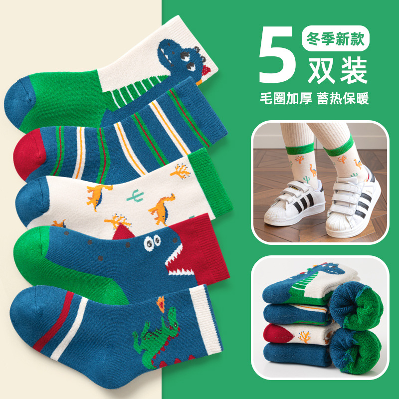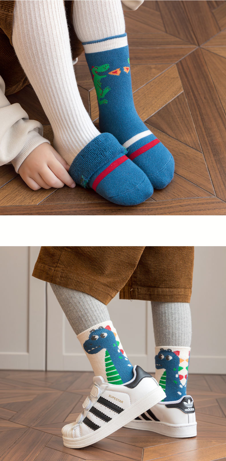 두리안 겨울 패딩 테리 수건 양말 도매 귀여운 만화 공룡 따뜻한 아기 양말 큰 어린이 면화 양말스토어 가기