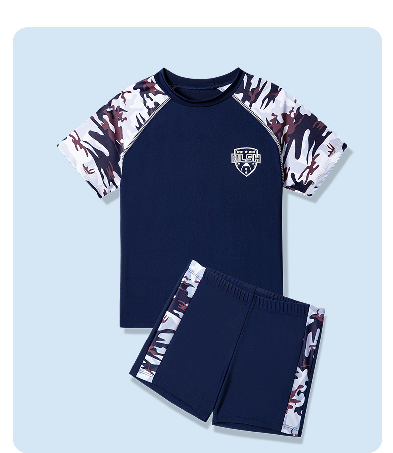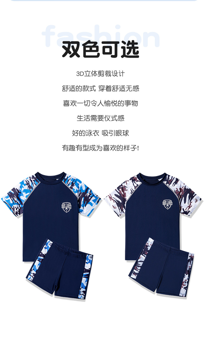 소년 수영복 학생 수영 훈련 세트 수영복 신선한 패션 위장 분할 수영복 온천 수영복 트렁크