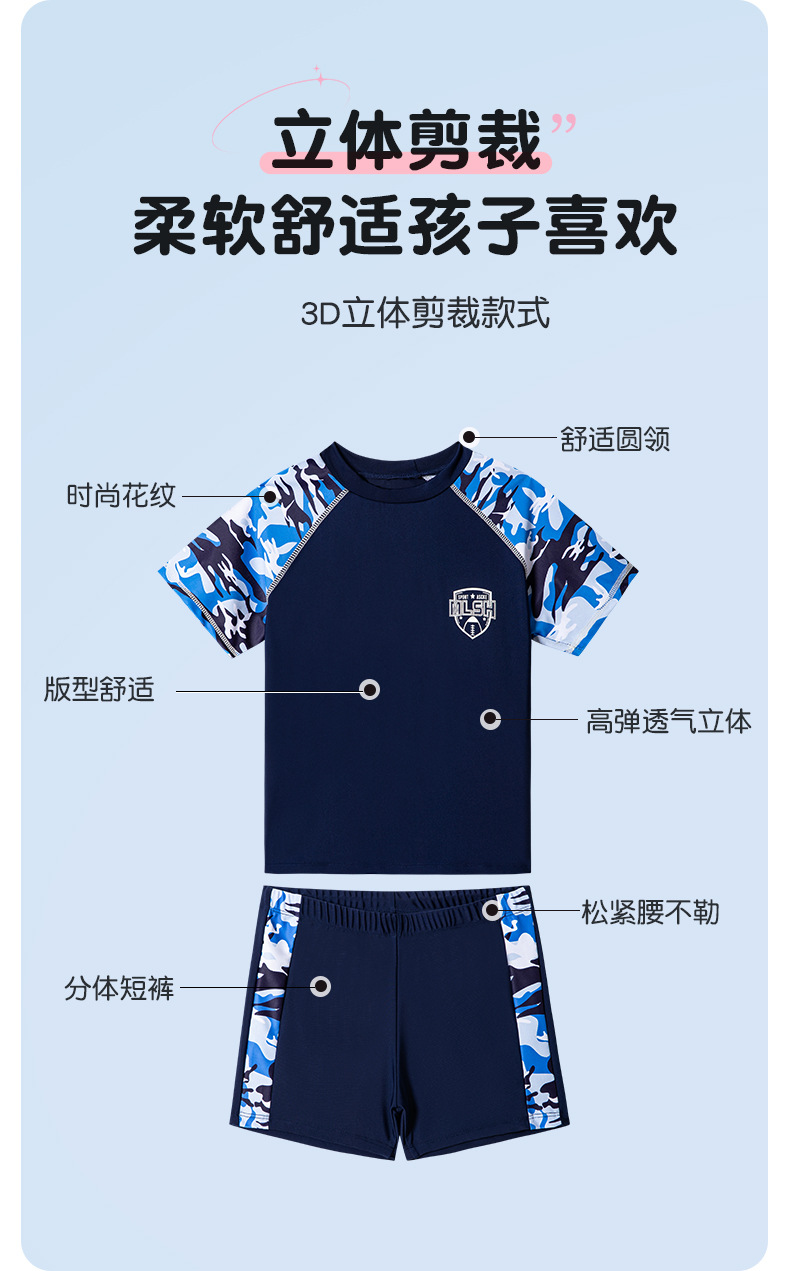 소년 수영복 학생 수영 훈련 세트 수영복 신선한 패션 위장 분할 수영복 온천 수영복 트렁크스토어 가기