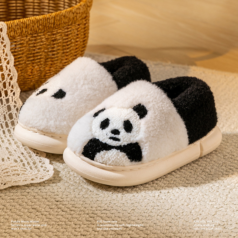 어린이 면화 신발 소년 소녀 어린이 가정 실내 따뜻한 기모 신발 겨울 만화 팬더 면 슬리퍼