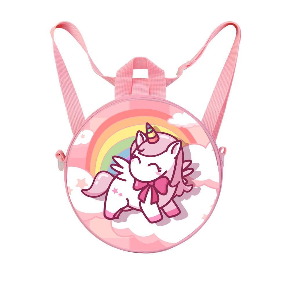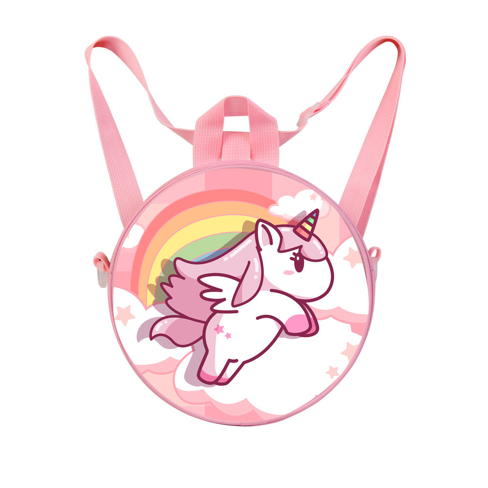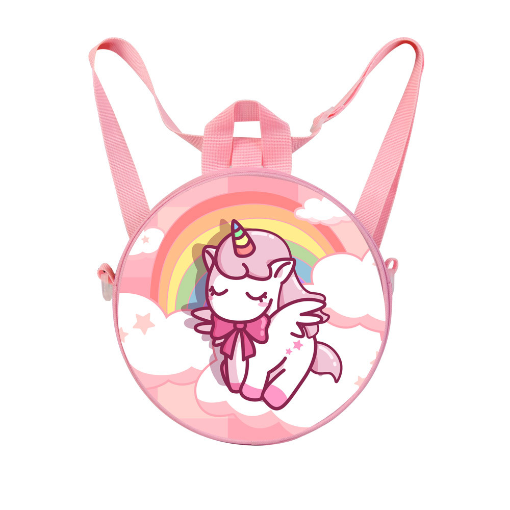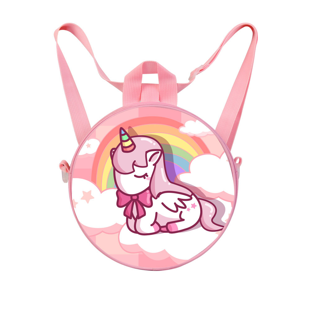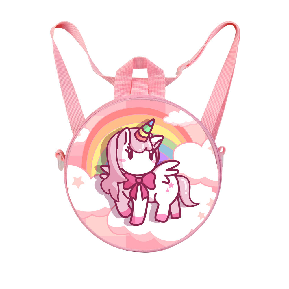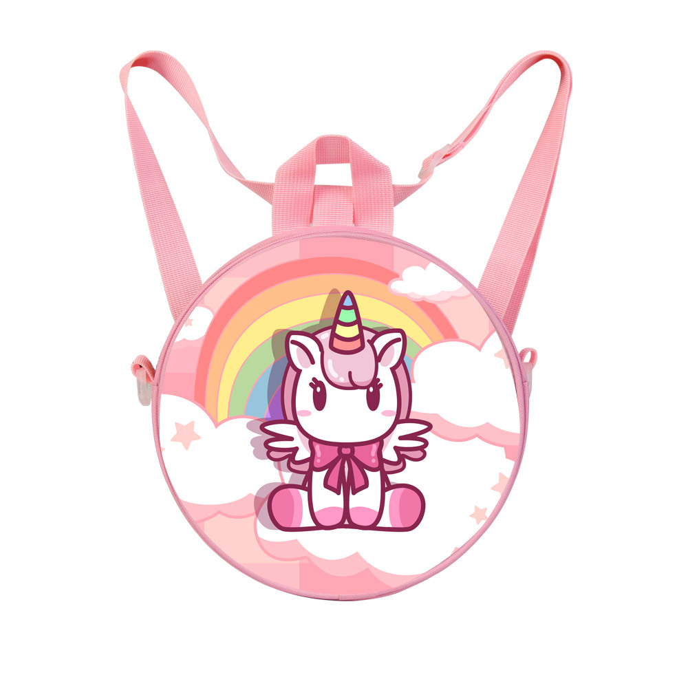 원래 일본 유니콘 작은 둥근 가방 만화 싱글 및 더블 어깨 어린이 가방 귀여운 스타일 미니 가리 하트 어깨 가방