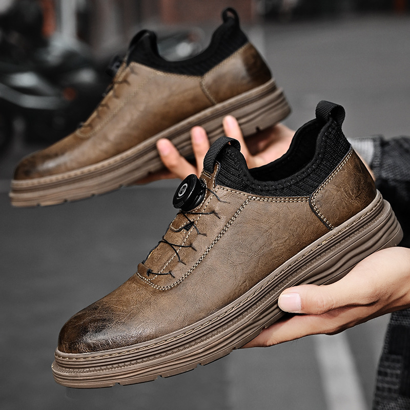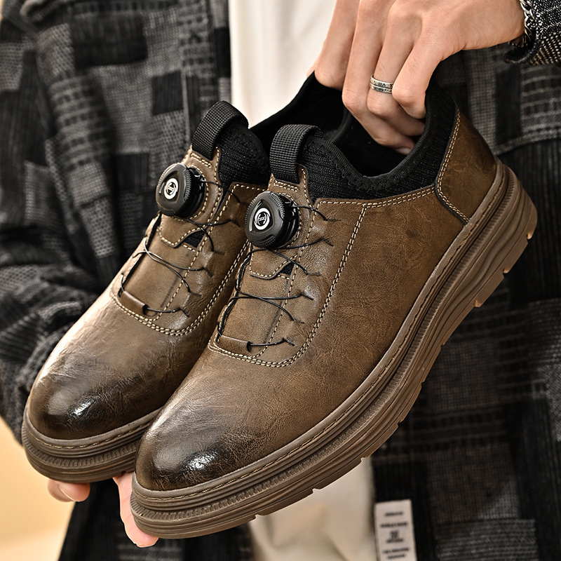 회전 버클 캐주얼 남성 가죽 신발 크로스 보더 정품 가죽 남성 신발 플러스 사이즈 작업 신발 통기성 해외 무역 캐주얼 남성 가죽 신발스토어 가기