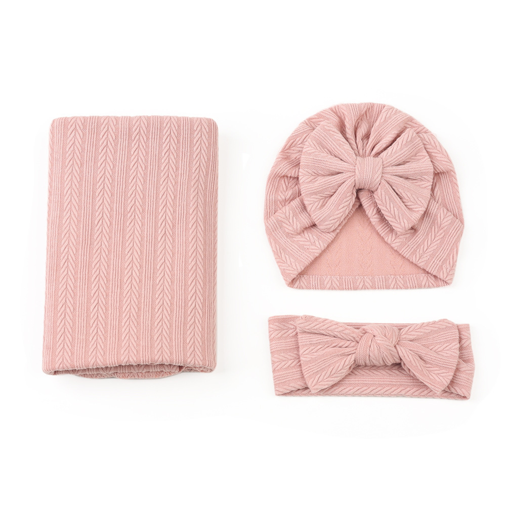 해외 무역 국경 아기 포대기 세트 신생아 폴리 에스테르 면 단색 밀 곡물 담요 3 종 세트