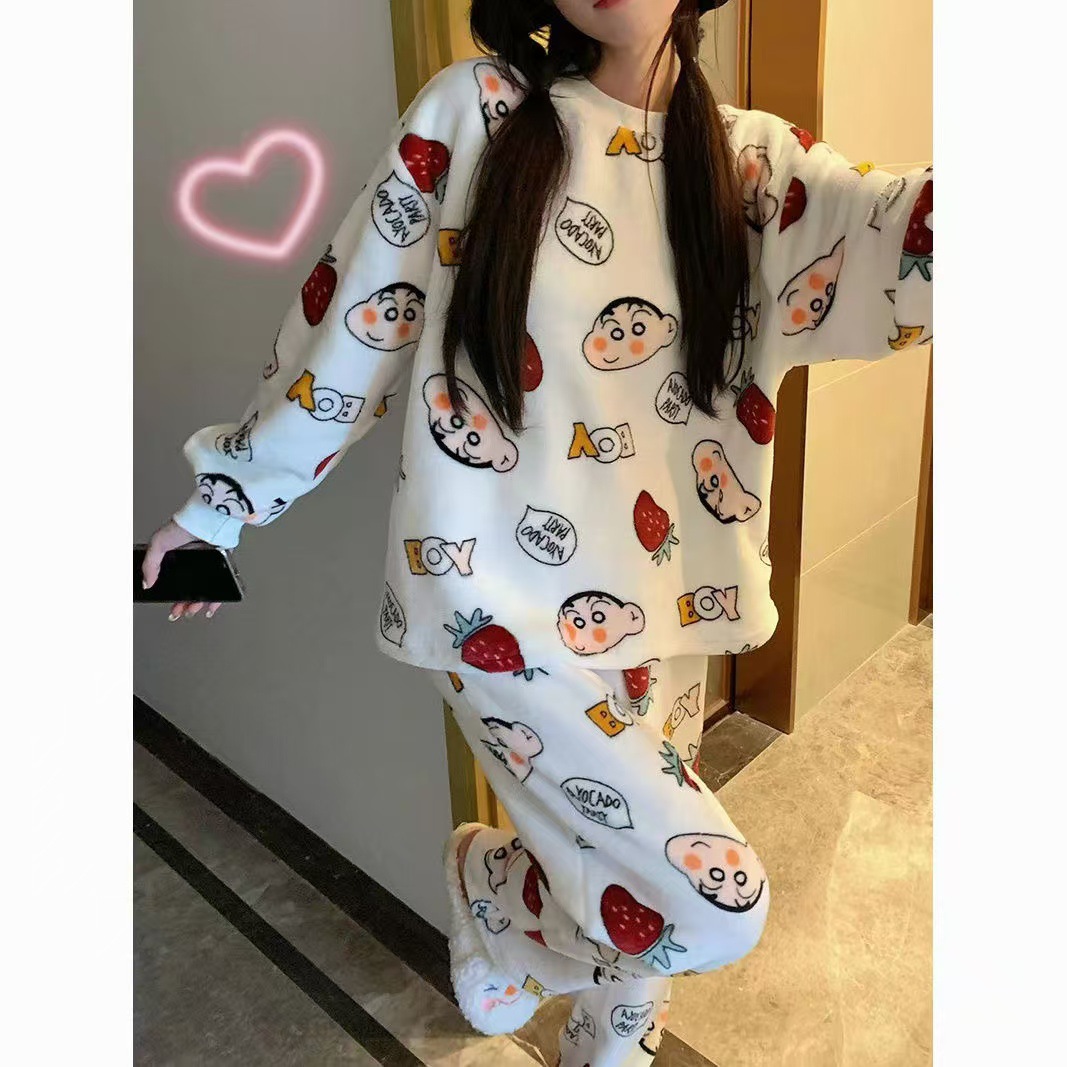 여성을위한 산호 벨벳 잠옷 2024 새로운 봄, 가을, 겨울 두꺼운 따뜻한 플란넬 대형 홈웨어 세트