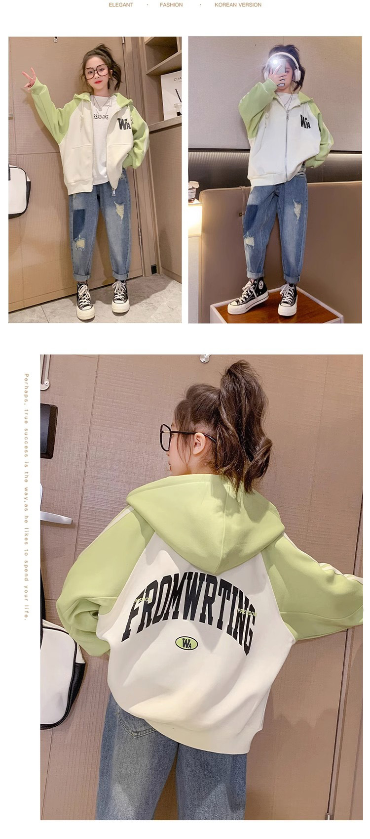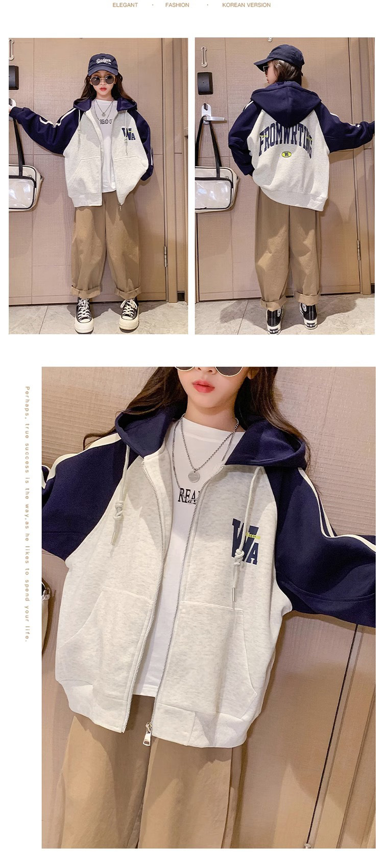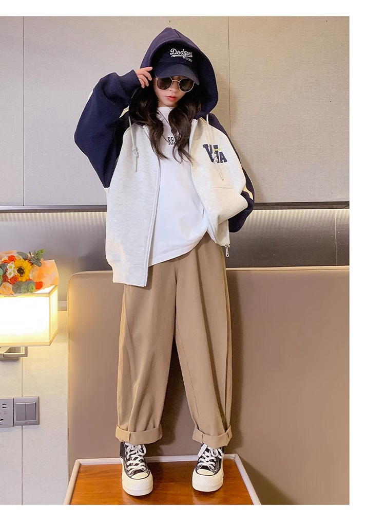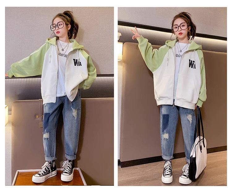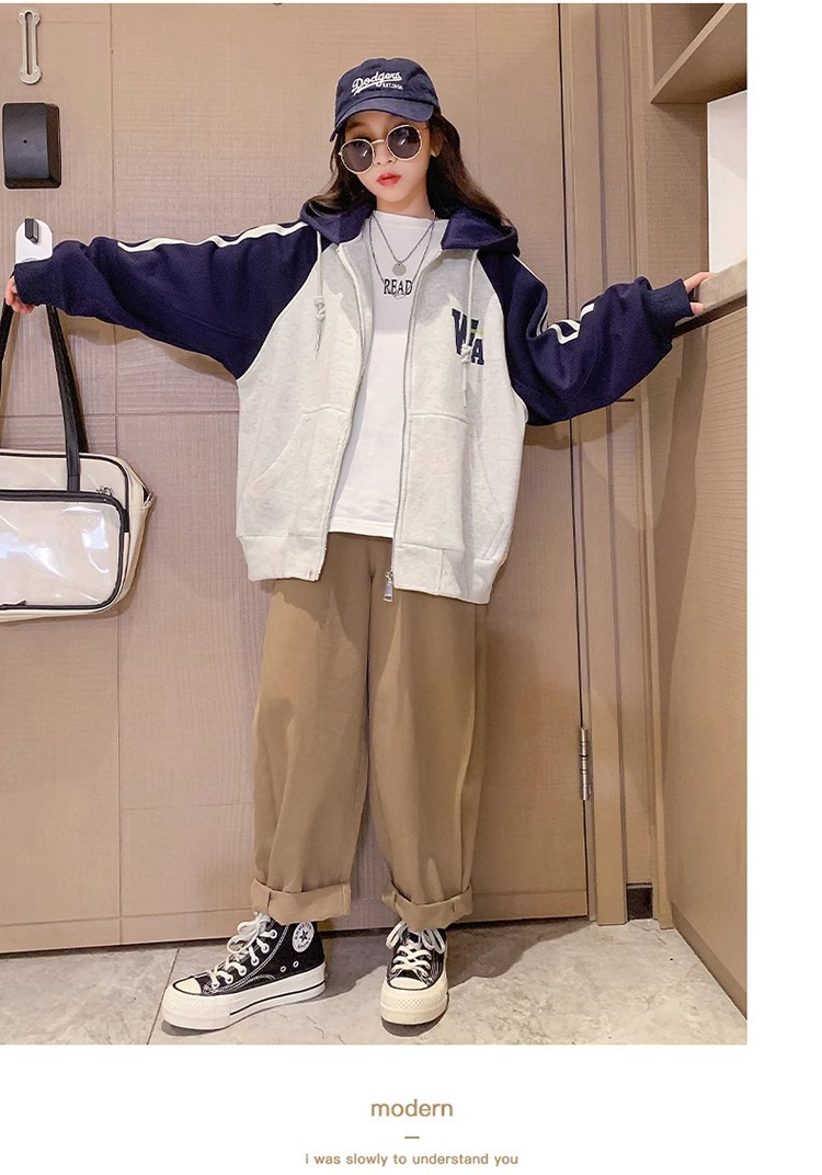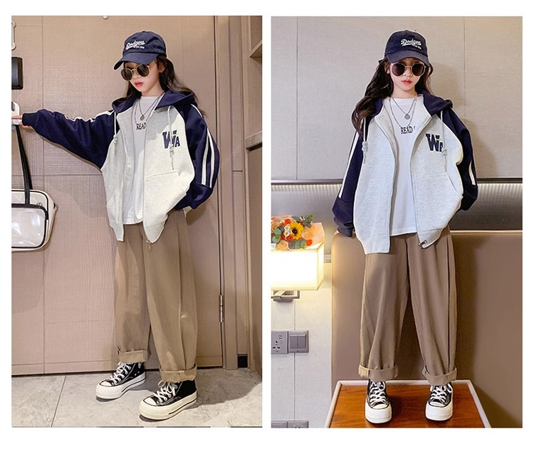 소년과 소녀를위한 아메리칸 스타일 코트 2023 봄과 가을 새로운 서양 스타일 후드 야구 세트 대형 아동복 한국 재킷