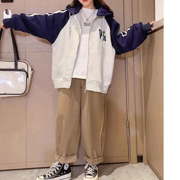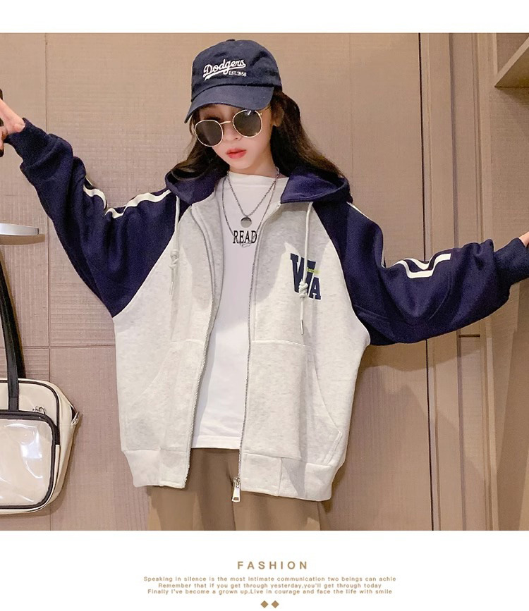 소년과 소녀를위한 아메리칸 스타일 코트 2023 봄과 가을 새로운 서양 스타일 후드 야구 세트 대형 아동복 한국 재킷스토어 가기