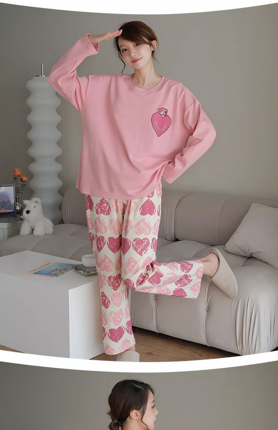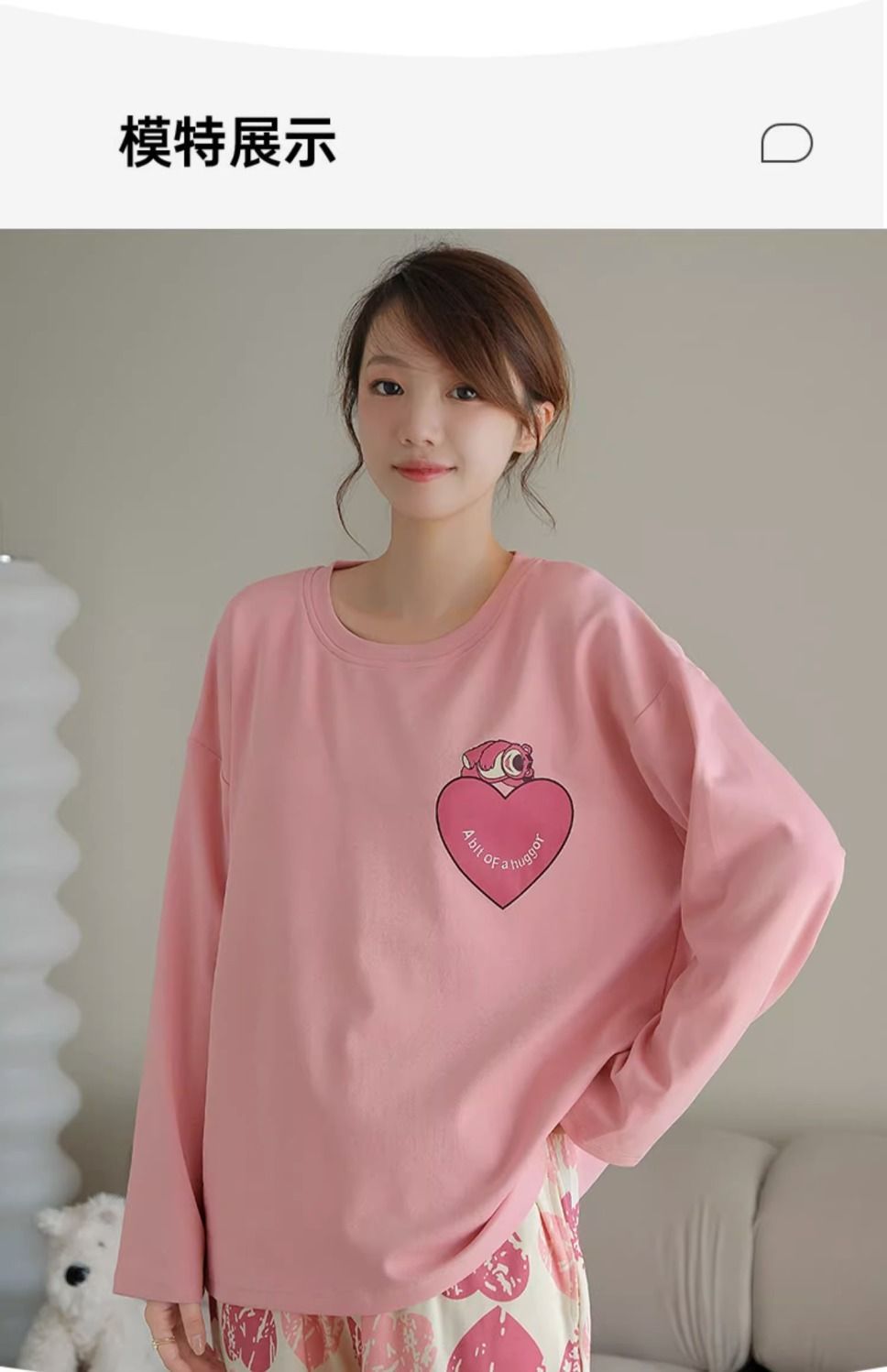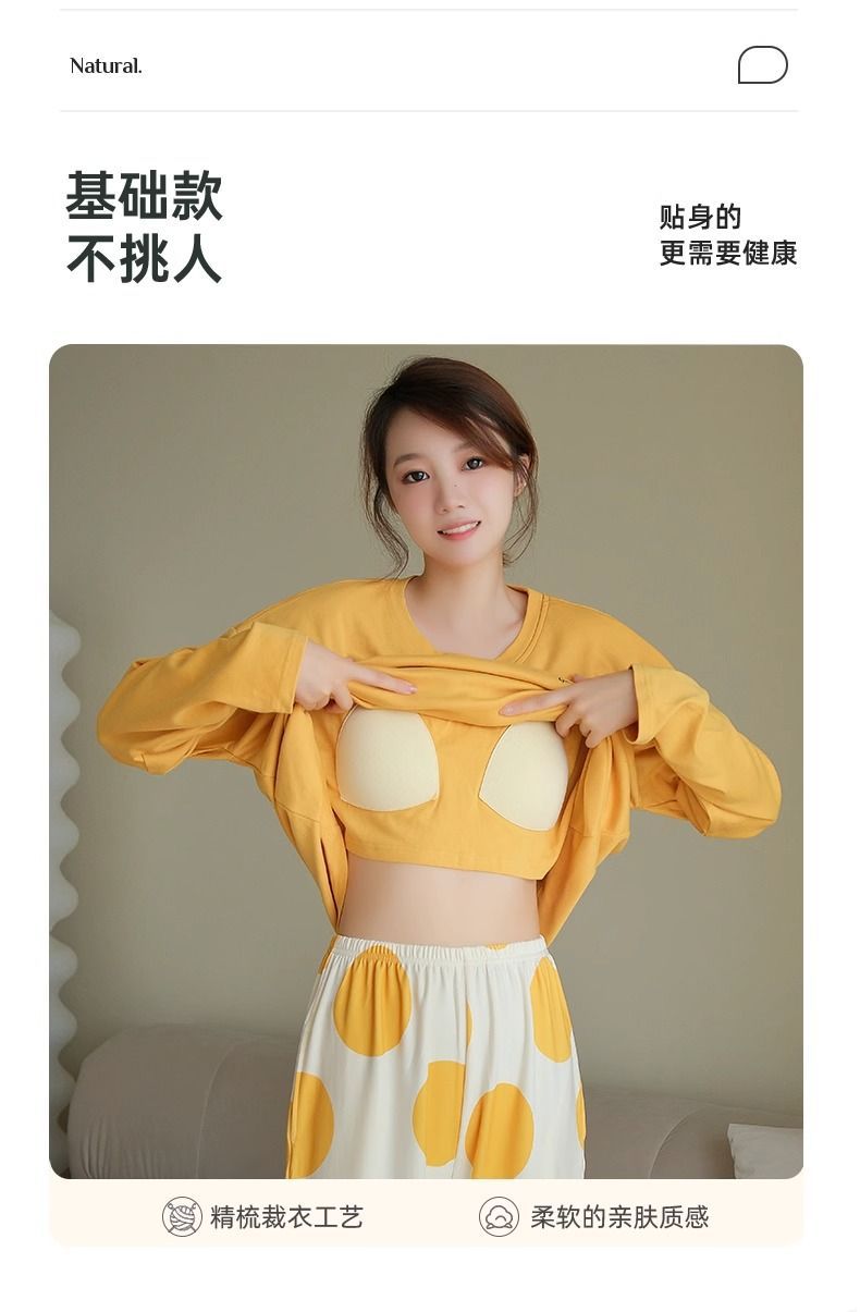 인 잠옷 가슴 패드 여자의 봄과 가을 긴 소매 달콤한 만화 학생 기숙사 플러스 사이즈 느슨한 세트 가정 옷스토어 가기