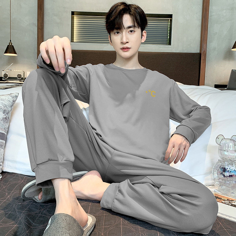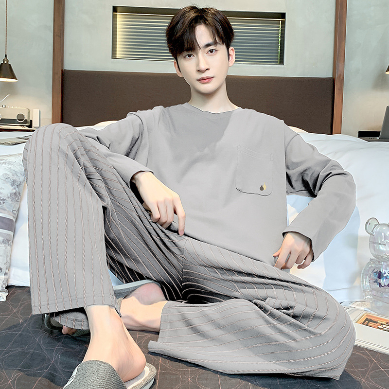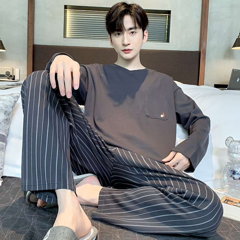 잠옷 남자의 가을과 겨울 면 긴 소매 봄과 가을 남자 아웃웨어 한국 캐주얼 느슨한 가정 옷 세트스토어 가기