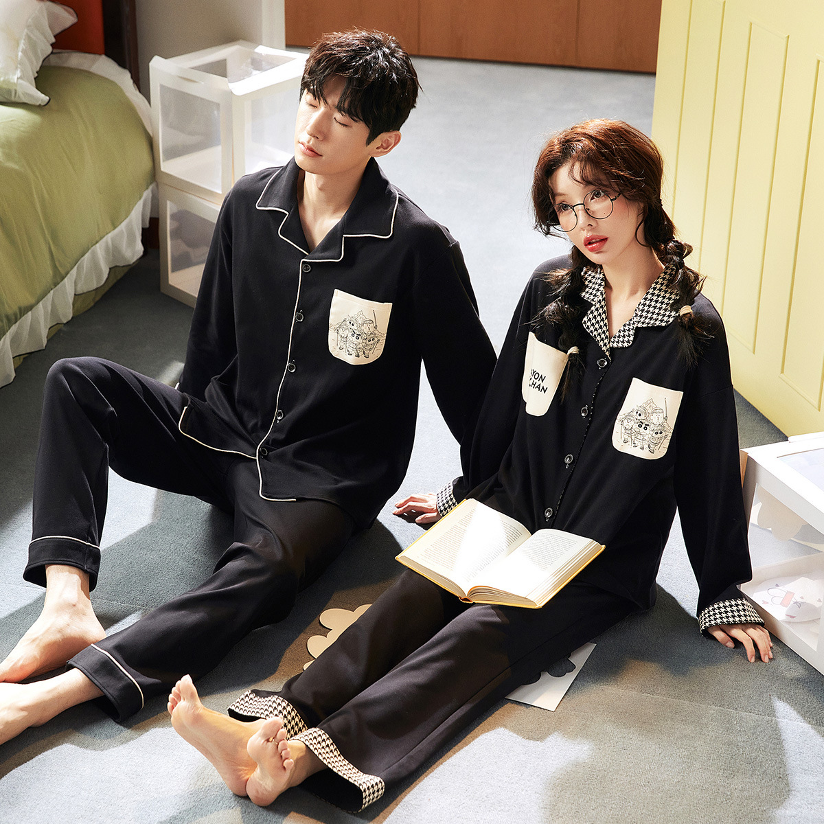 런마 [라이트 앤 소프트] 크레용 소 신상 봄 가을 커플 파자마 여성 면 긴 소매 남성 가정복 외 착용 가능스토어 가기
