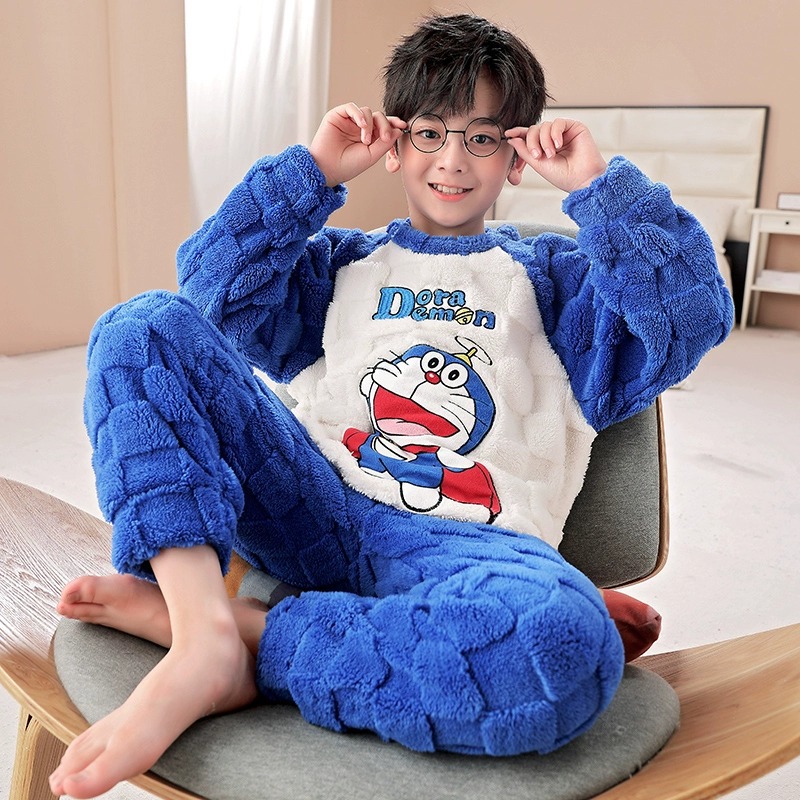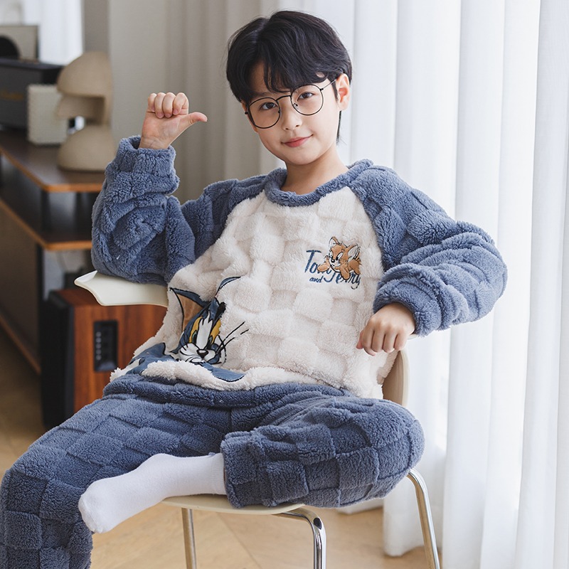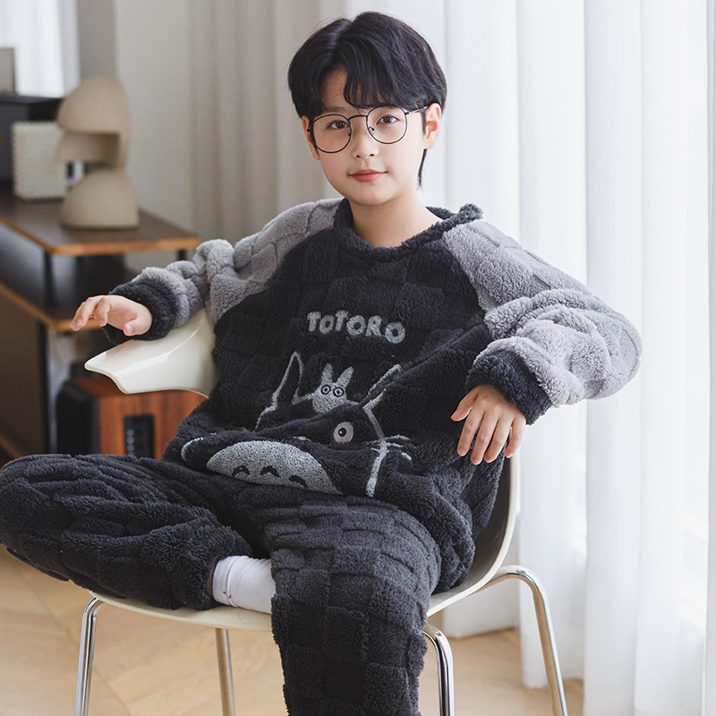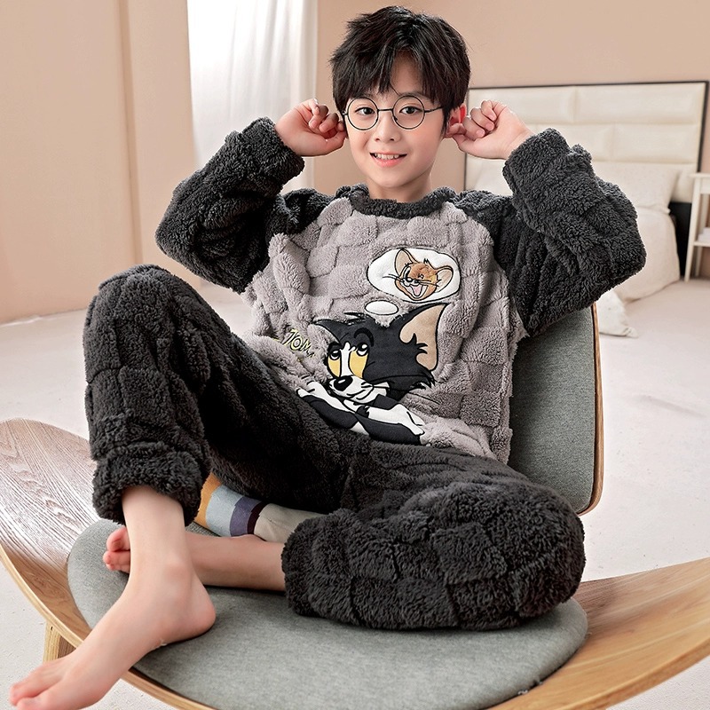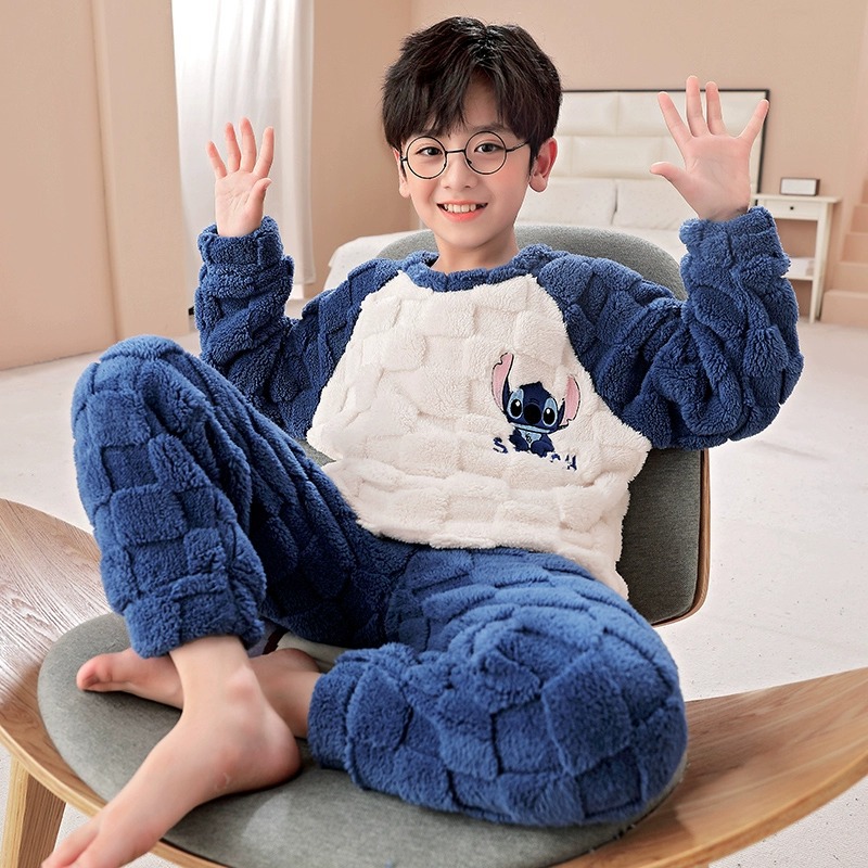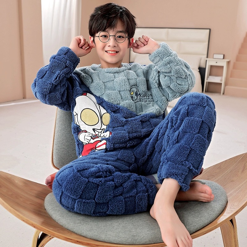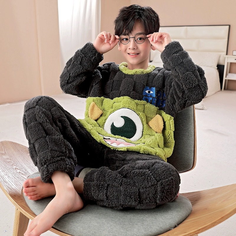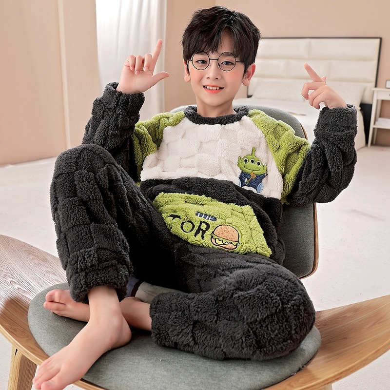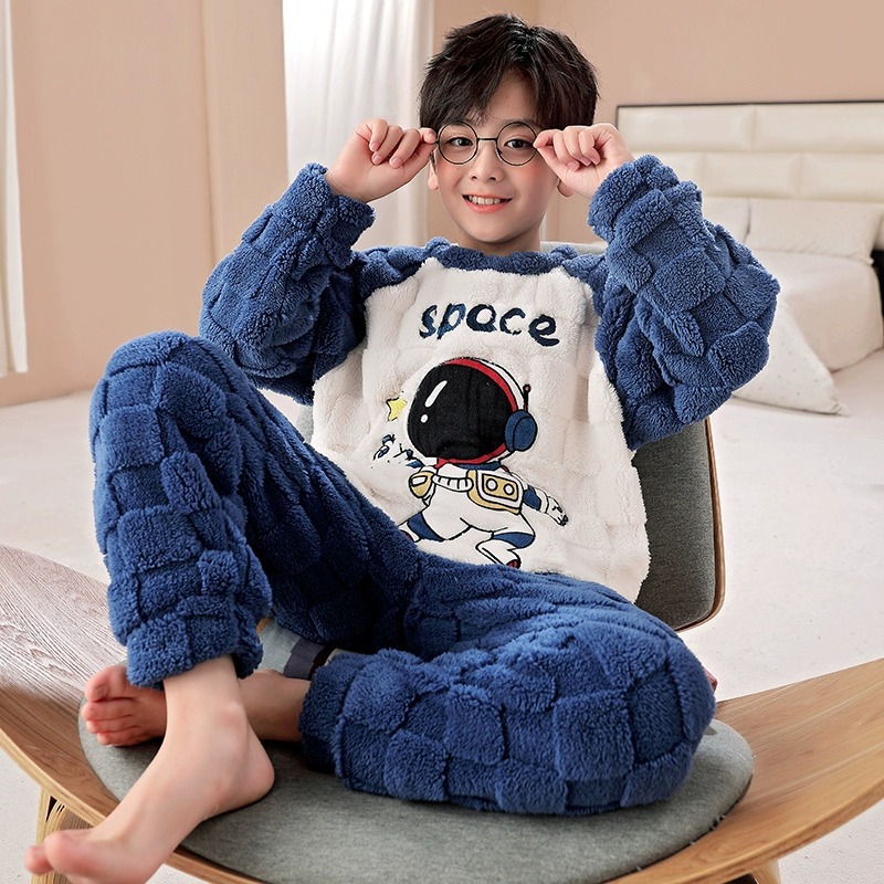 산호 양털 어린이 잠옷 소년 2023 가을과 겨울 플란넬 큰 어린이 소년 청소년 가정 의류 세트스토어 가기