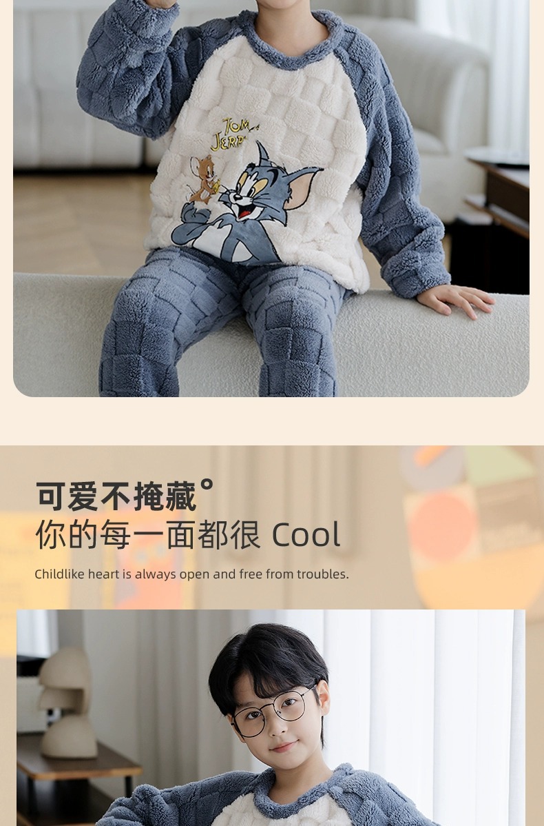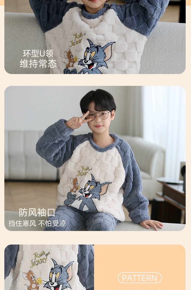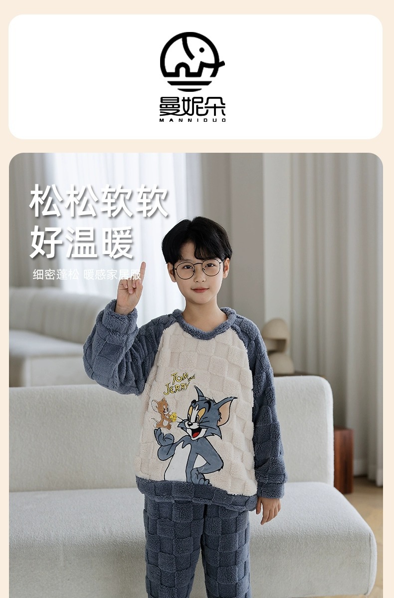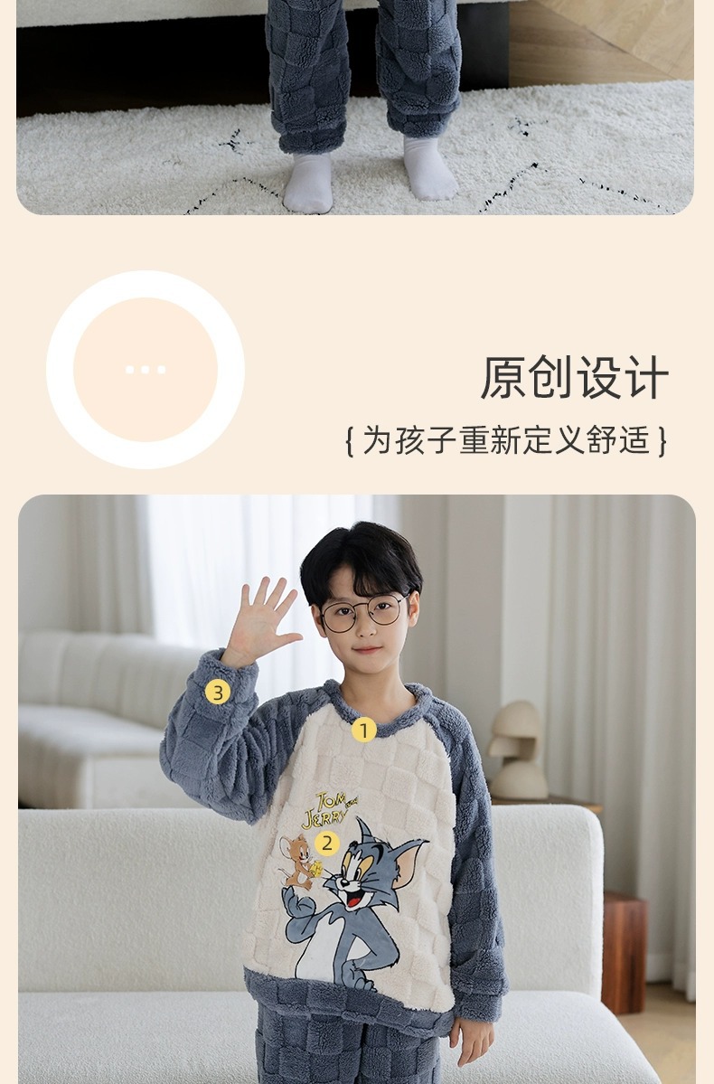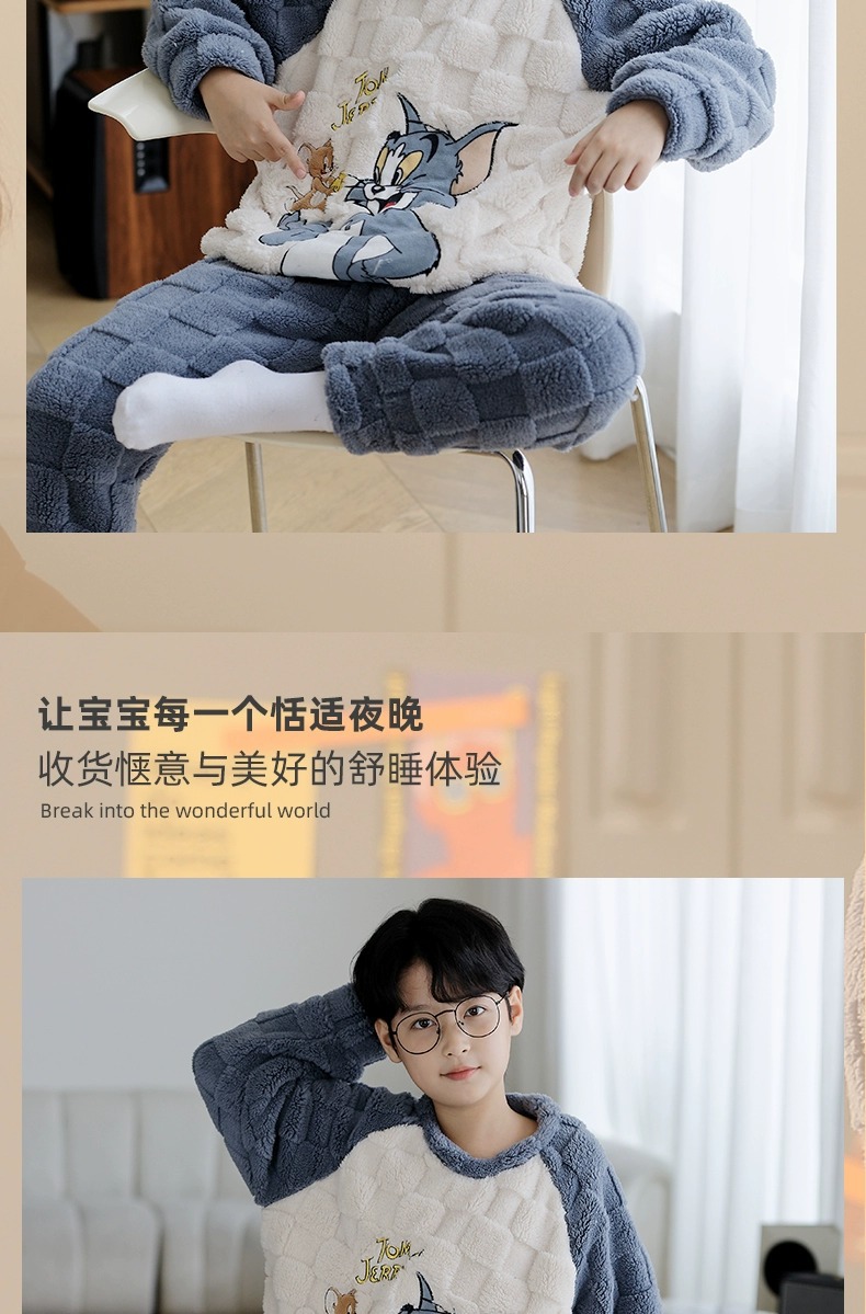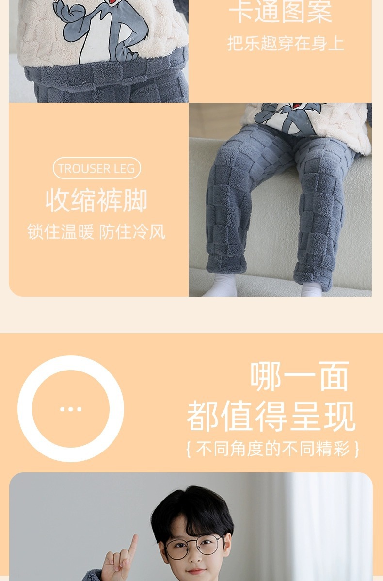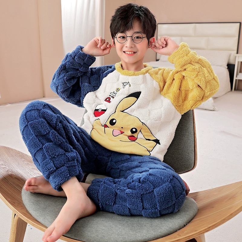 산호 양털 어린이 잠옷 소년 2023 가을과 겨울 플란넬 큰 어린이 소년 청소년 가정 의류 세트스토어 가기