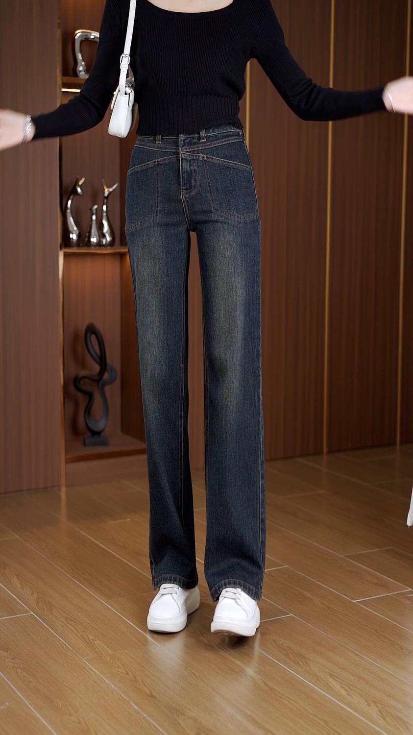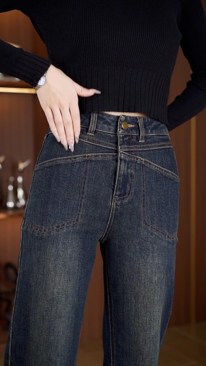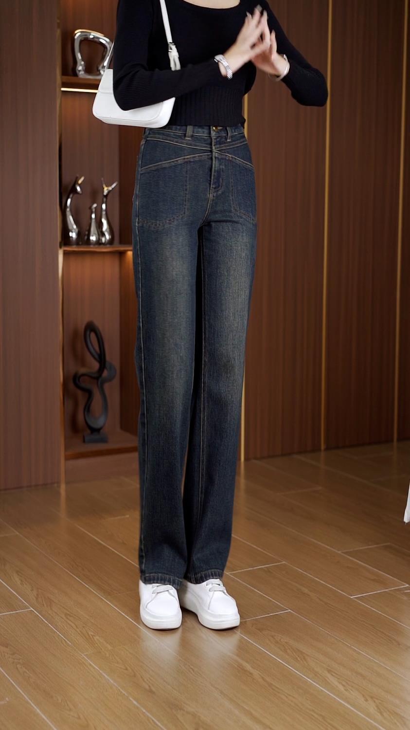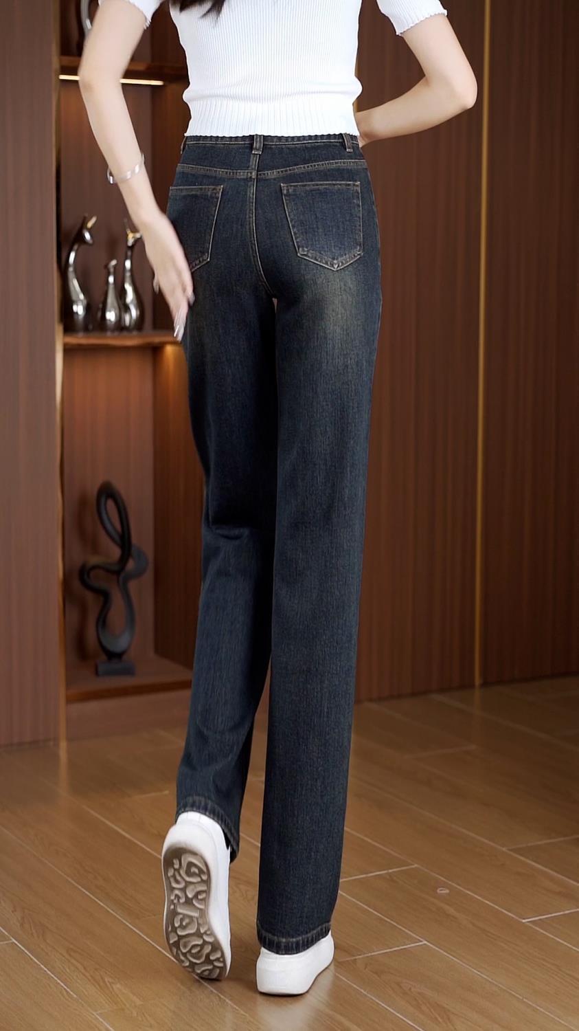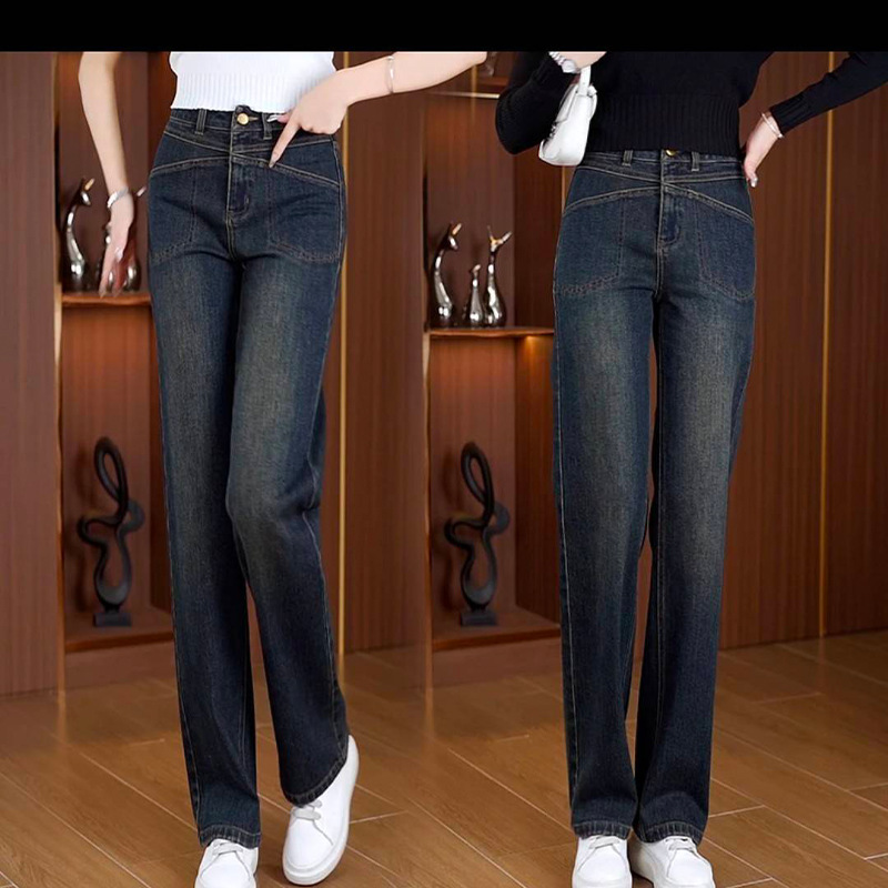 하이 웨이스트 청바지 여자의 좁은 스트레이트 바지 와이드 레그 바지 2023 가을 새로운 느슨한 플러스 사이즈 슬리밍 청바지스토어 가기