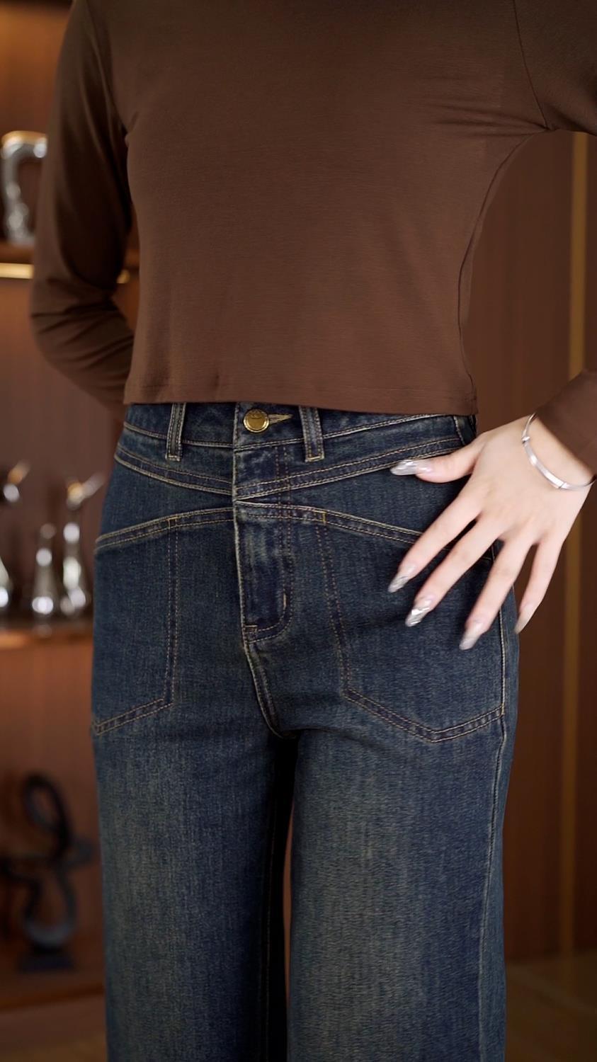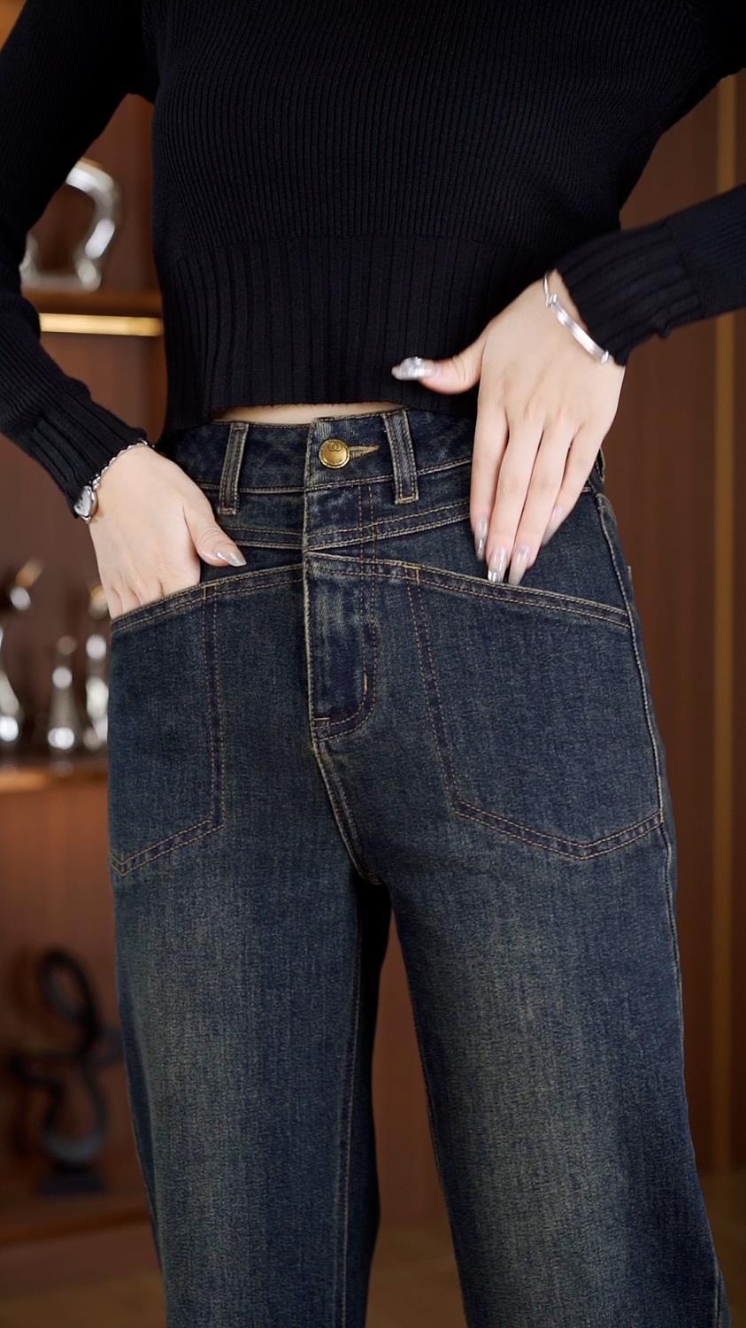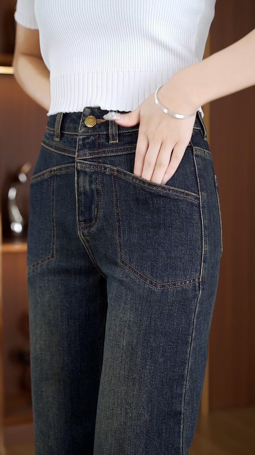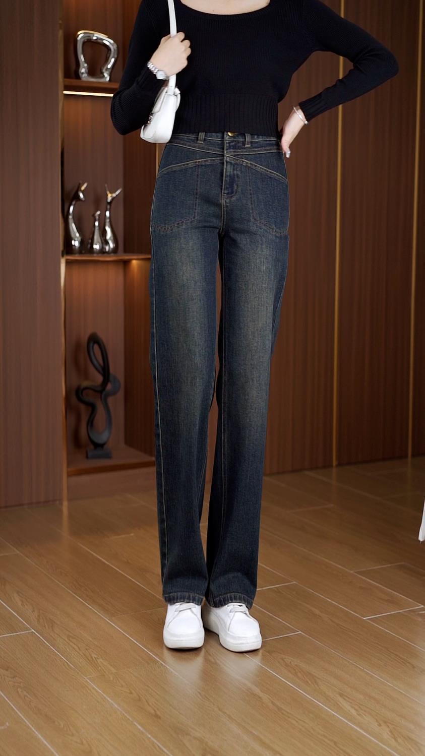하이 웨이스트 청바지 여자의 좁은 스트레이트 바지 와이드 레그 바지 2023 가을 새로운 느슨한 플러스 사이즈 슬리밍 청바지스토어 가기