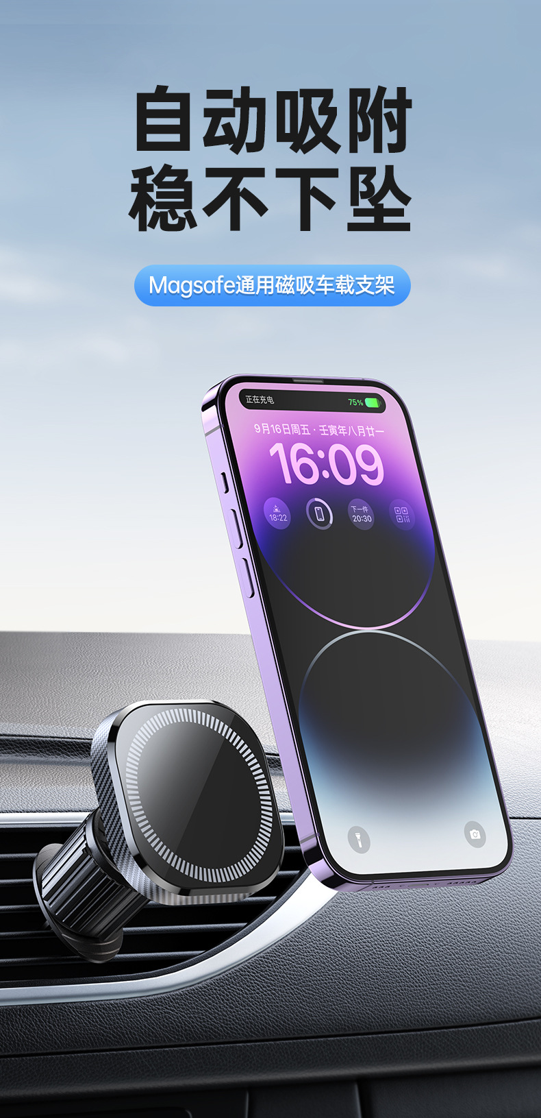 새 차 휴대 전화 브래킷 공기 배출구 금속 후크 Magsafe 강한 자석 자동차 네비게이션 브래킷 흡입 컵