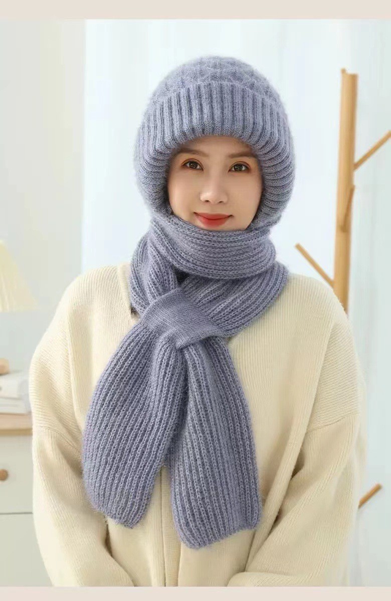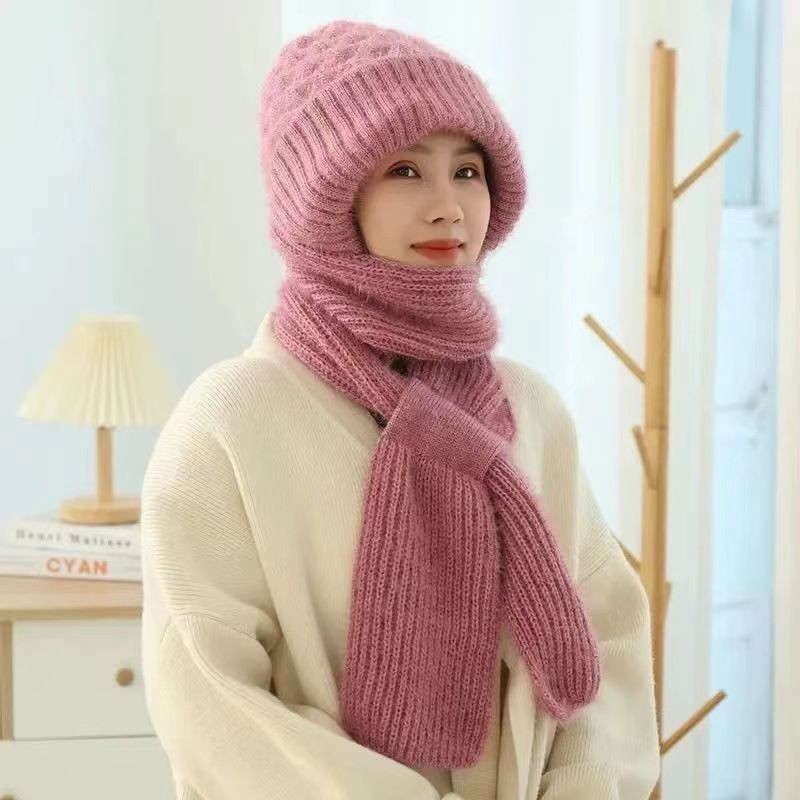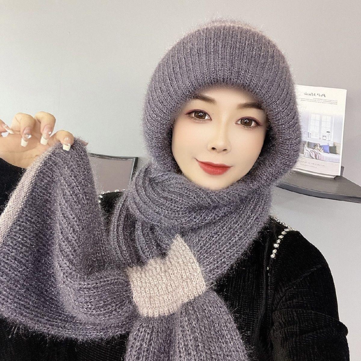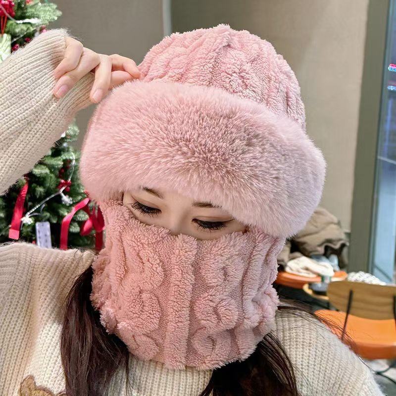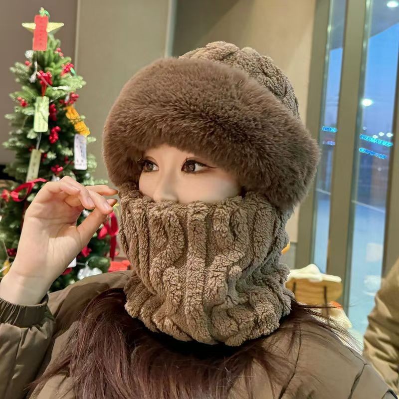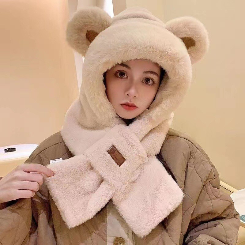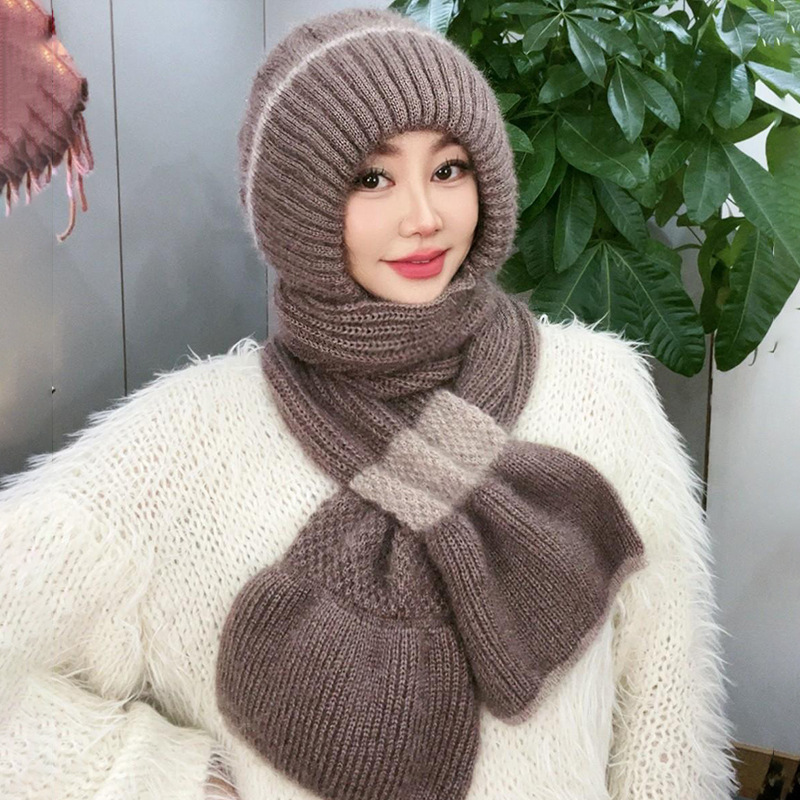 모자 여자의 가을과 겨울 다람쥐 벨벳 모자 스카프 올인원 눈 모자 기모 울 모자 버클 귀 보호 니트 모자