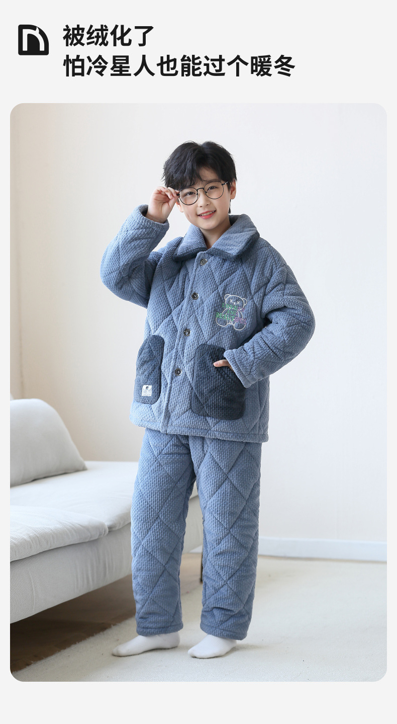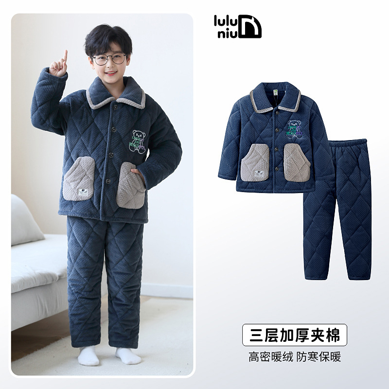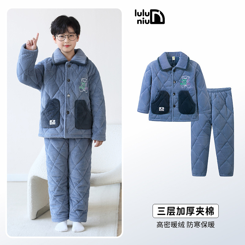루루 암소 소년 플란넬 퀼트 3 층 두꺼운 기모 중간 및 큰 어린이와 소년을 위한 겨울 어린이 잠옷 재고