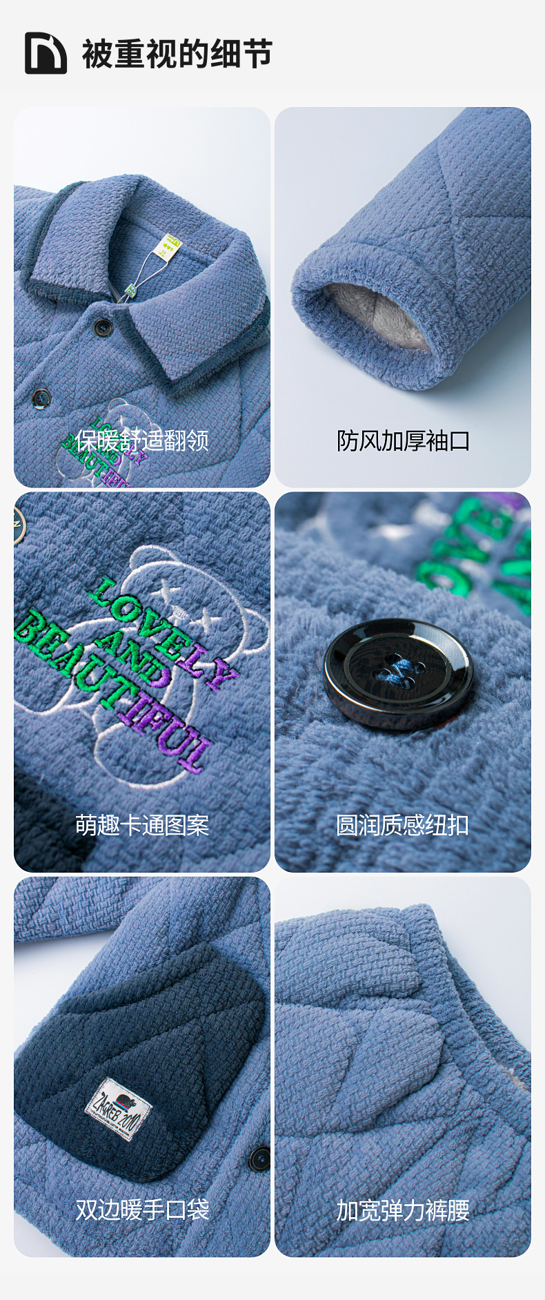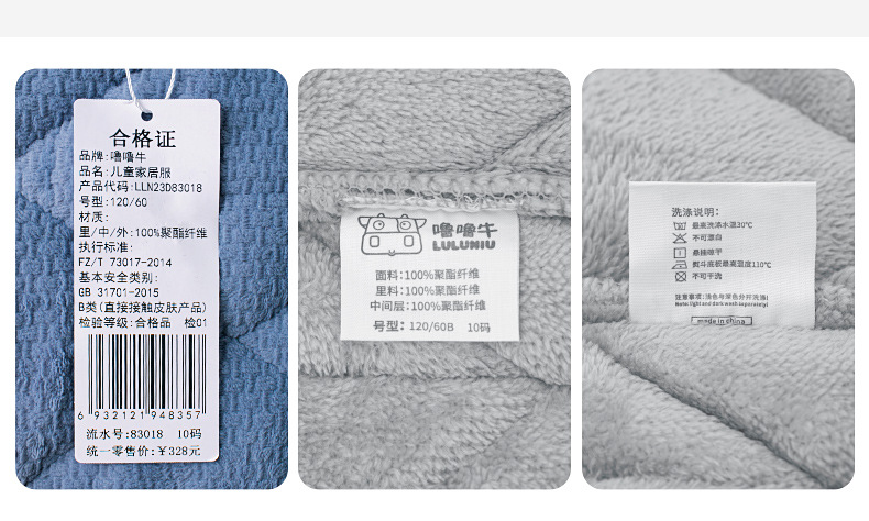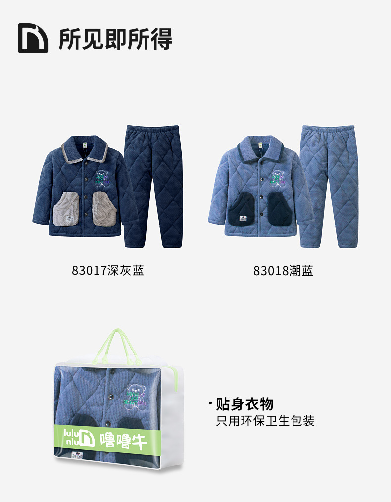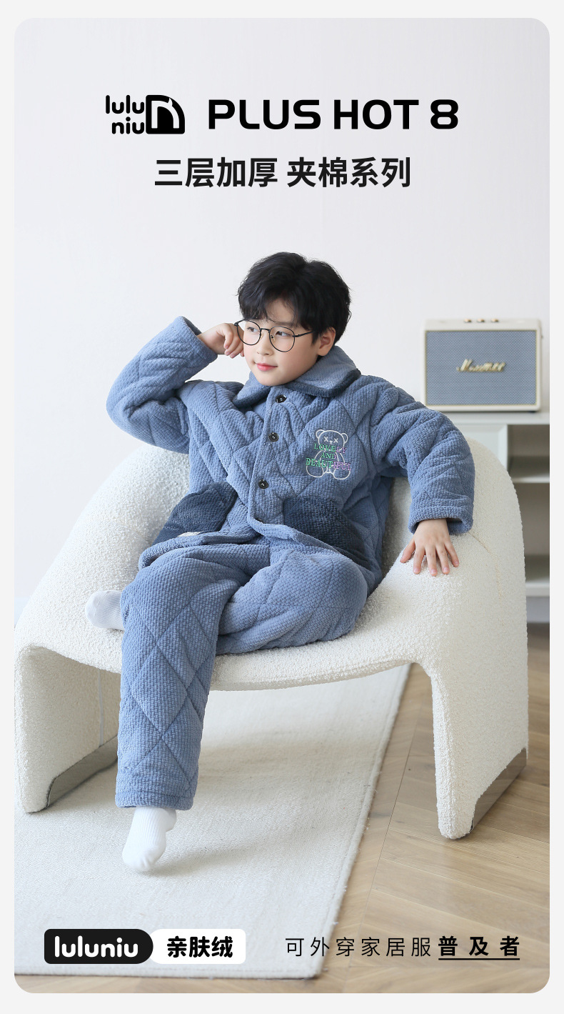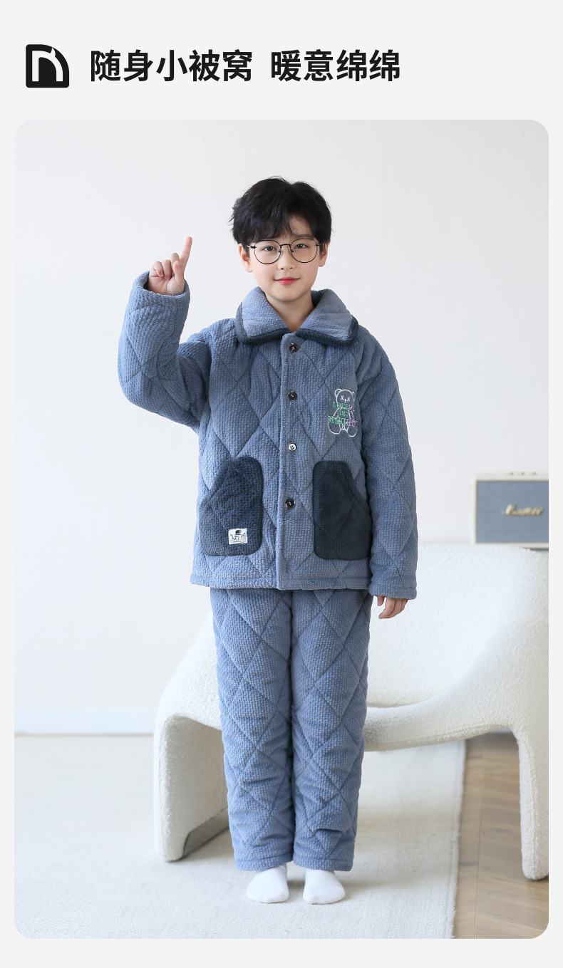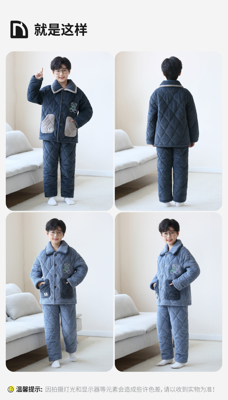루루 암소 소년 플란넬 퀼트 3 층 두꺼운 기모 중간 및 큰 어린이와 소년을 위한 겨울 어린이 잠옷 재고스토어 가기