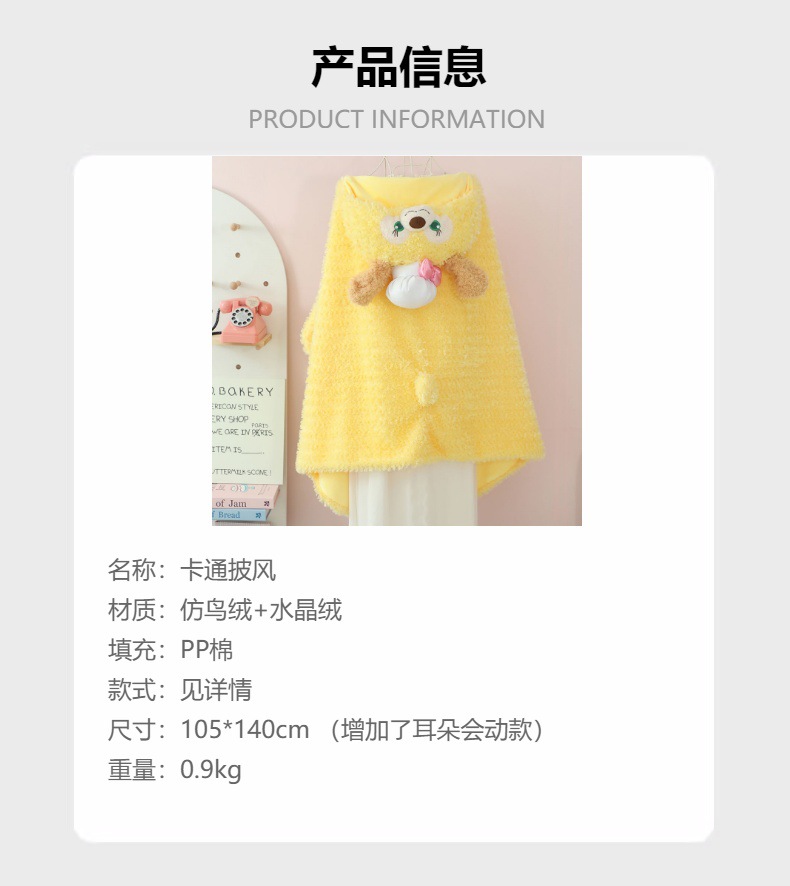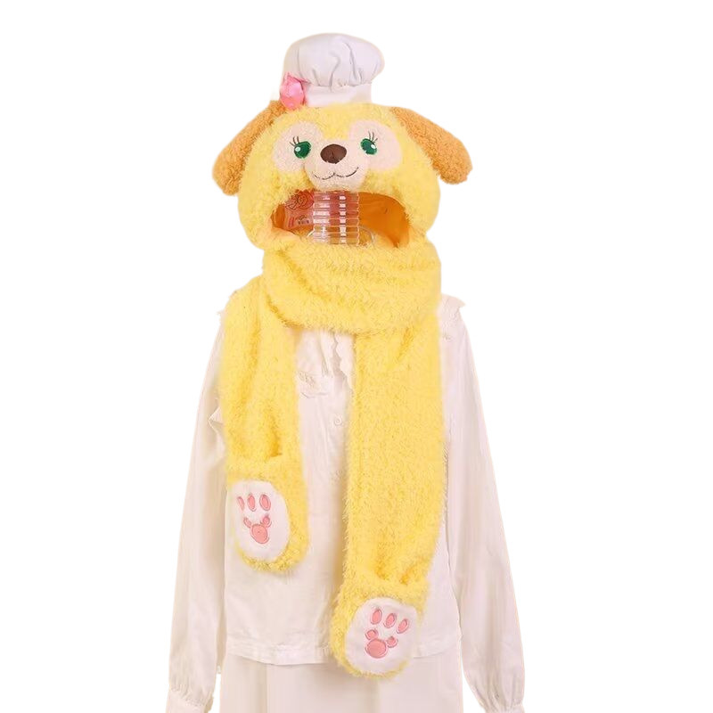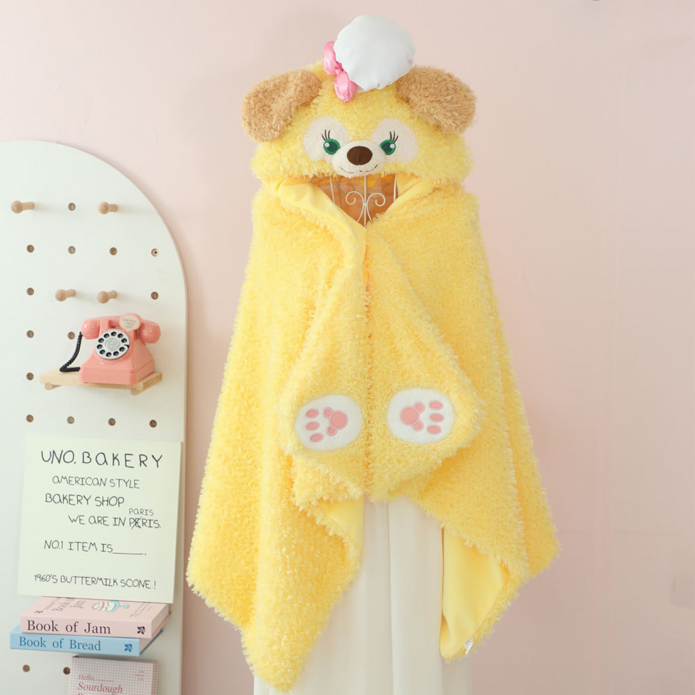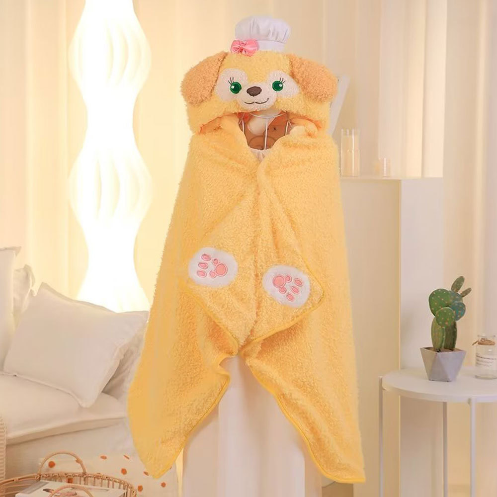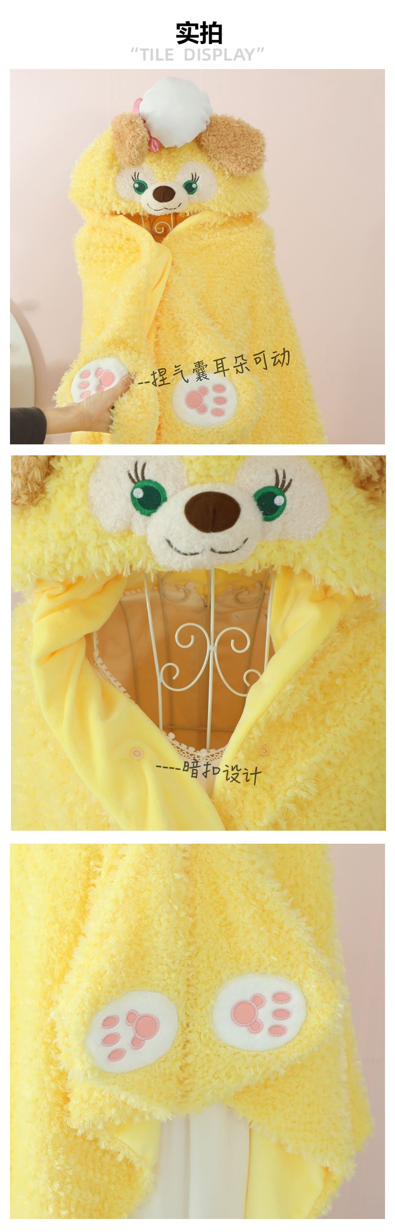 만화 귀여운 요리사 개 후드 U 베개 더블 레이어 따뜻한 후드 케이프 숄 사무실 에어컨 낮잠 담요