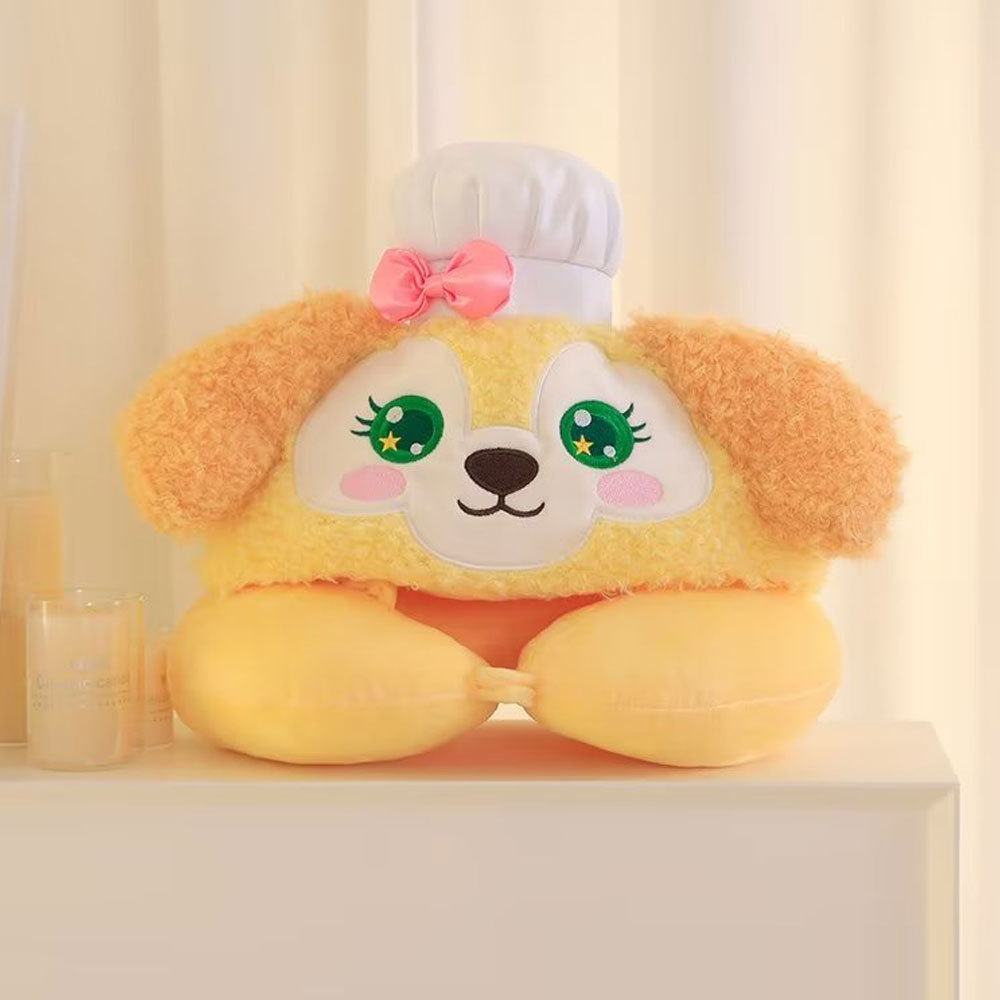 만화 귀여운 요리사 개 후드 U 베개 더블 레이어 따뜻한 후드 케이프 숄 사무실 에어컨 낮잠 담요스토어 가기