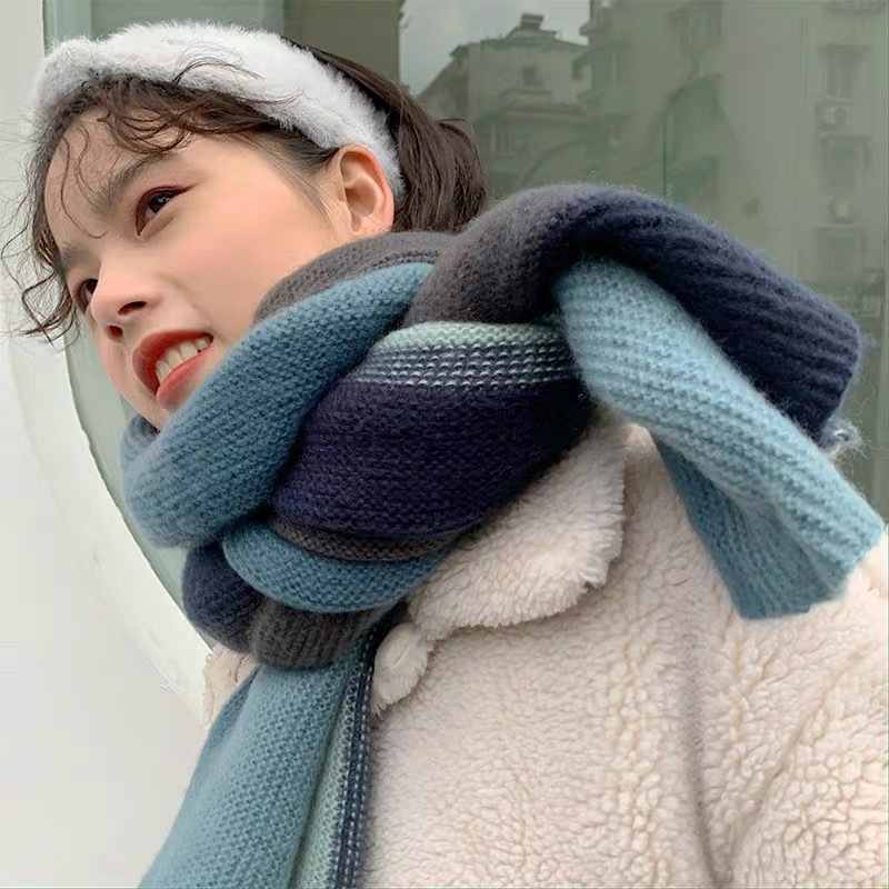 여성과 소녀를위한 레인보우 니트 스카프 달콤한 귀여운 두꺼운 부드러운 왁스 따뜻한 스카프 한국 스타일 학생 귀여운 숄스토어 가기