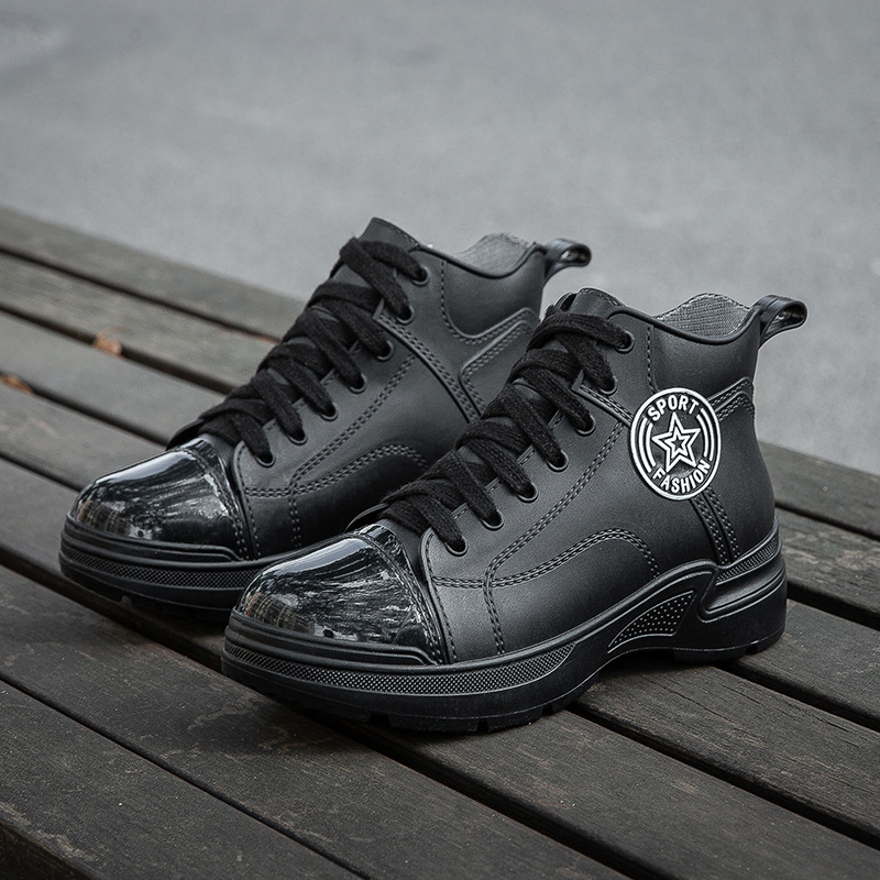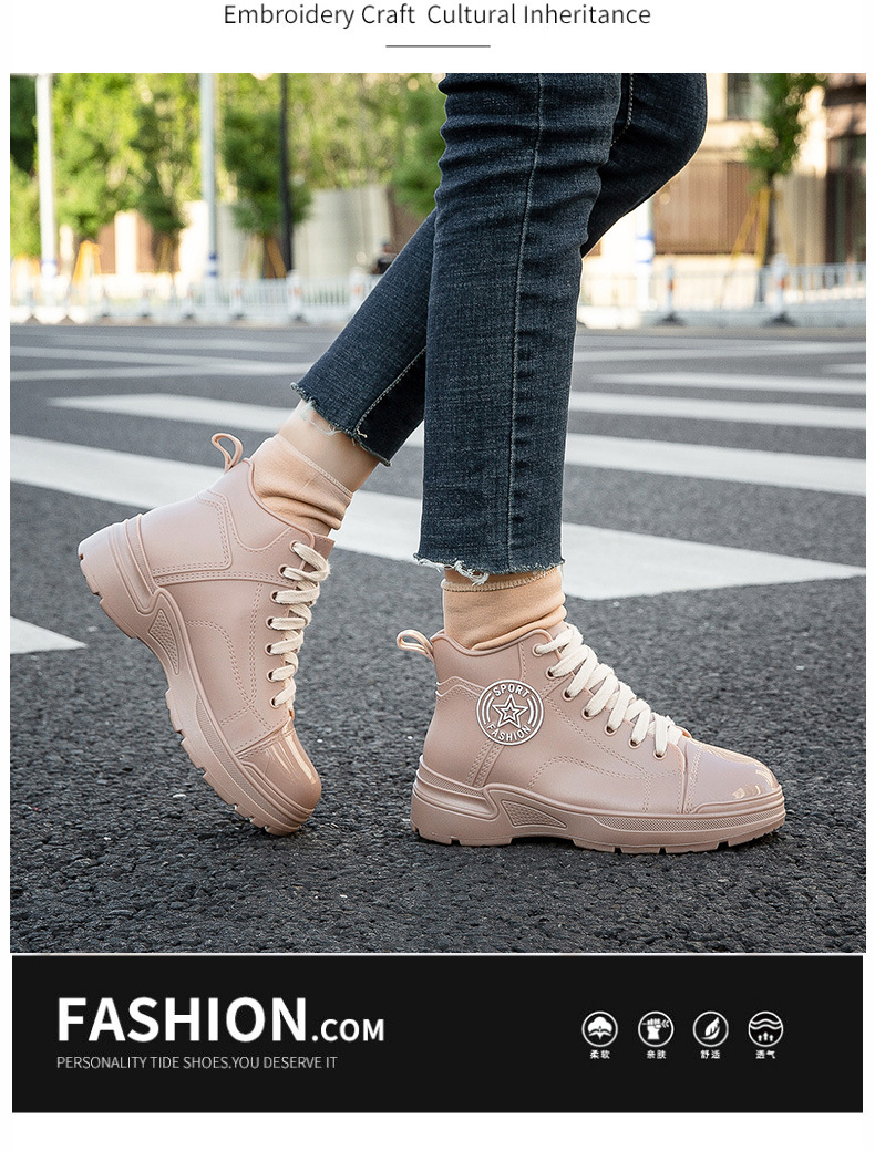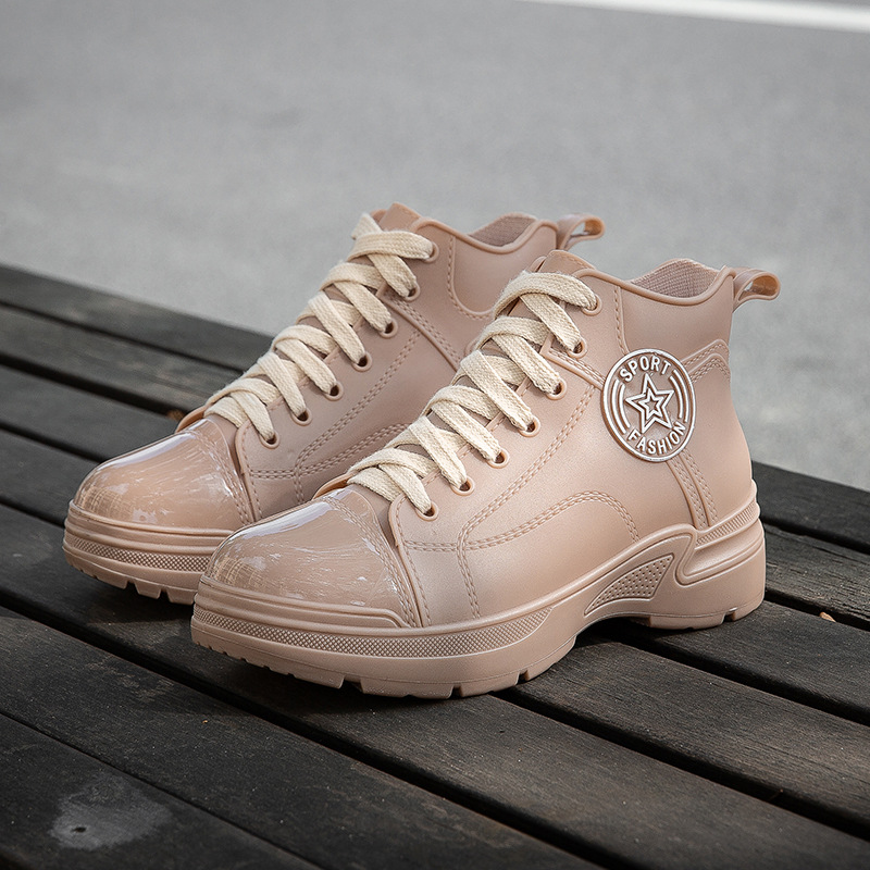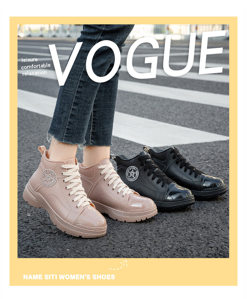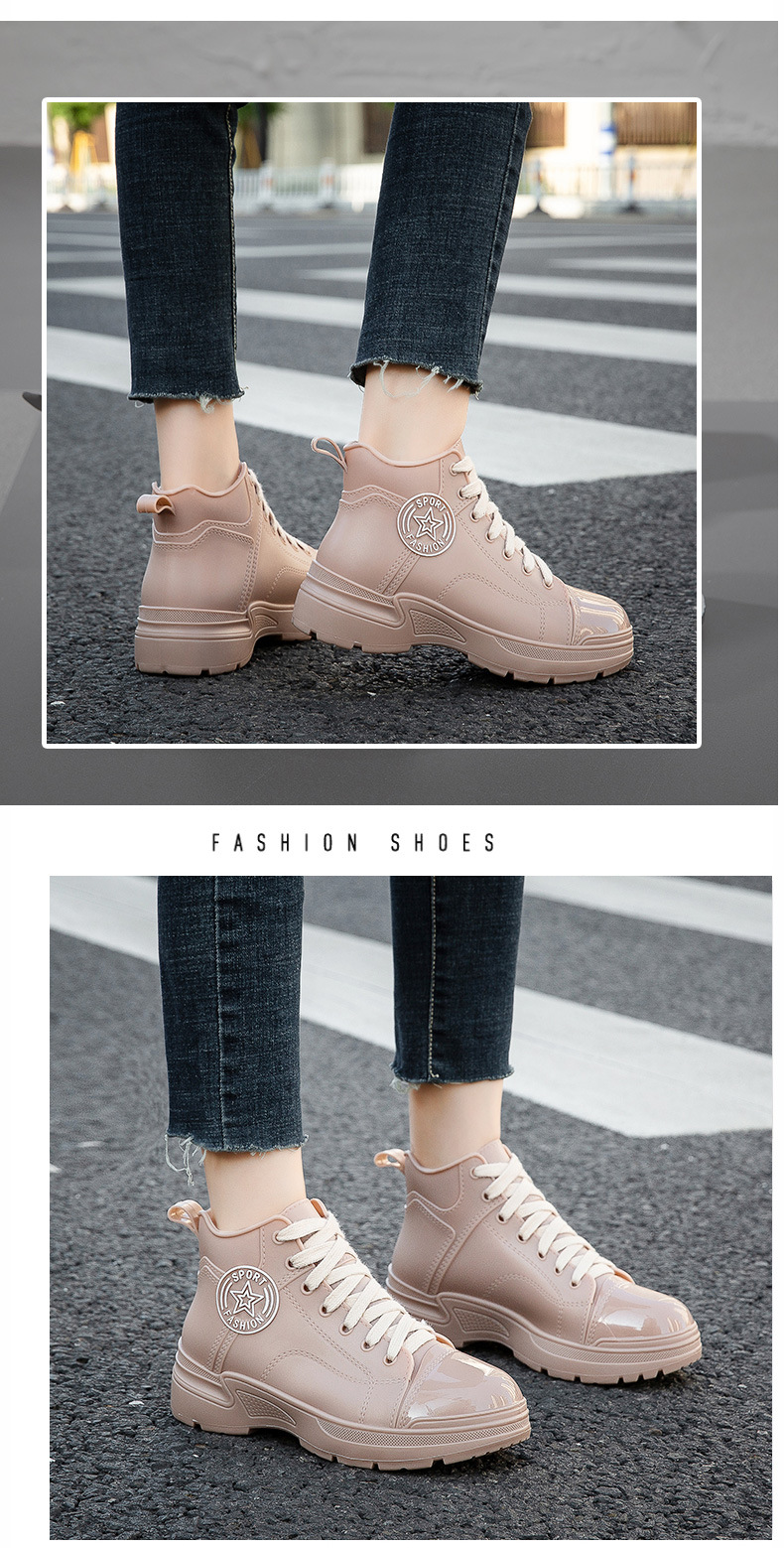 패션 여성 방수 장화 미끄럼 방지 장화 짧은 배럴 새 한국 스타일 캐주얼 외부 착용 발 고무 신발