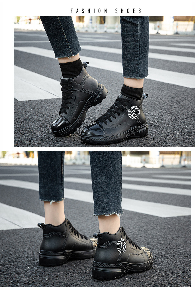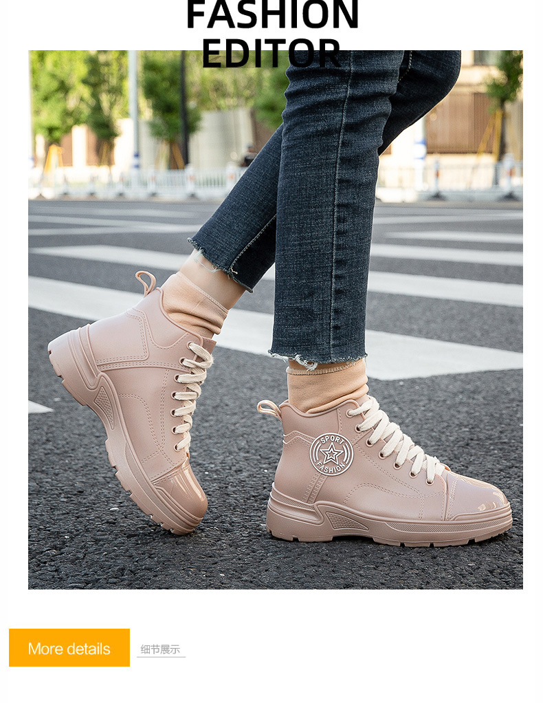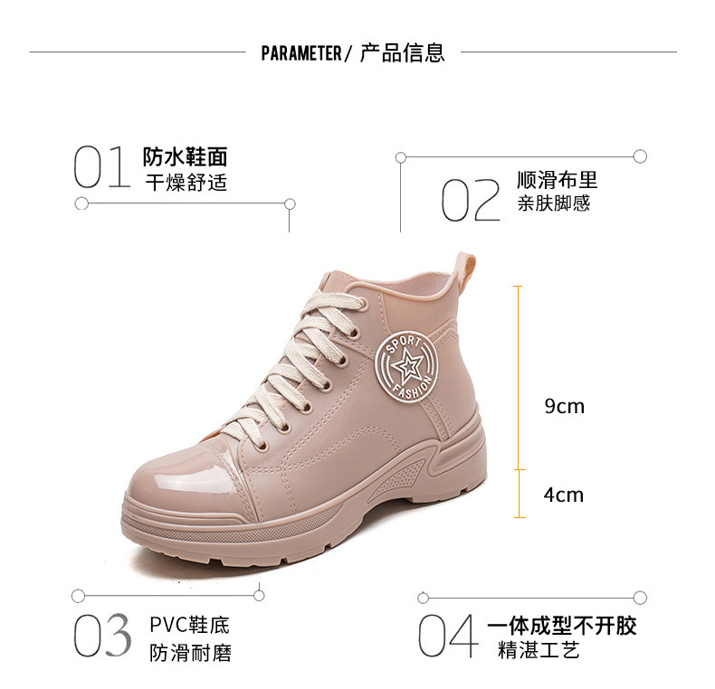 패션 여성 방수 장화 미끄럼 방지 장화 짧은 배럴 새 한국 스타일 캐주얼 외부 착용 발 고무 신발스토어 가기