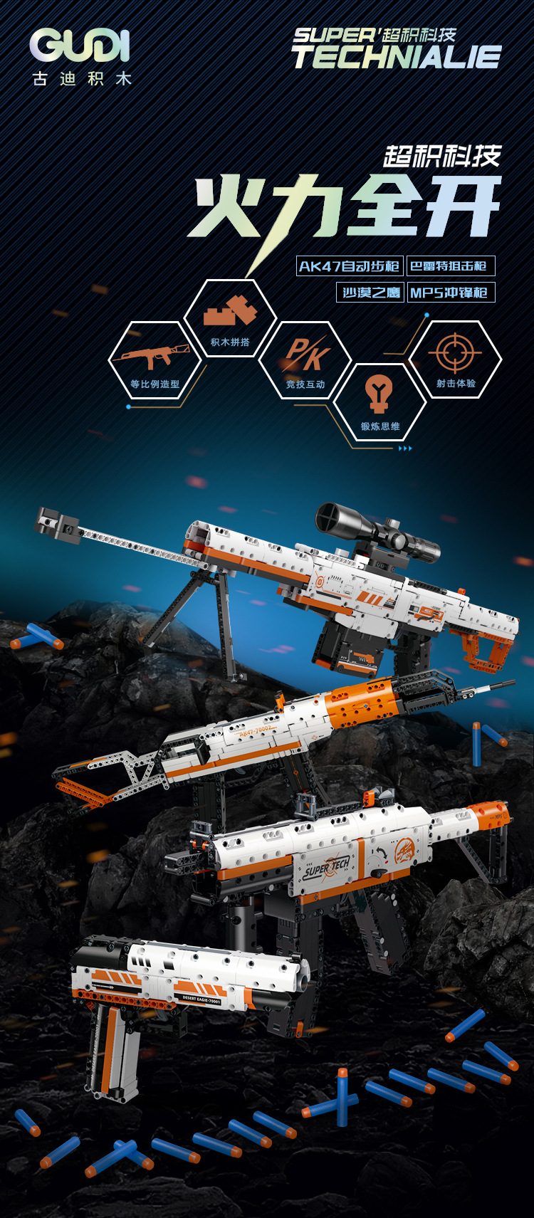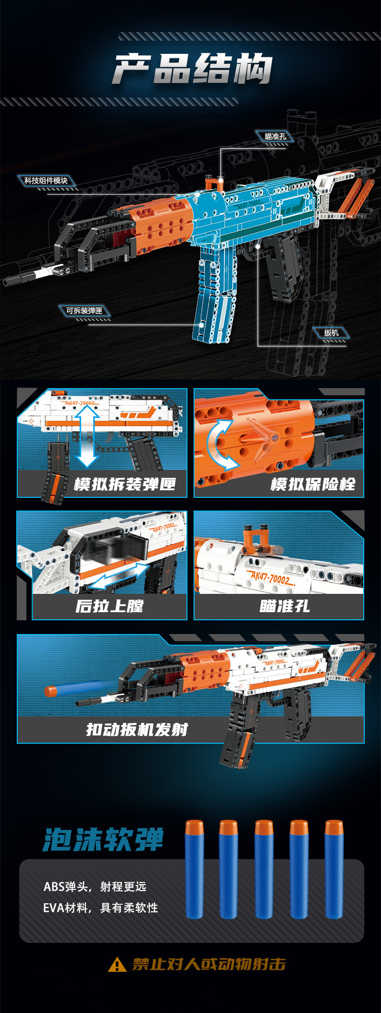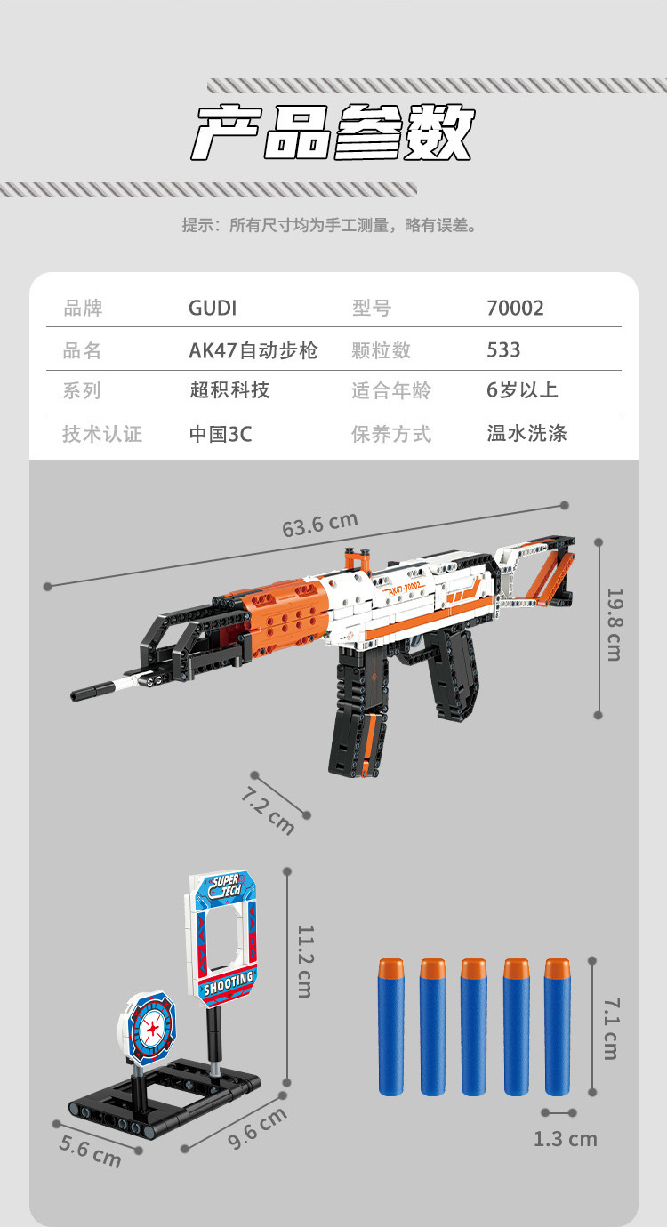 구디 70001 기술 거품 폭탄 AK47 조립 작은 입자 소년 선물 저격 소총 모델 장난감스토어 가기
