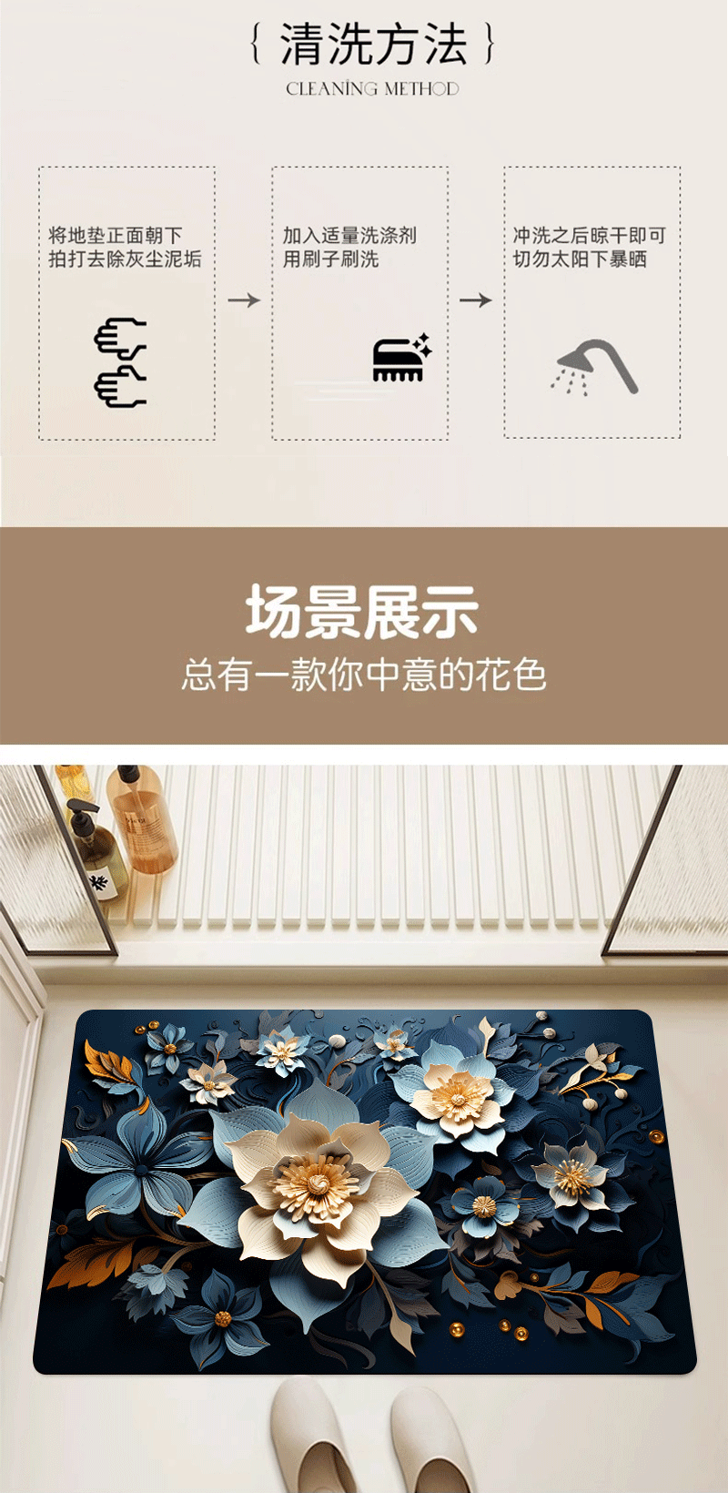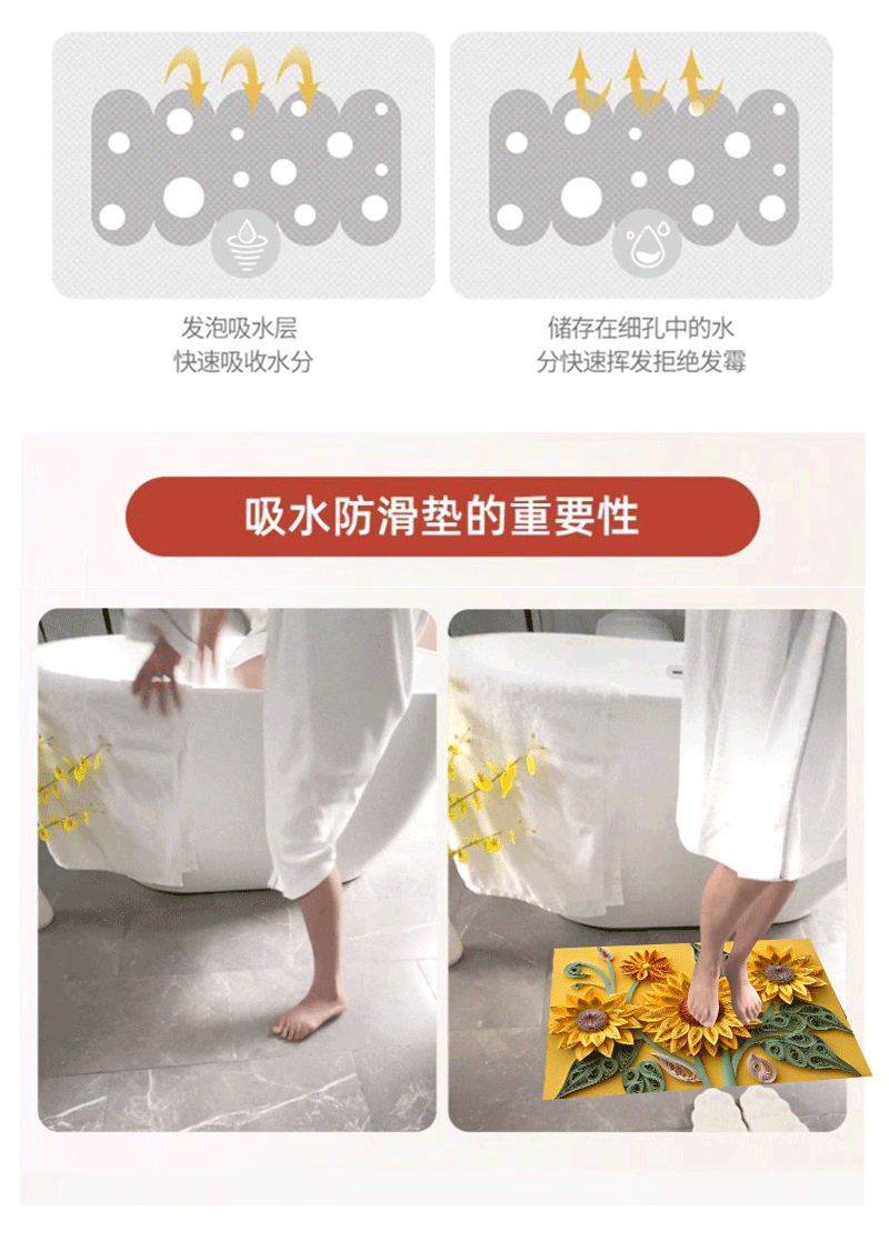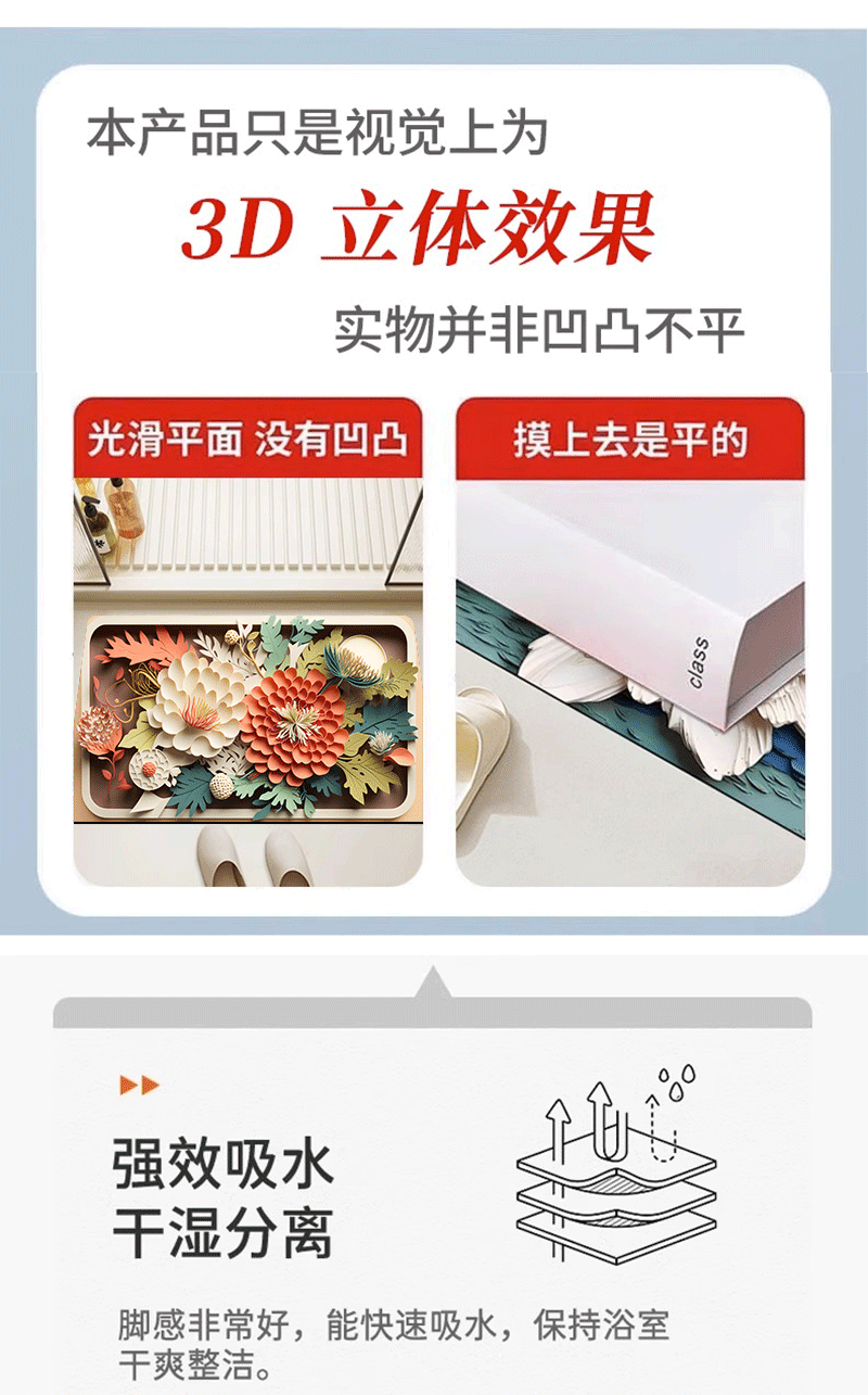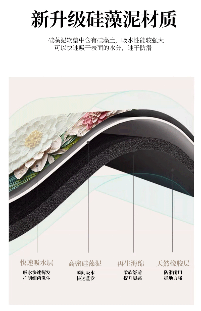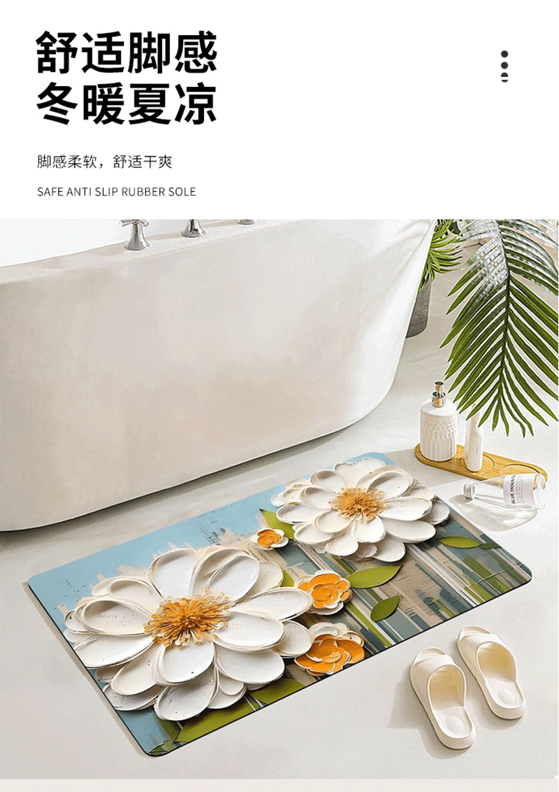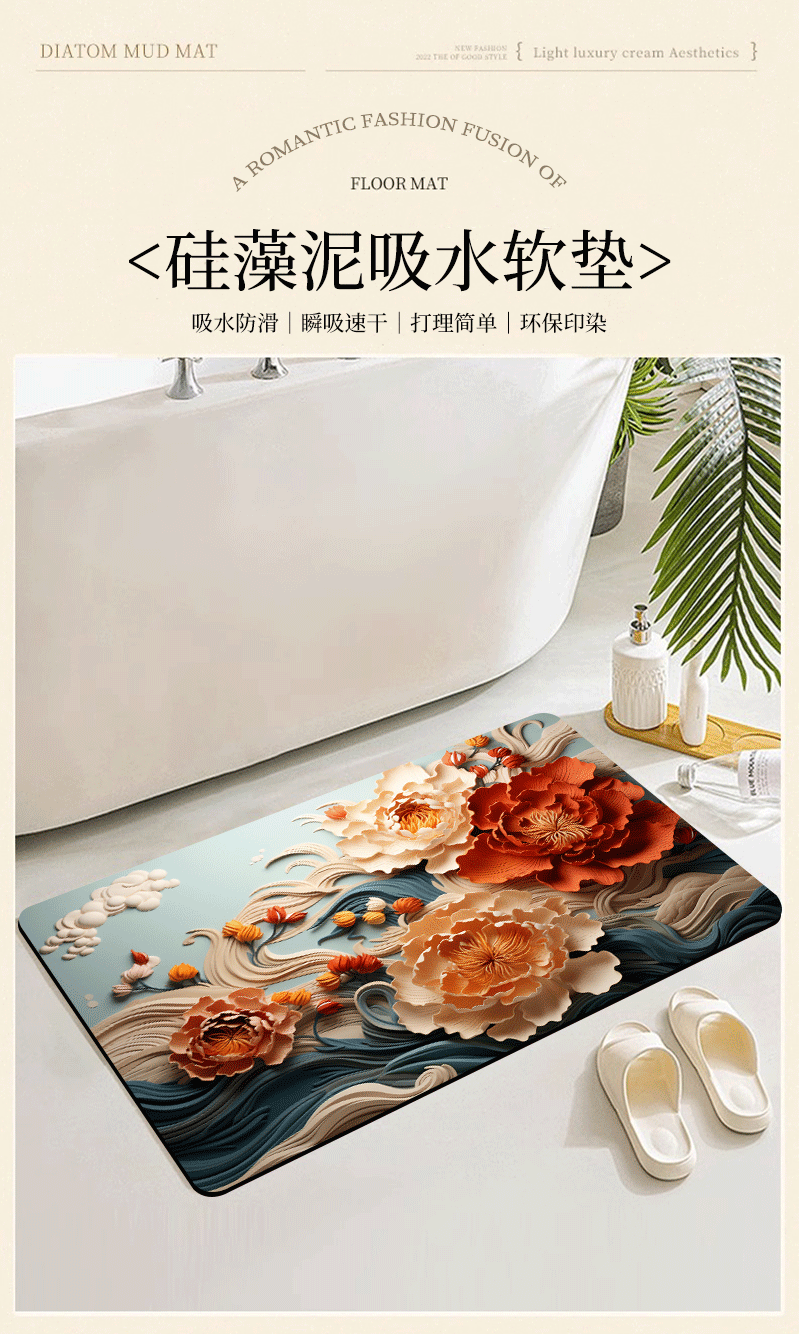 3D 욕실용 부드러운 규조토 매트, 흡수성 화장실 발매트, 주방 및 욕실 출입구 매트, 프린트 규조토 매트스토어 가기