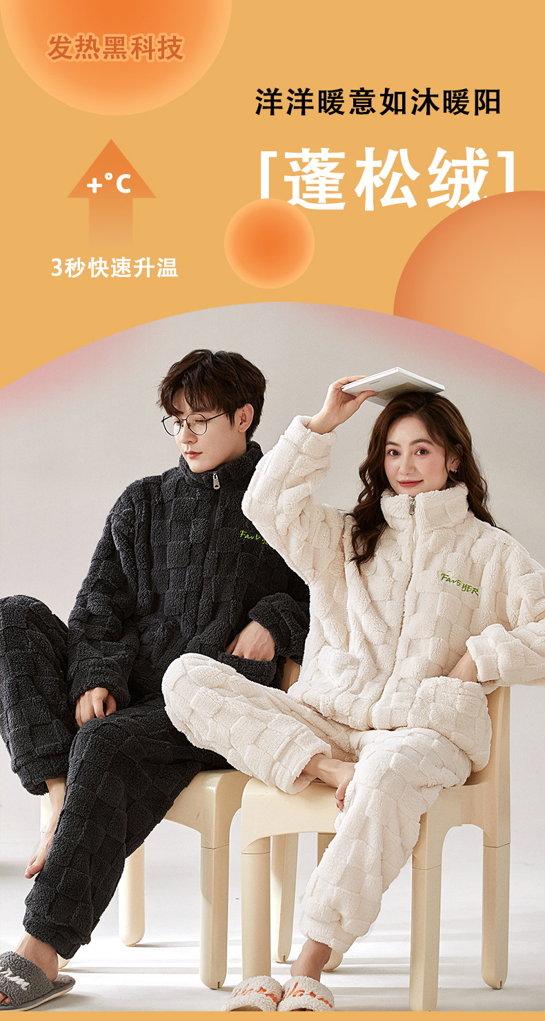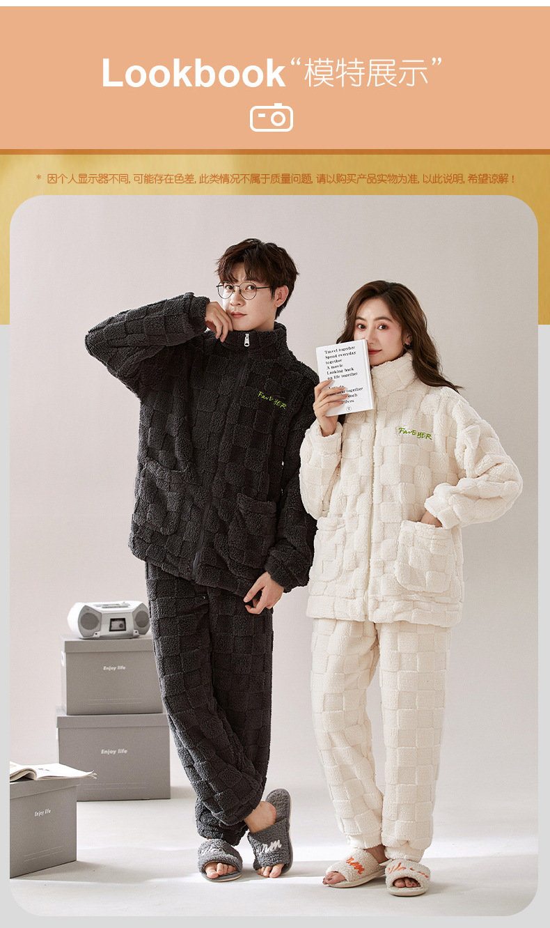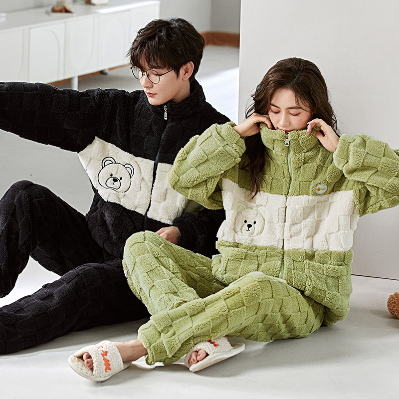 가을과 겨울 커플 잠옷 남자와 여자의 새로운 산호 양털 겨울 플란넬 두꺼운 기모 따뜻한 가정 옷 세트스토어 가기