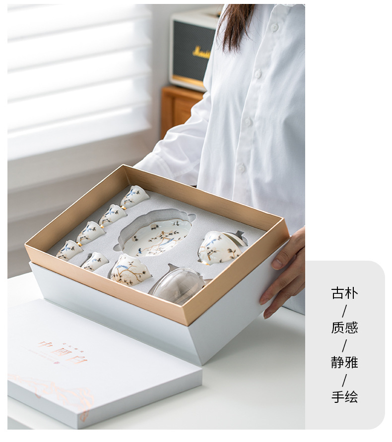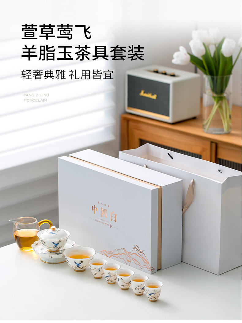 Hemerocallis Yingfei 고급 스위트 옥 화이트 도자기 산카이 그릇 가정 절묘한 쿵푸 차 그릇 찻잔 세트 선물 상자