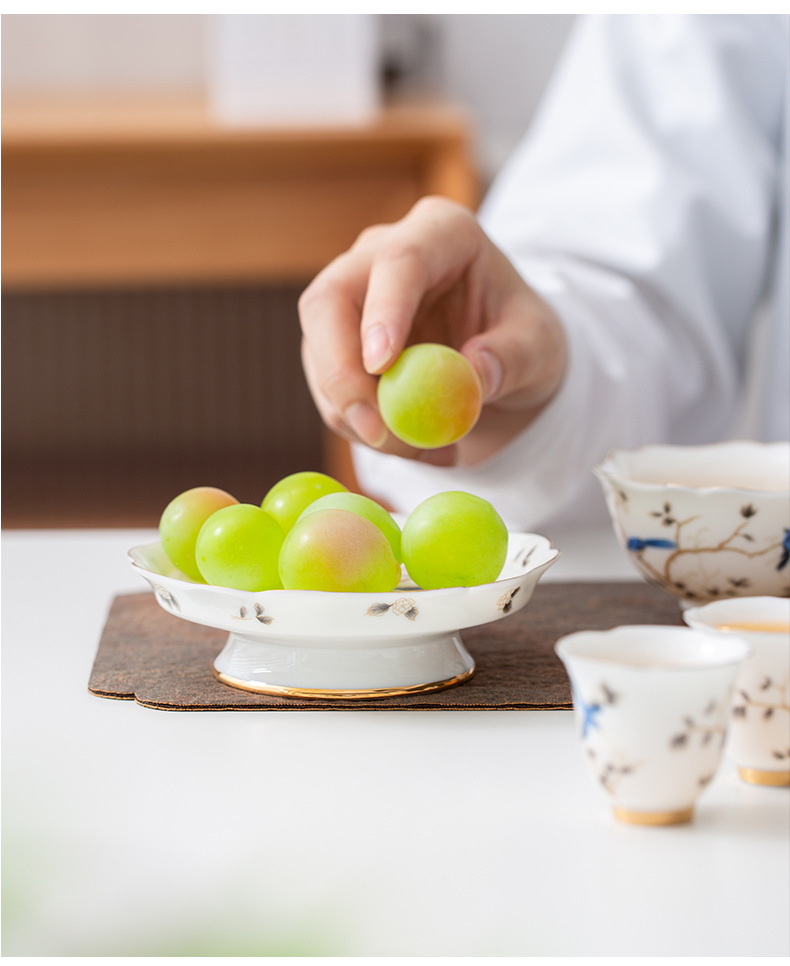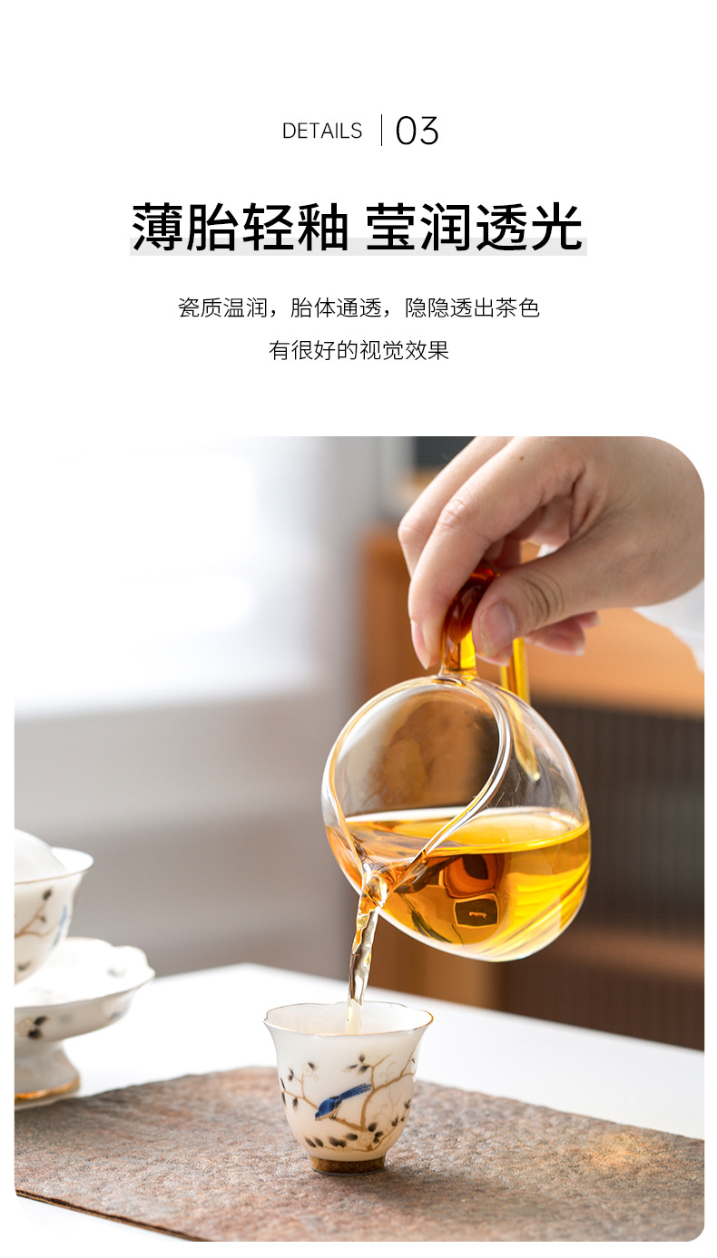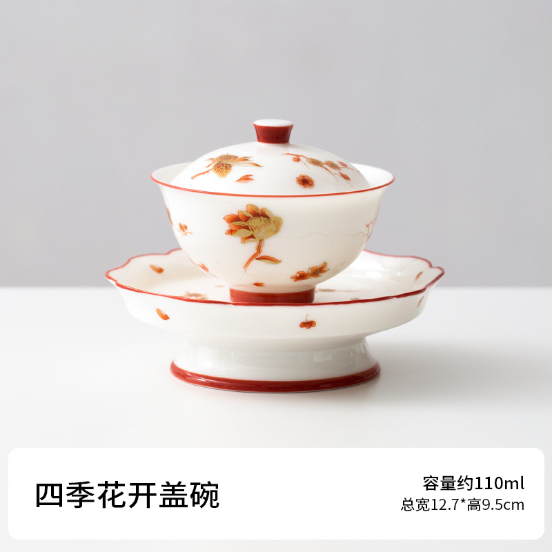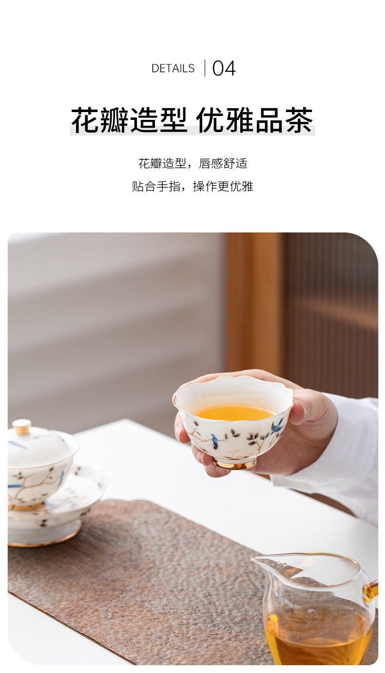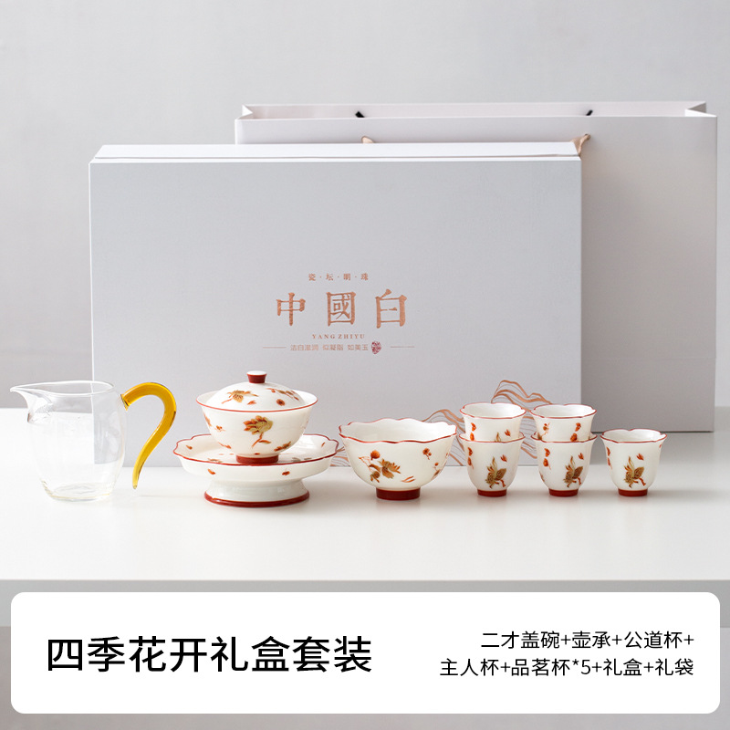 Hemerocallis Yingfei 고급 스위트 옥 화이트 도자기 산카이 그릇 가정 절묘한 쿵푸 차 그릇 찻잔 세트 선물 상자스토어 가기