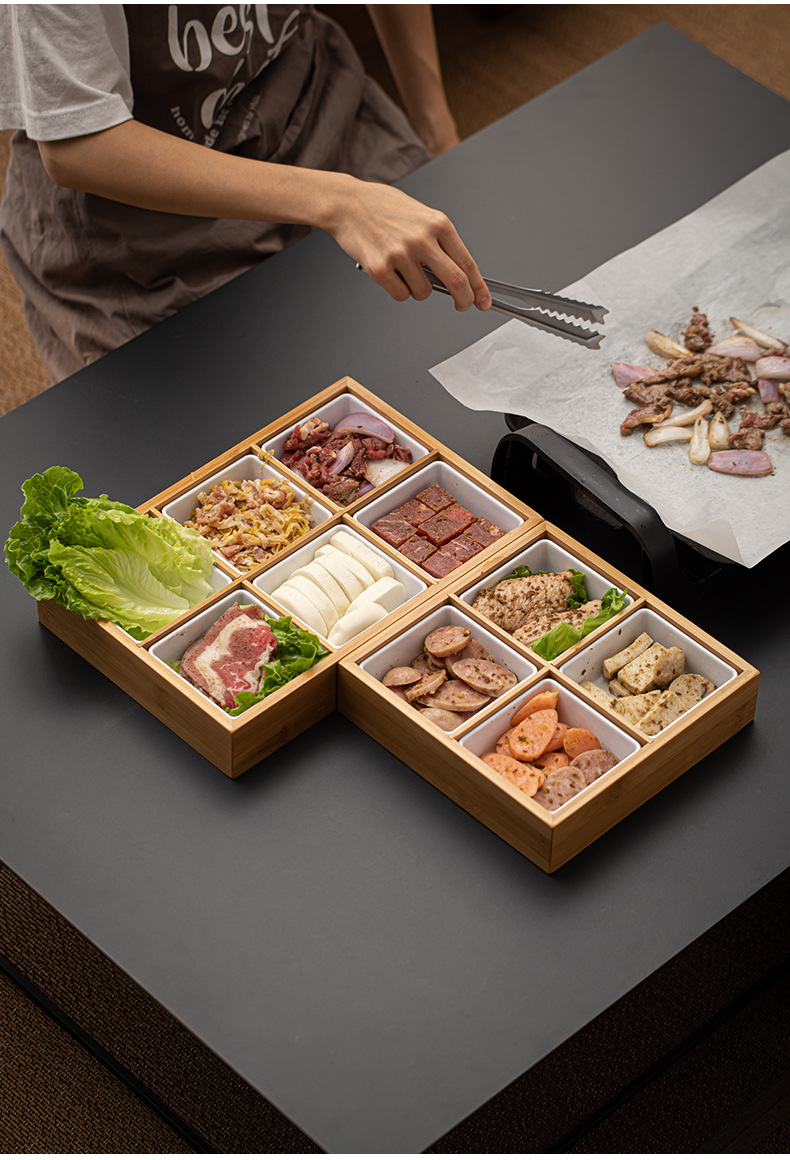 전골 가게 Jiugongge 트레이 식기함 야채 보관 상자 접시 인클로저 포함 요리 차 말린 과일 플래터 스낵 박스스토어 가기