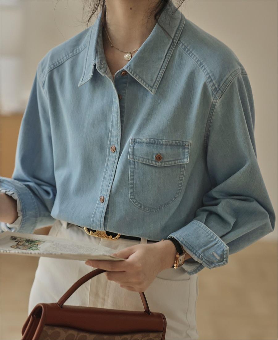 솔라이터 프렌치 레트로 데님 셔츠 여성의 2024 가을 새로운 느슨한 캐주얼 스택 긴 소매 셔츠스토어 가기