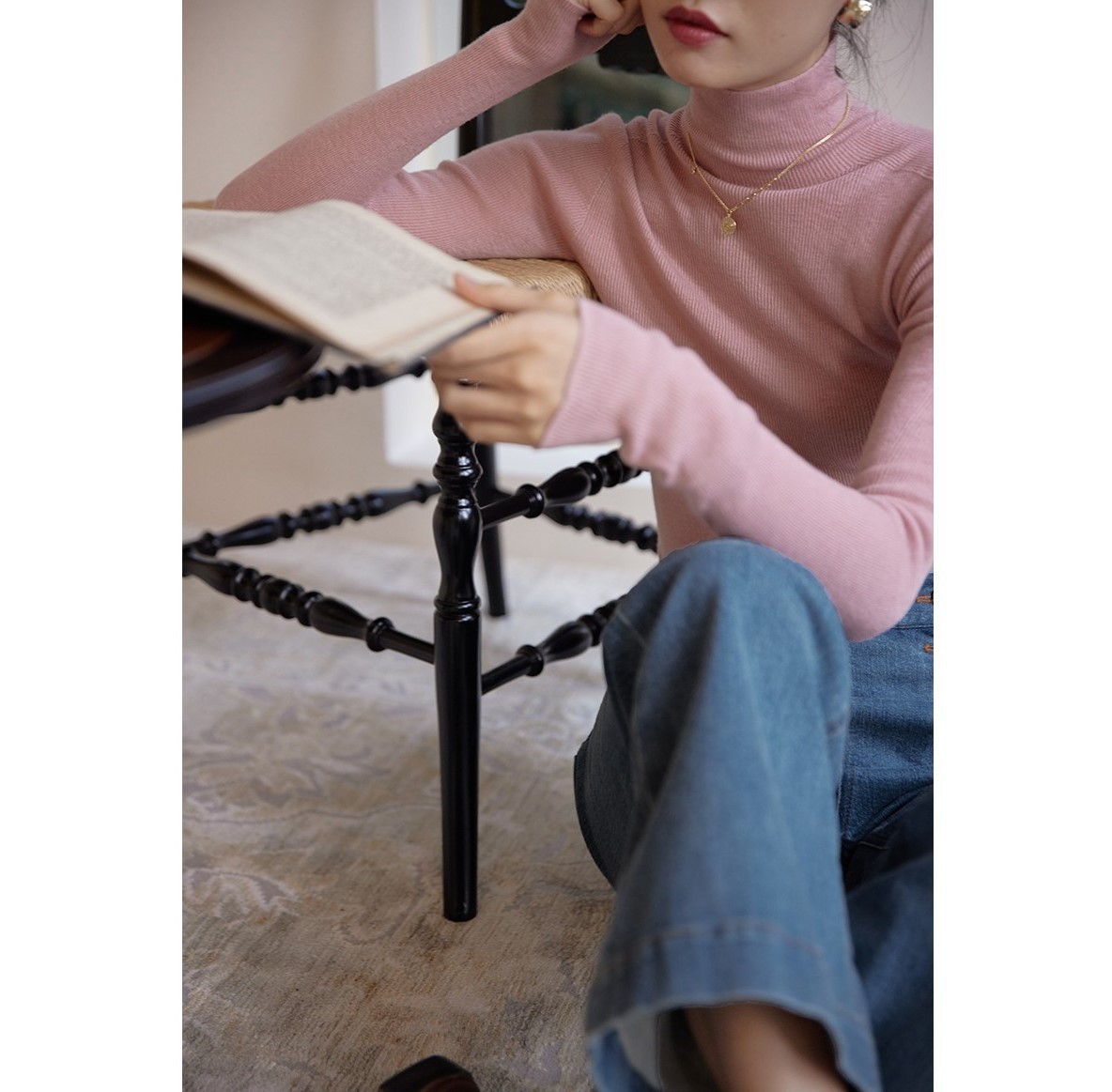 해결사 울 원활한 원피스 터틀넥 바닥 스웨터 2023 가을 새로운 단색 내부 탑스토어 가기