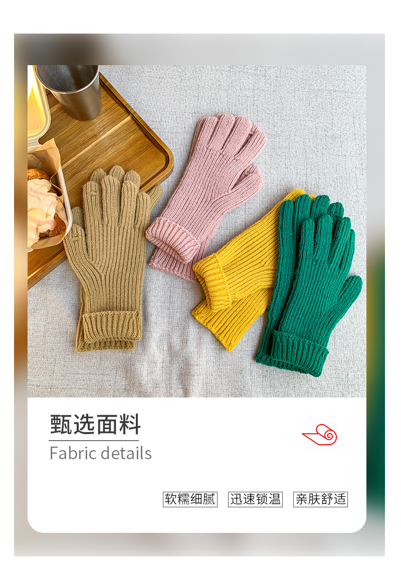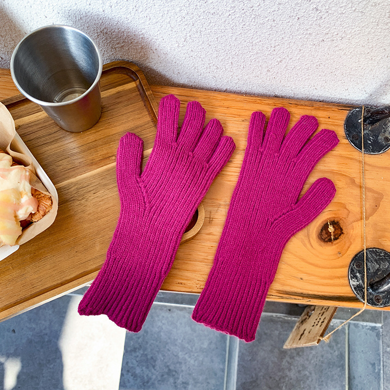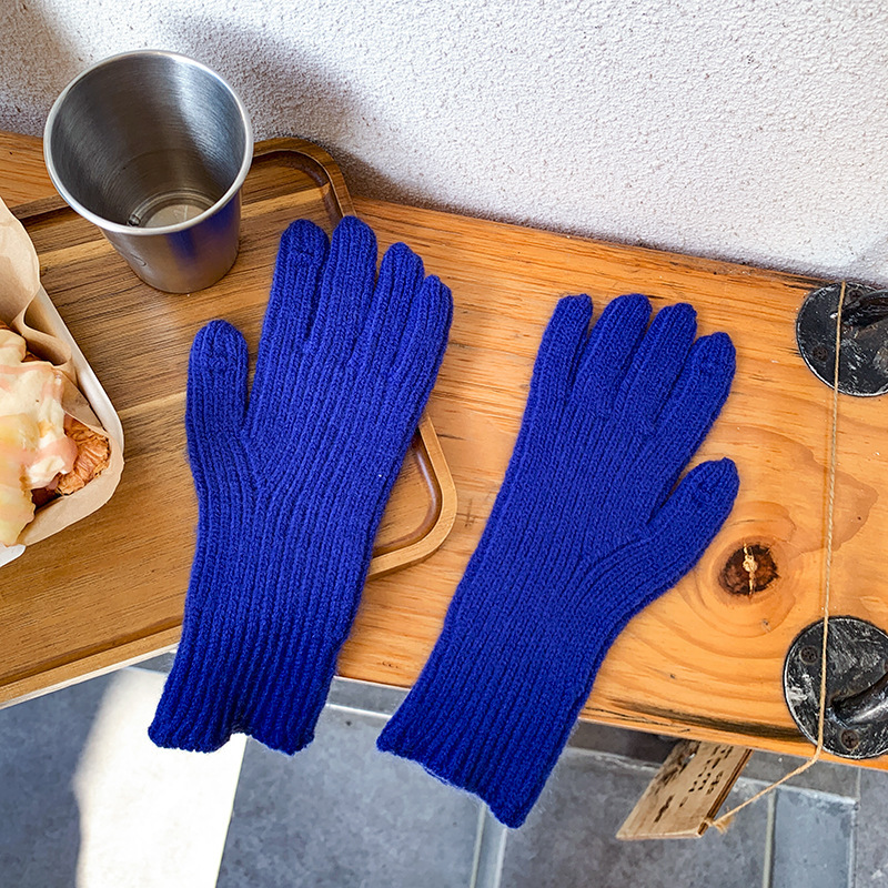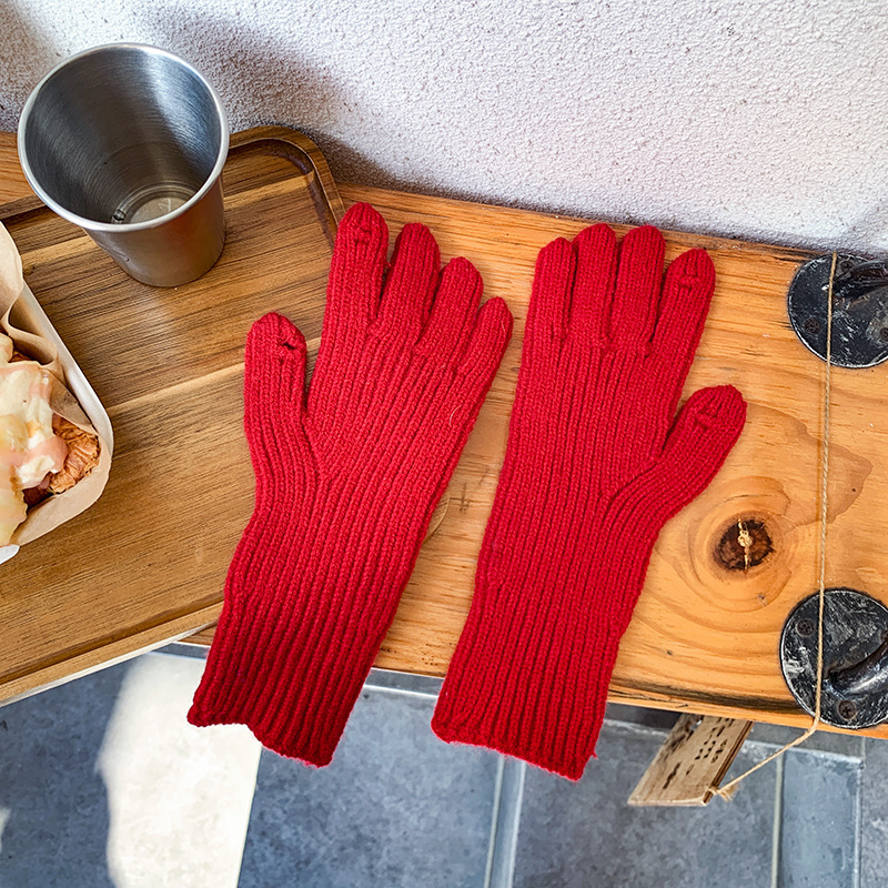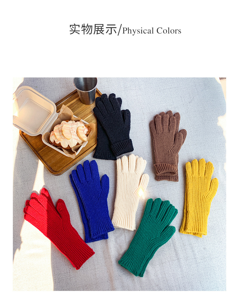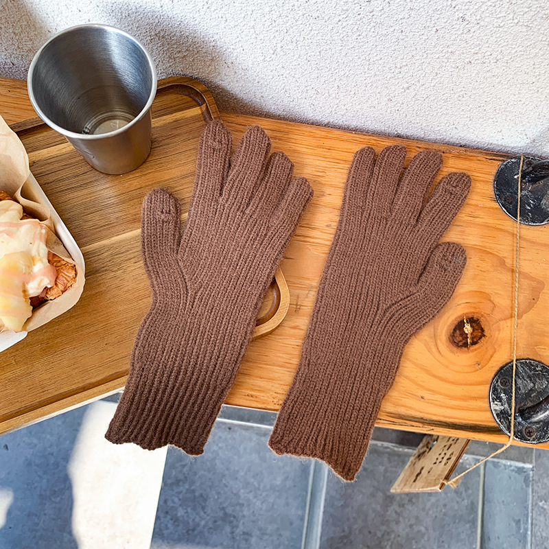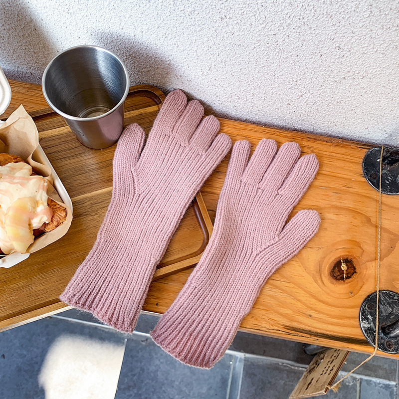 도파민 겨울 따뜻한 단색의 한국어 버전 니트 울 차가운 방풍 장갑 여성 손가락 누출 터치 스크린 학생 인스토어 가기