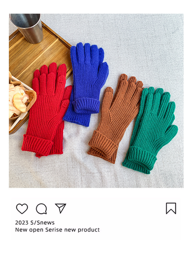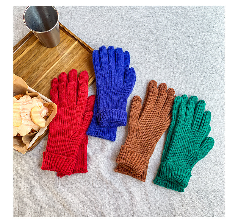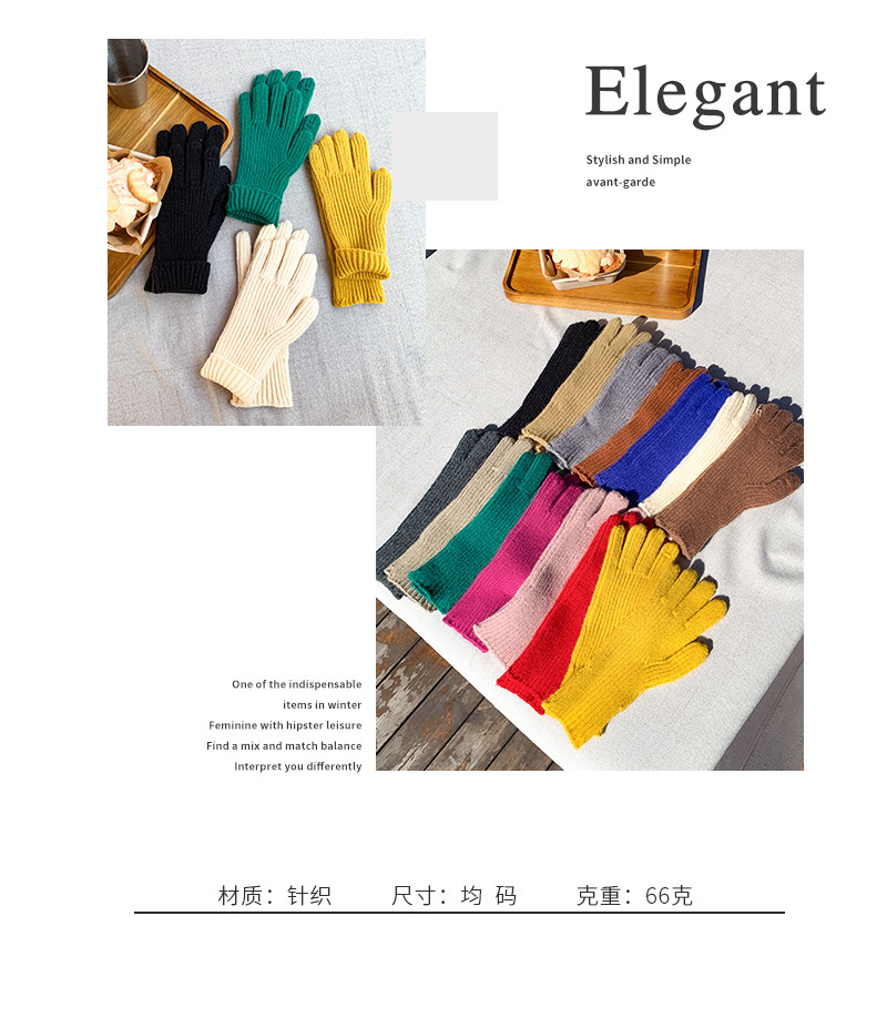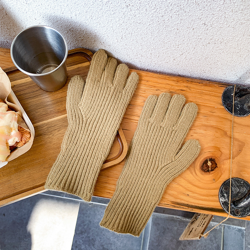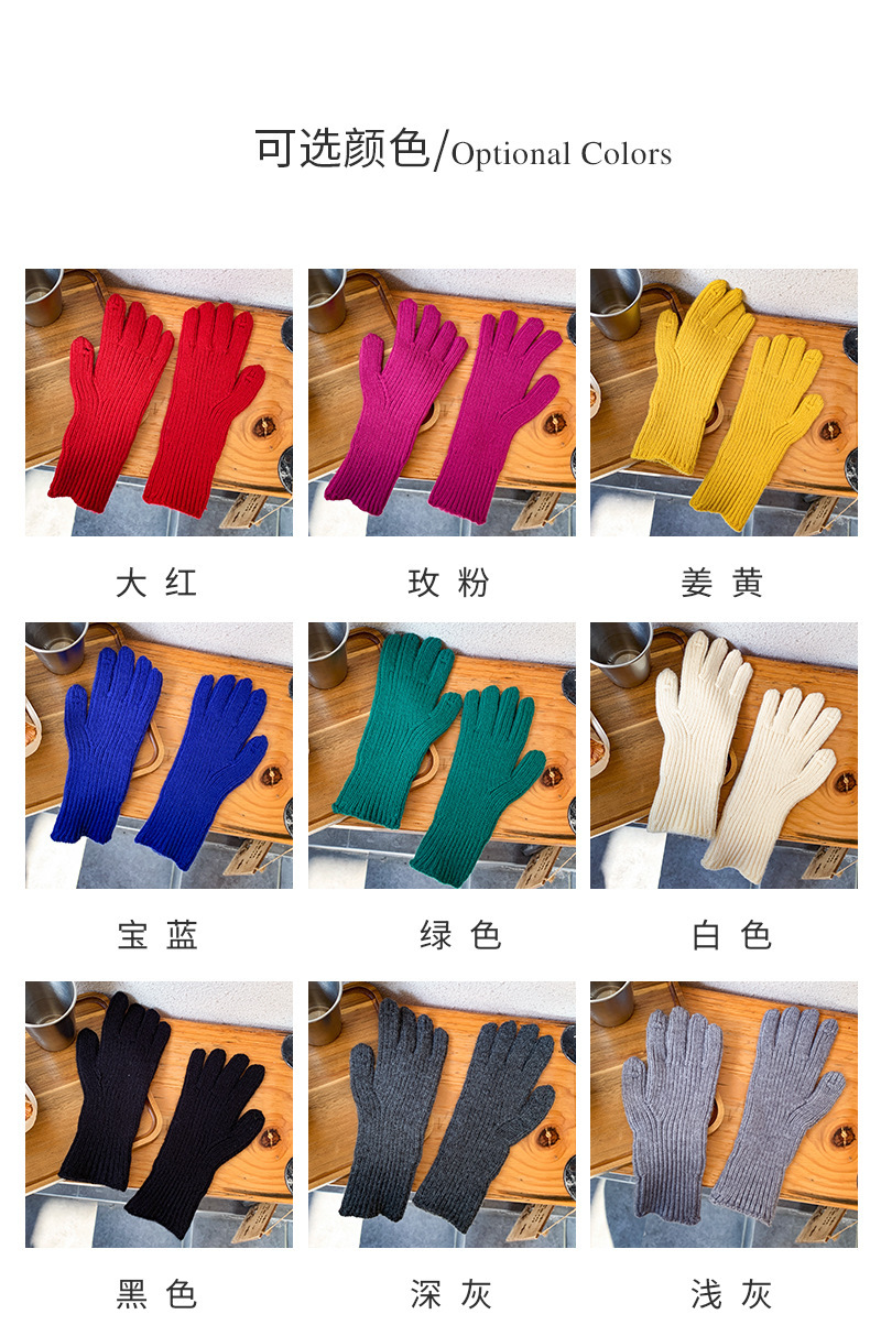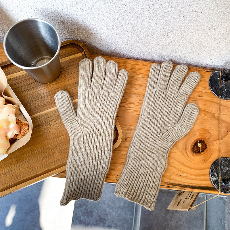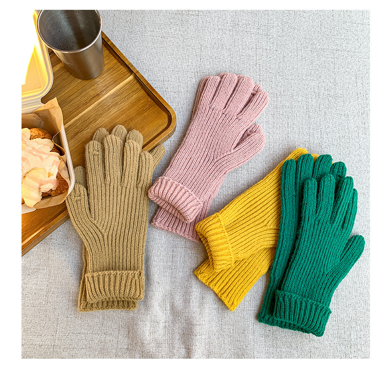 도파민 겨울 따뜻한 단색의 한국어 버전 니트 울 차가운 방풍 장갑 여성 손가락 누출 터치 스크린 학생 인스토어 가기
