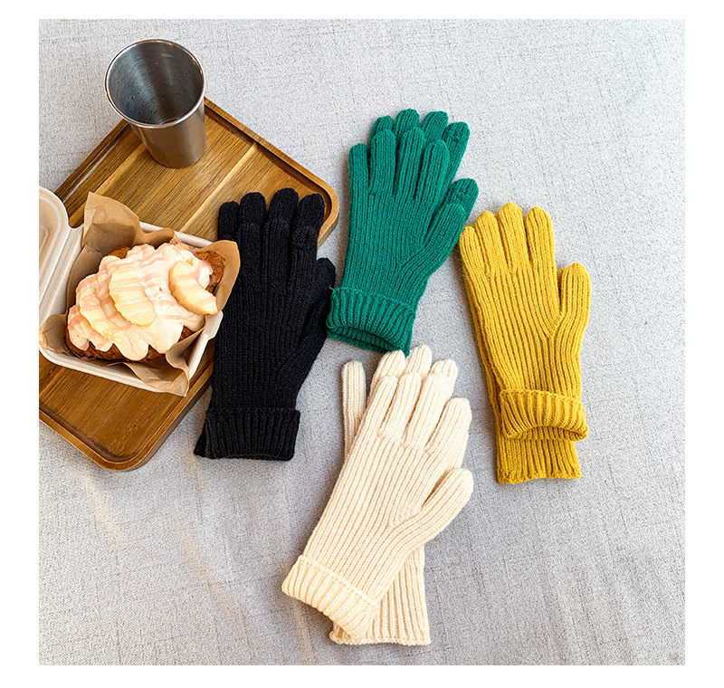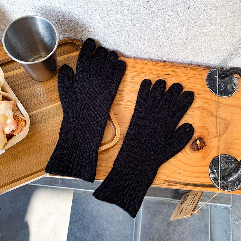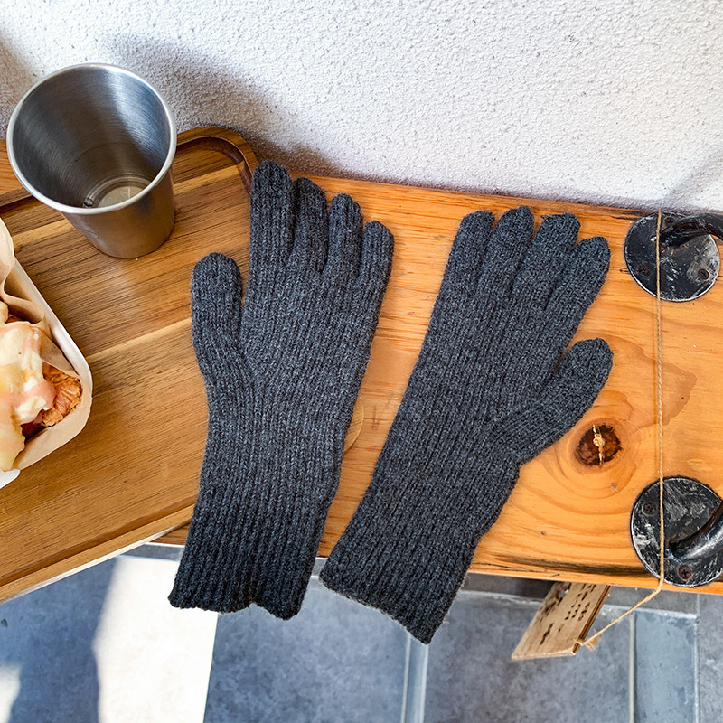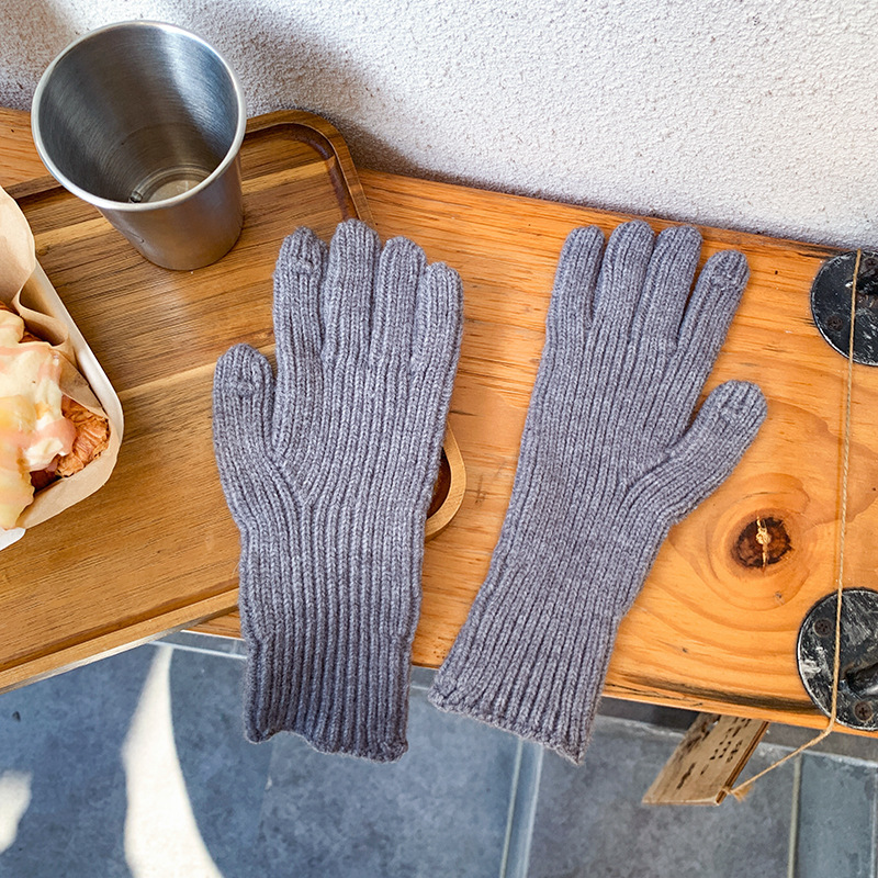 도파민 겨울 따뜻한 단색의 한국어 버전 니트 울 차가운 방풍 장갑 여성 손가락 누출 터치 스크린 학생 인