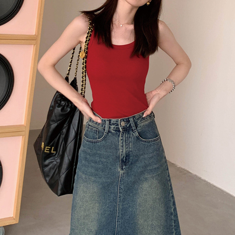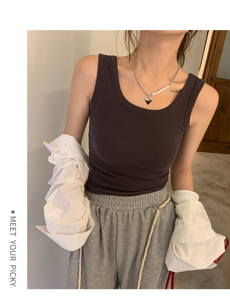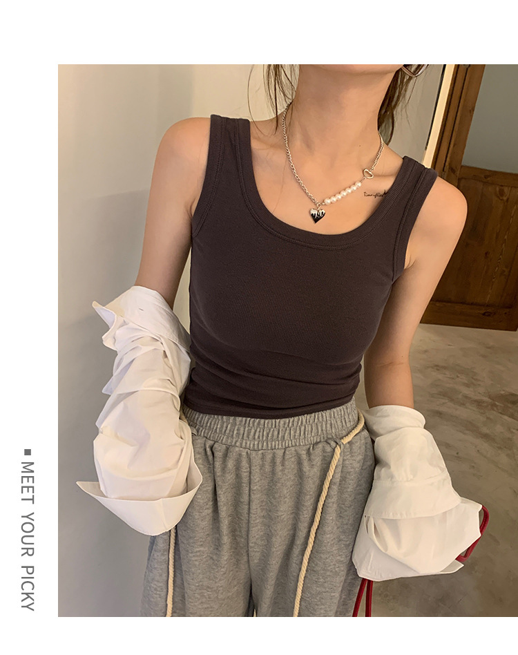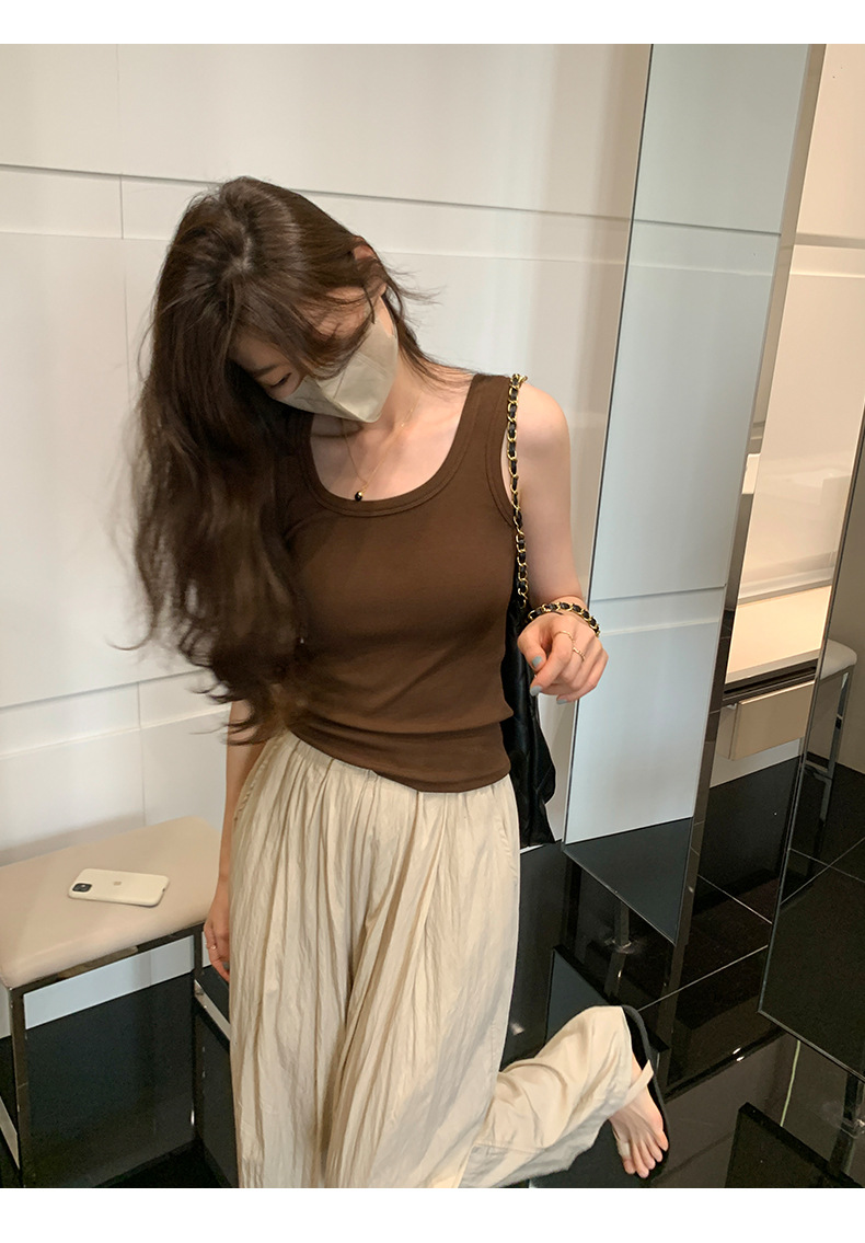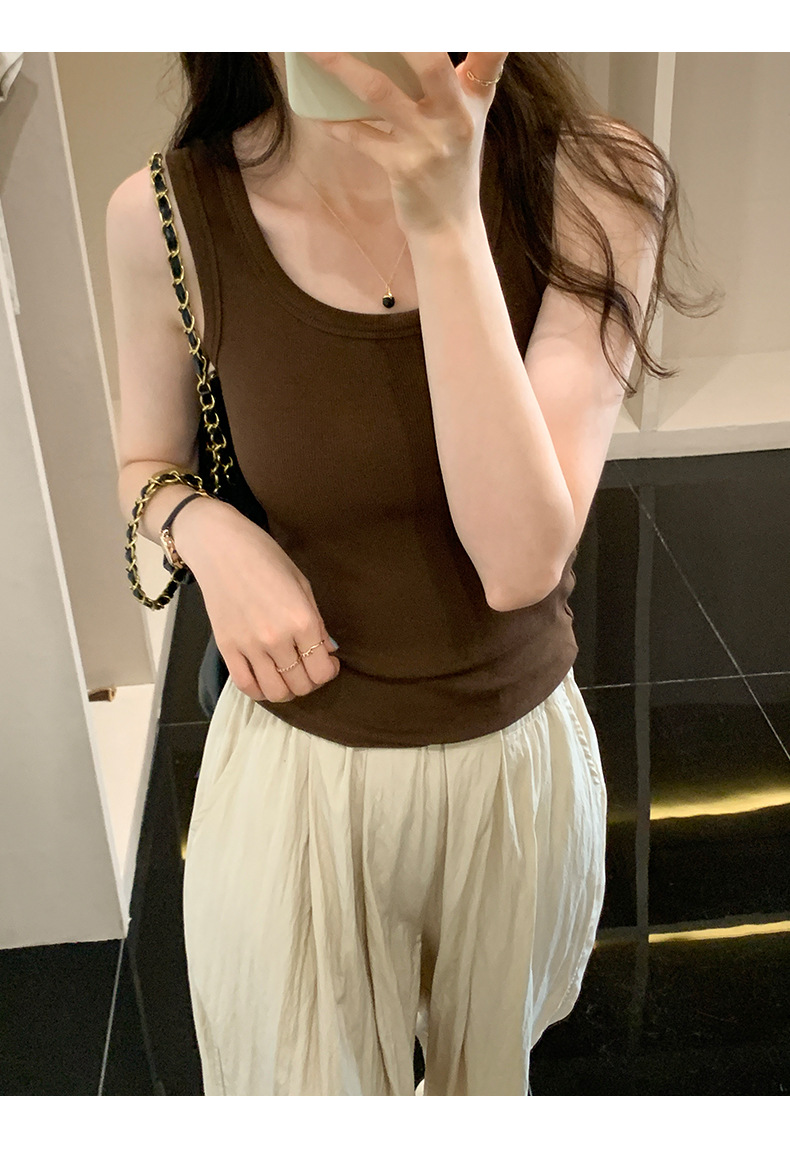 우아한 모든 매치 슬링 여성용 내부 슬링 여름 새로운 슬림핏 슬리밍 단색 캐주얼 통기성 겉옷 작은 조끼스토어 가기