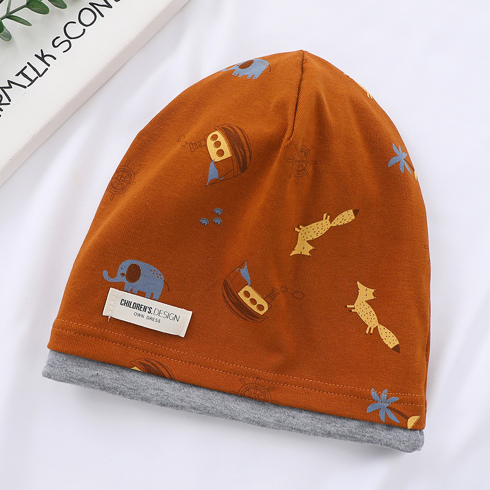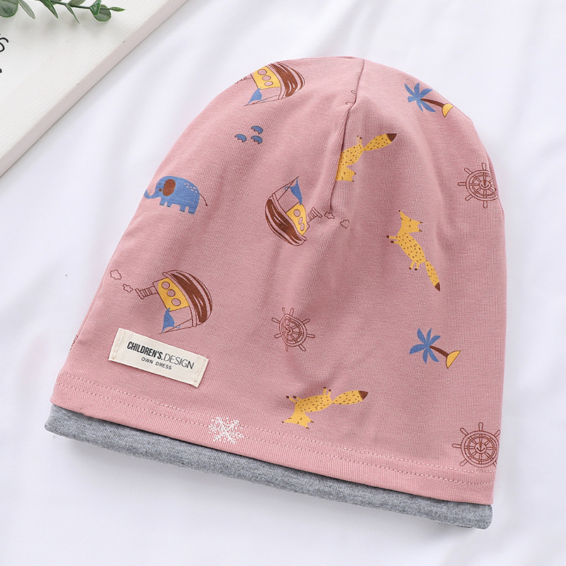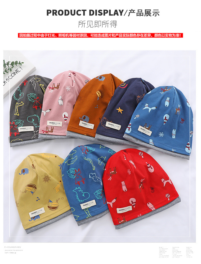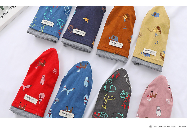 새로운 면 어린이 힙 캡 더블 레이어 대비 색상 아기 귀 보호 캡 가을과 겨울 따뜻한 돔 인쇄 모자