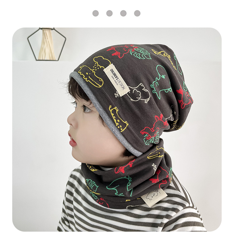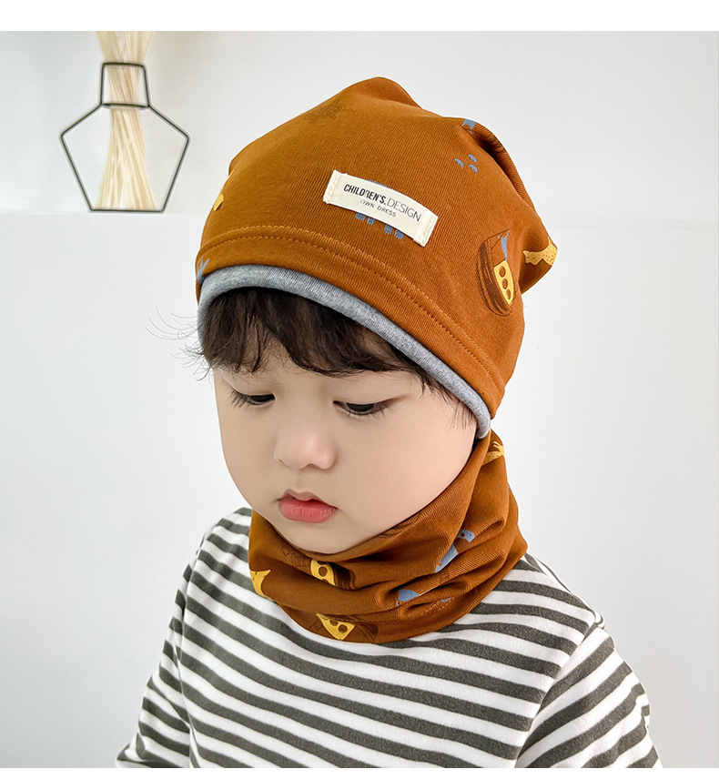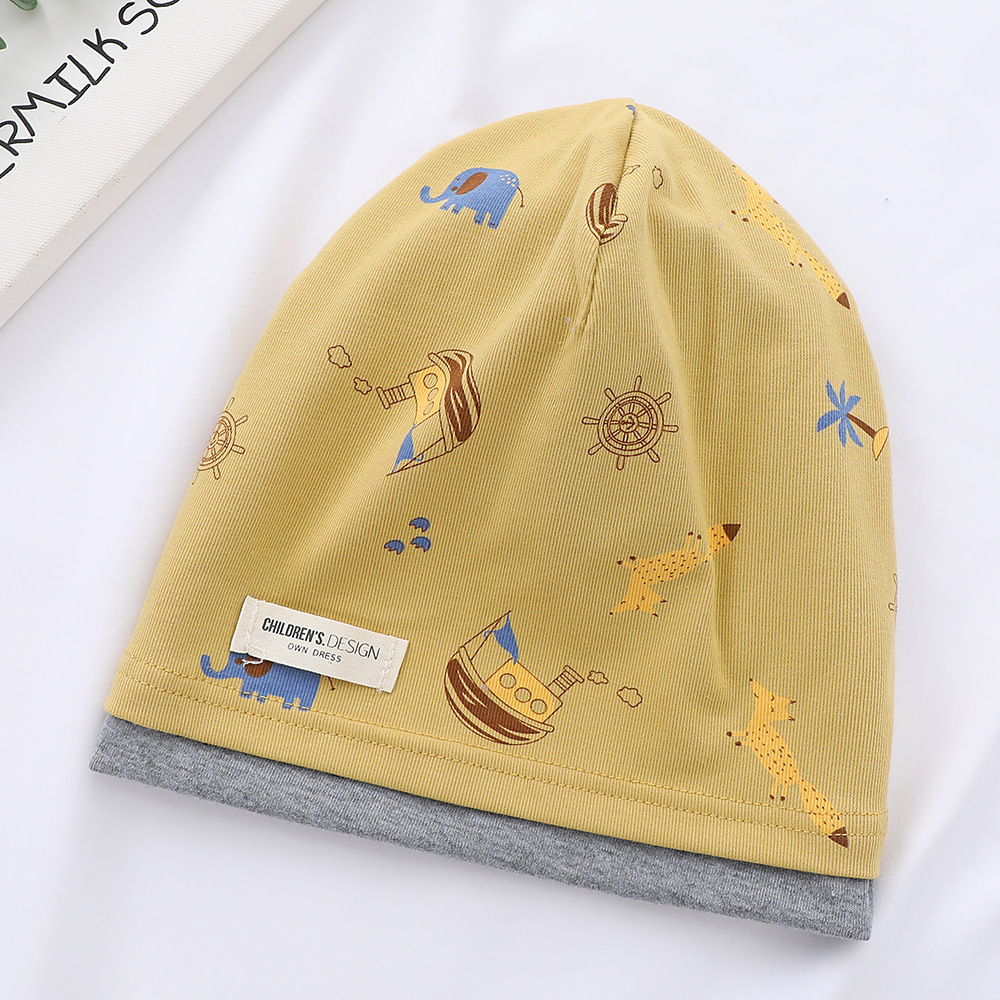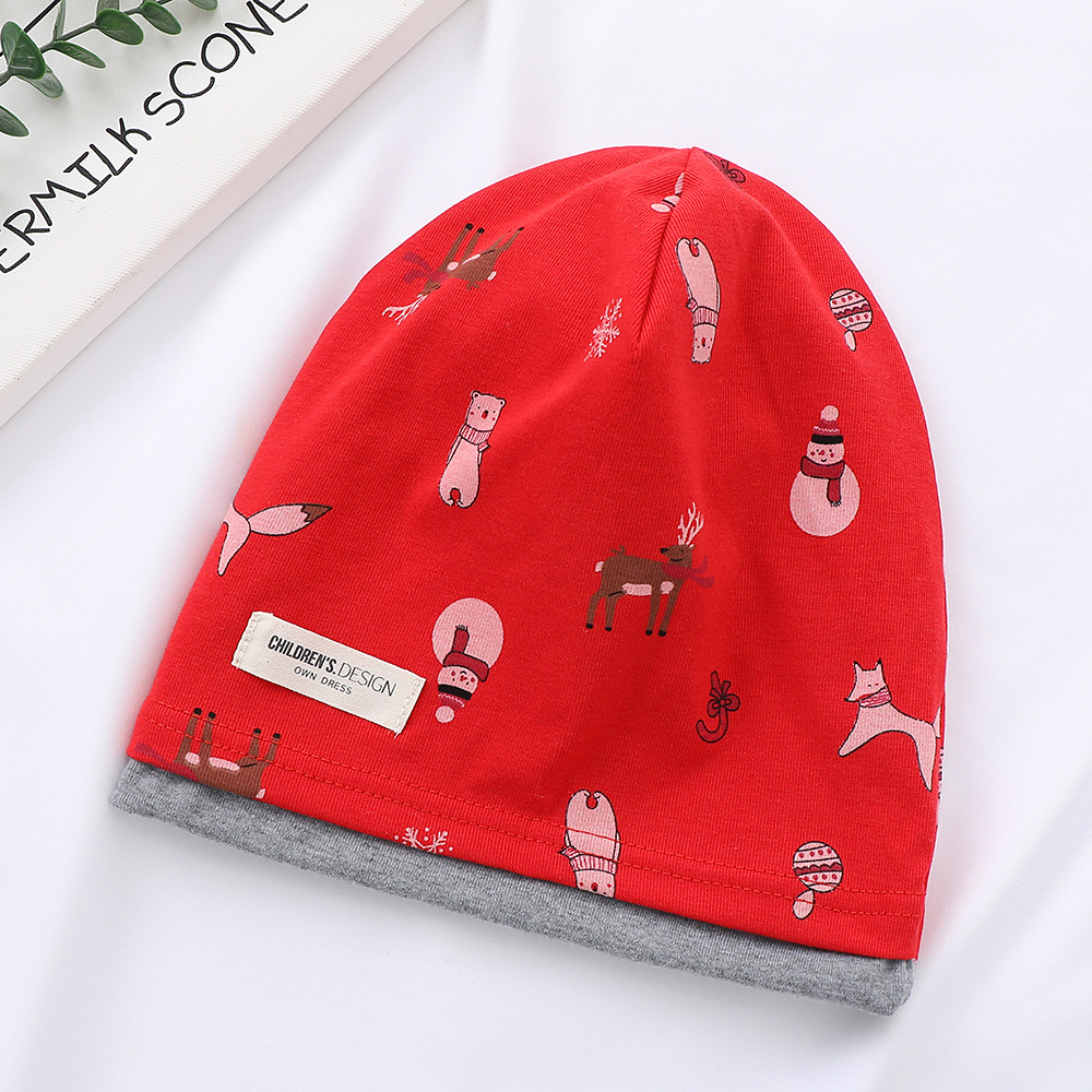 새로운 면 어린이 힙 캡 더블 레이어 대비 색상 아기 귀 보호 캡 가을과 겨울 따뜻한 돔 인쇄 모자