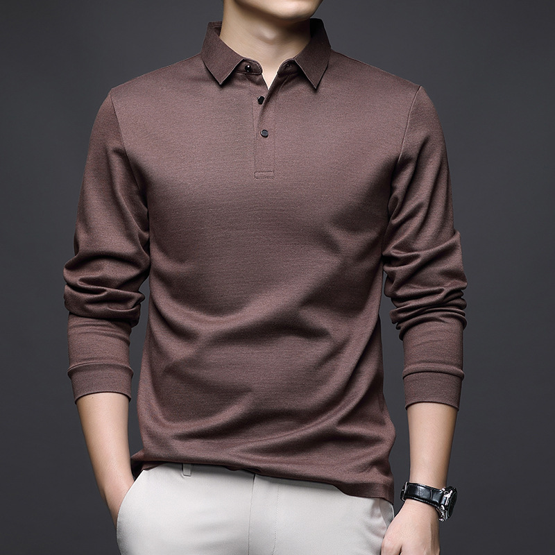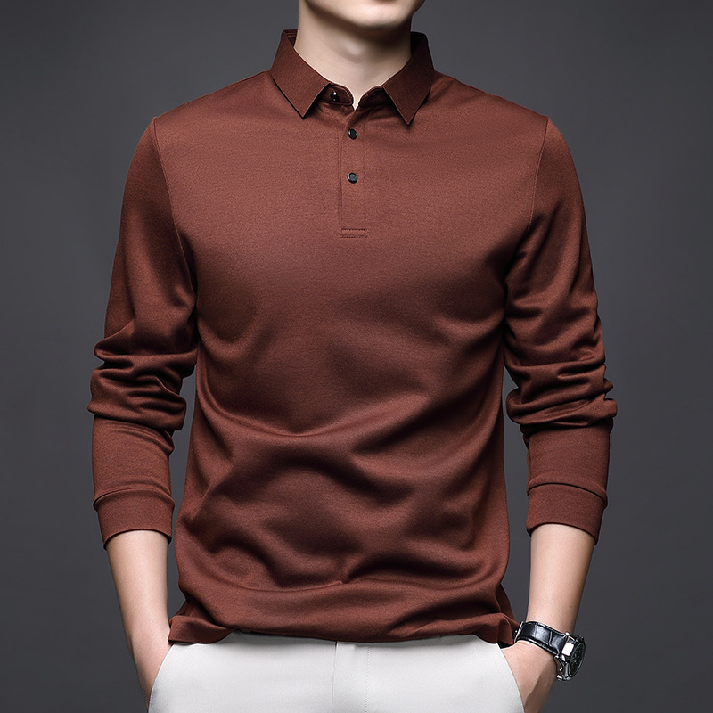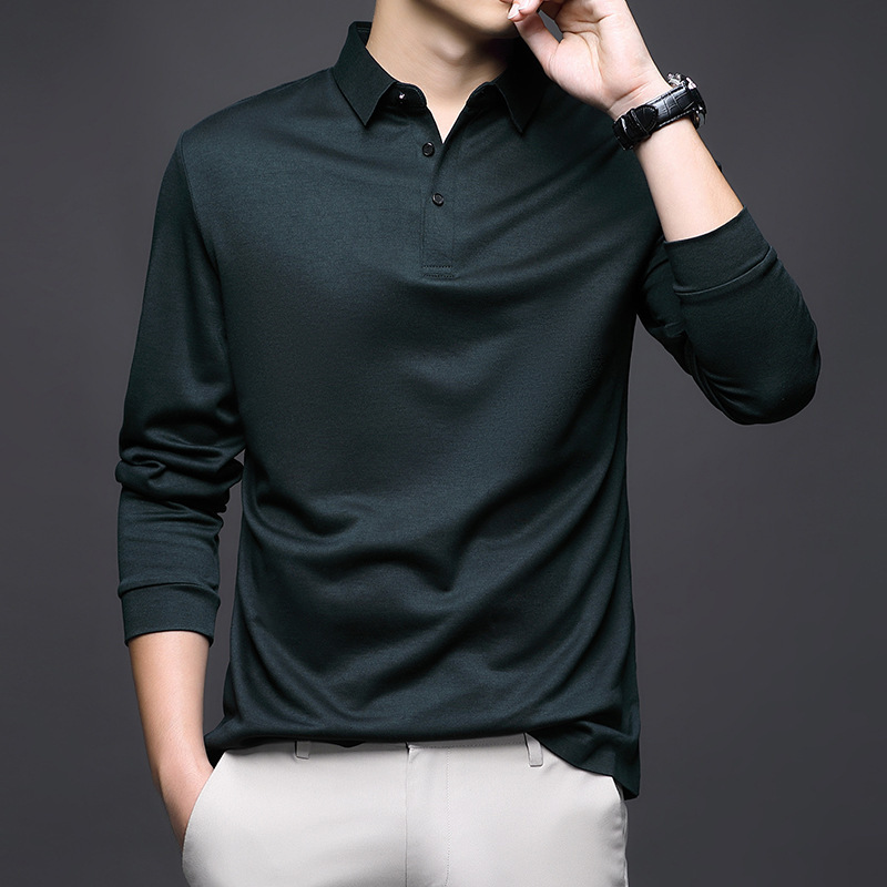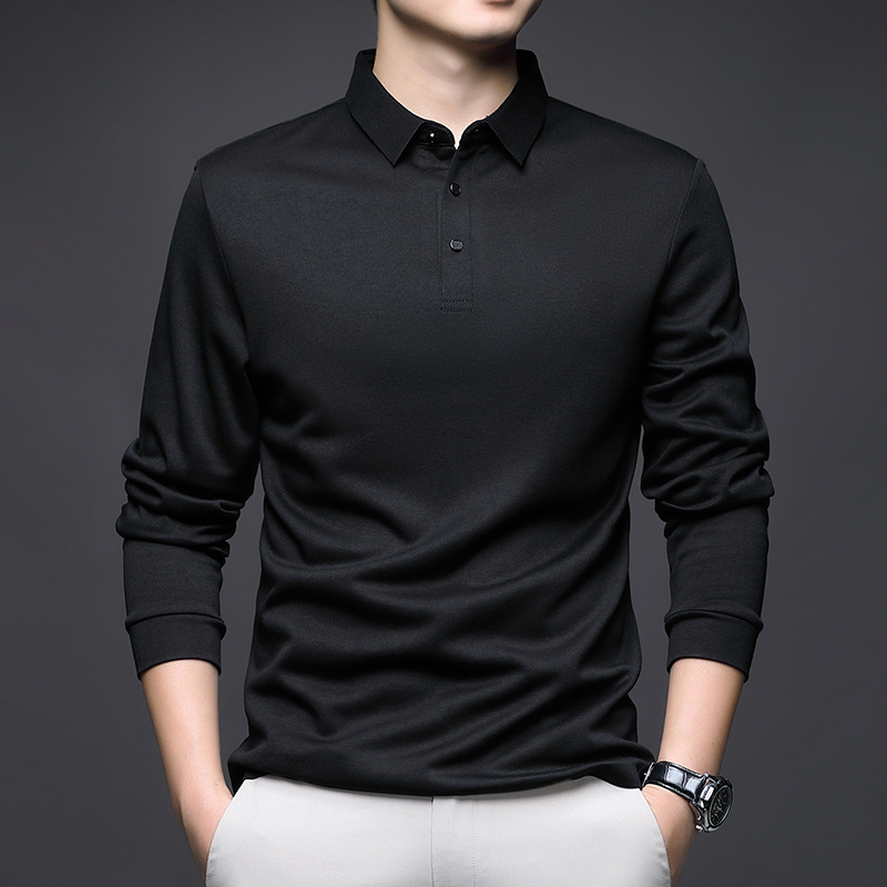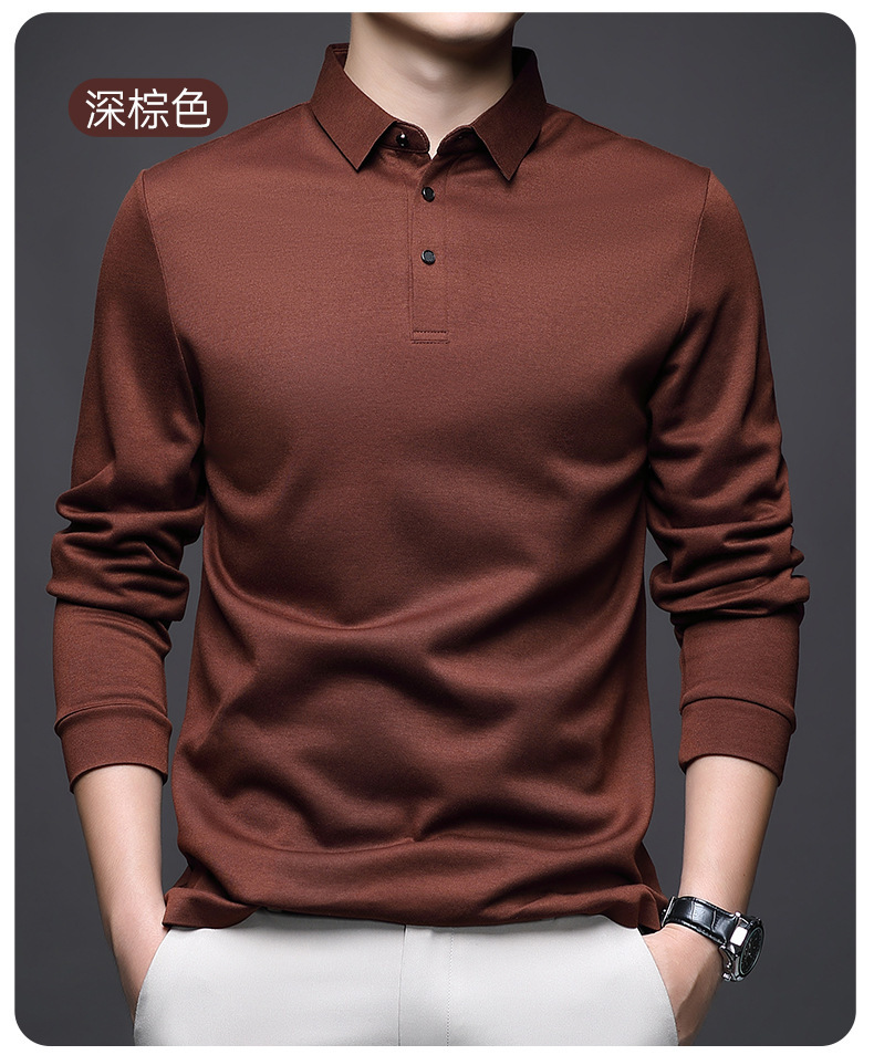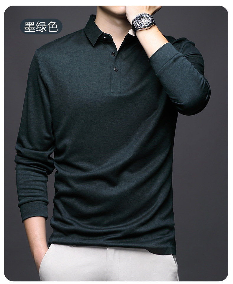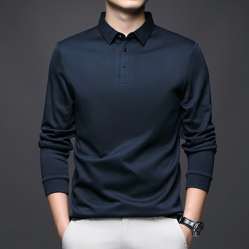 80 양면 머서라이즈드 코튼 남성 신상 가을 비즈니스 캐주얼 하의 셔츠 남성 긴팔 티셔츠 중년 상의