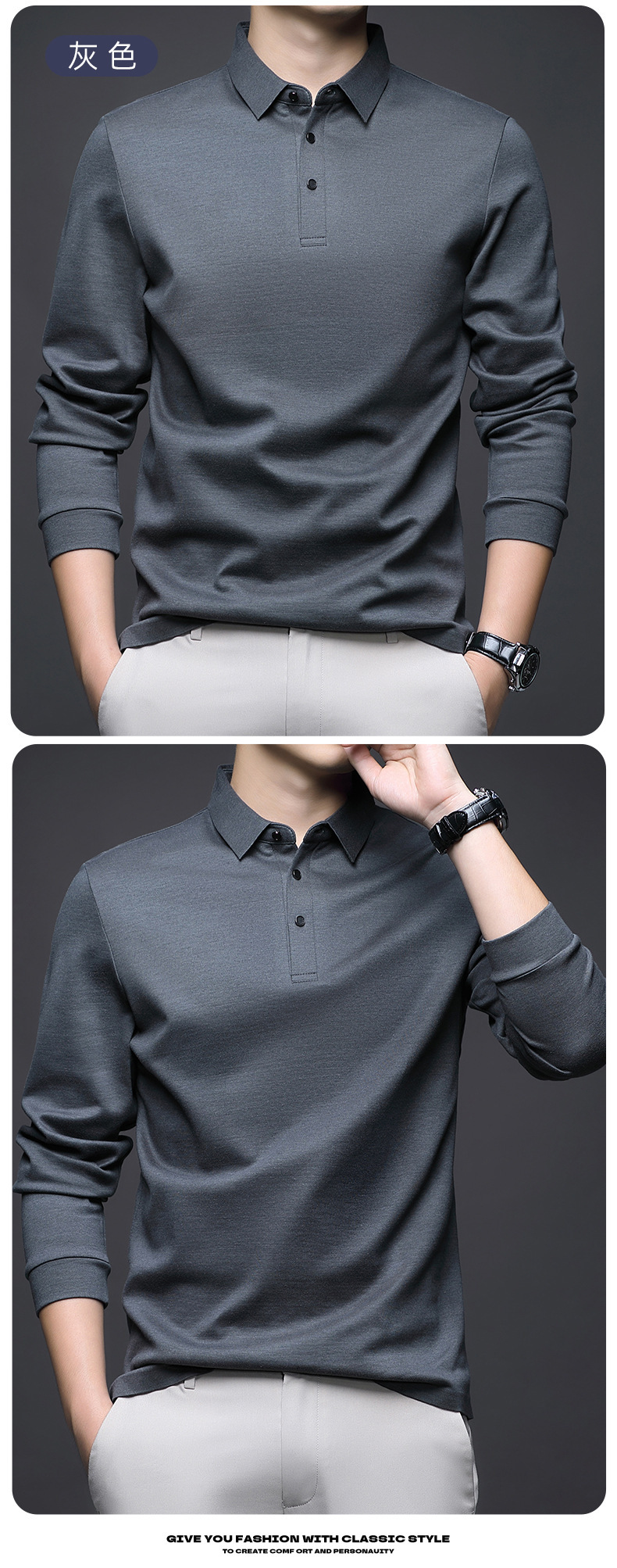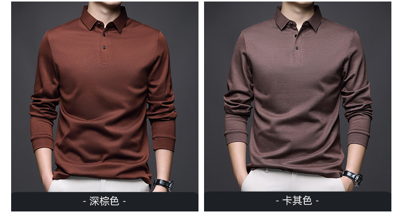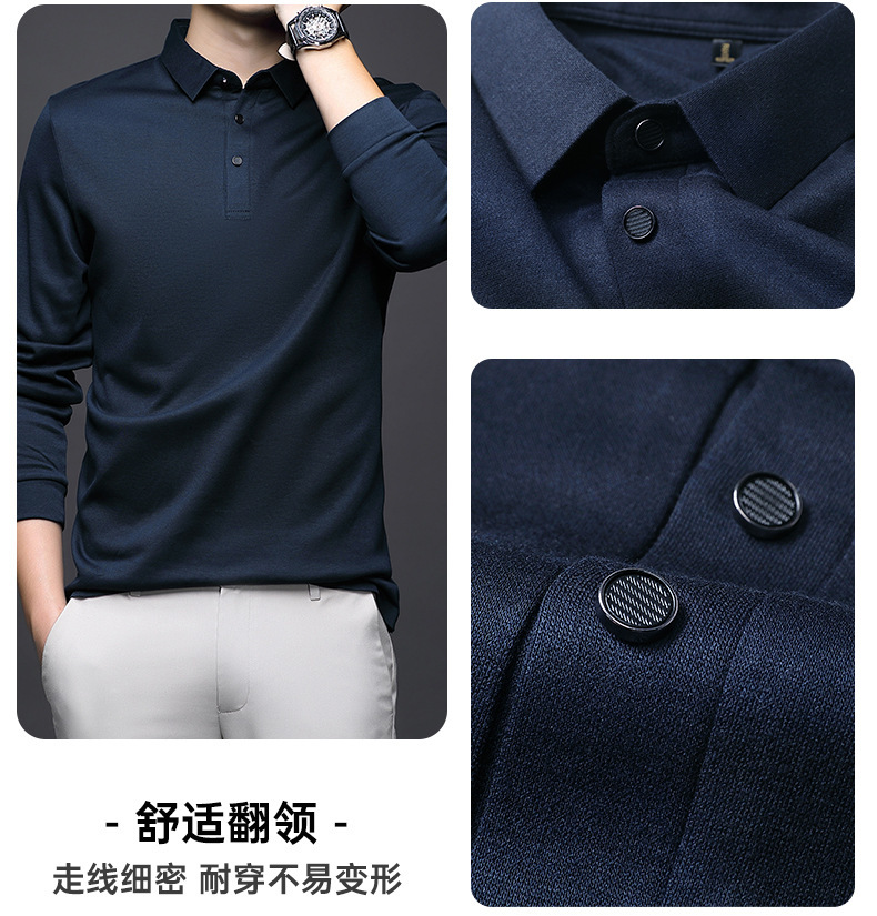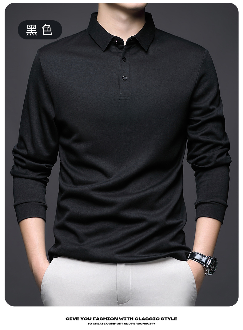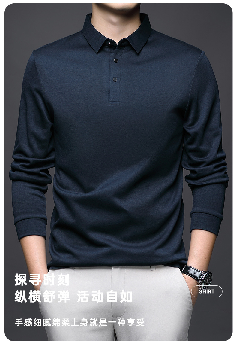 80 양면 머서라이즈드 코튼 남성 신상 가을 비즈니스 캐주얼 하의 셔츠 남성 긴팔 티셔츠 중년 상의스토어 가기